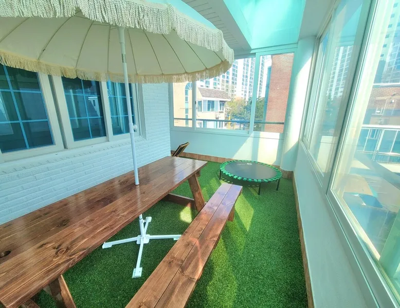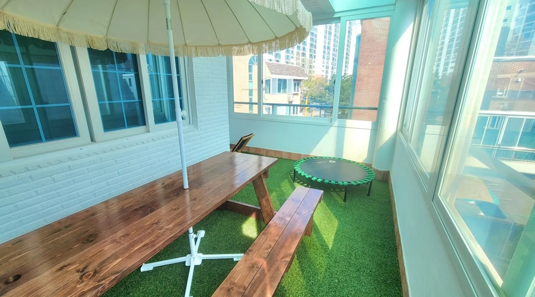 ⭐️Visual Space is a 100% legal accommodation and is operated as a safe female-only accommodation with a resident host.⭐️ Male ❌️couples❌️ No ⭐️elevator Haeundae, Songjeong, and Cheongsapo are all the best locations that can be reached in 5 minutes by car, and there is also a traditional market within a 1-minute walk. It is close to Shinhaeundae Station (Donghae Line) and Busan Line 2 Jangsan Station (Course 2 of Haeundae Station) that can go to Gijang and Ulsan, so you can enjoy your trip comfortably even if you visit without a car. The 4th floor is a private space for guests and can accommodate up to 2 people with 2 super-single-sized beds, and the large cinema room is used exclusively. You can watch Netflix on a 120-inch large screen. The terrace, a common area, is equipped with simple home gym equipment and a table for a cozy meal. Additional guests are based on the number of visitors. 📢 This listing has been registered and operated as a legal domestic home-sharing company due to the special Mystament. The space Shared kitchen: A variety of Korean ramen and instant rice are available for free, and a variety of amenities such as cooking utensils, microwave, Kuku electric rice cooker, wireless kettle, and highball manufacturing supplies are available. (Free unlimited bottled water) Shared terrace: As the best space for visual space, you can have a barbecue party using a stone plate electric grill, and it is a space where you can lie in a hammock and heal. (It may not be available in the rainy or cold winter, which is not a refund requirement, so please take note when making a reservation) Private cinema room: You can enjoy Netflix on a 120-inch large screen. (We do not recommend moving the location of the beam projector. It is set to fit the screen.) Private bedroom: Two super-single beds and hotel-style bedding are prepared, and are decorated with traditional Korean interiors. A total of 4 air conditioners are prepared in private spaces and common areas. Guest access 4th floor guest-only bedroom, cinema room/toilet are on the 3rd floor) and all spaces such as kitchen, terrace, toilet, etc. in the 3rd floor common area (Except for the host's bedroom on the 3rd floor and the electric facility room on the 4th floor) During your stay We communicate through Airbnb messages by default, and we may not be able to respond right away early in the morning or late at night, so if you have any urgent inquiries, please call the host phone number provided on the accommodation reservation page.🙇♀️ Other things to note ⭐️Visual Space is a female-only accommodation.⭐️ The host (one female in her 40s) resides, and the 3rd floor kitchen, terrace, and bathroom, except for the 4th floor guest-only space, are shared spaces. Sometimes you can taste the Korean home cooking of a host with good cooking skills.🥰 Registration Details Region of Issuance: 부산광역시, 해운대구 License Type: 외국인관광도시민박업 License Number: 제2024-000008호