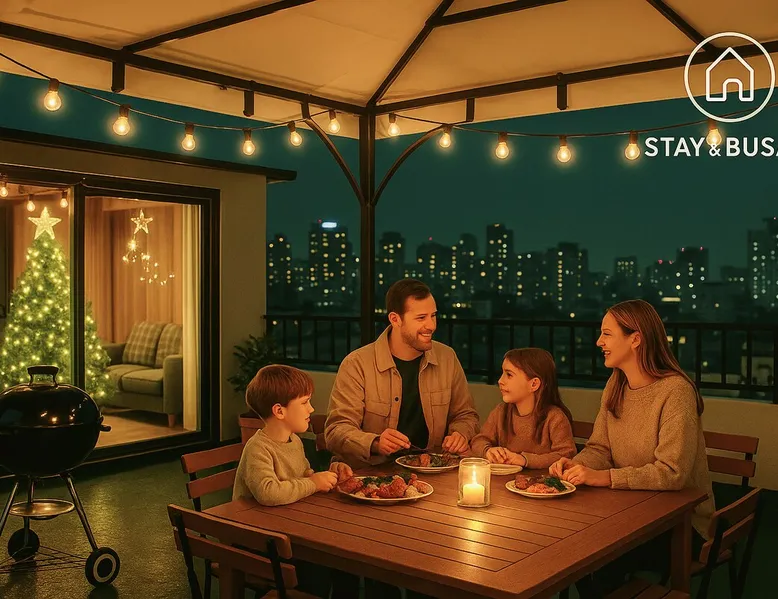 Experience the charm of a cozy rooftop in the center of Gwangandong, Busan. Restaurants, beaches, and night views are all within walking distance! Stay & Busan will be your home in Korea. In addition to the clean and stylish facilities, it is loved by travelers thanks to the friendly service and convenient location. Located in a central location where you can easily enjoy various attractions and eateries in Busan, this is the best place to stay for sightseeing and shopping at once. 5 minutes from Gwangalli Beach, 5 minutes from Gwangan Station, where the four seasons are beautiful, it is a spacious and pleasant accommodation in the station area. Private emotional barbecue, Have a special time with family, friends, and lovers ♡ The space Thanks to its modern and stylish interior, it is located in the center of sightseeing, close to popular attractions in Busan thanks to its excellent location. 🍁 Stay&Busan Differentiates 🍁 ● Private Spacious Rooftop BBQ: Photo zone, hammock, palm tree, table for 6, BBQ It is a private emotional space with various facilities such as a grill. Emotional photo zone that connects to the ● house Commercial ● house: No worries about floor noise even if children run around in the evening Discount vouchers at Batik Prop Shop on the● 2nd floor: We offer special discounts to our guests. (Please show the message to book the accommodation.) ● Clean high-temperature sterilized hotel bedding ensures a good night's sleep 🌿 Attractive Points A spacious rooftop with starlight * only a private resting place I hope you are the happiest at Stay&Busan. ● Bedding Care: Hotel bedding is prepared by sterilizing and disinfecting at high temperatures every time. If you need a safety guard for babies, please request it and we will prepare it for you. 🏠 Our accommodation is on the same third floor as the second floor, so you can use the rooftop and the space together privately. 🚗 Parking Instructions: - Parking available from 8pm to 11am. In the mornings, you will need to be flexible and move once. If you want to park, please contact us in advance. □ Public parking instructions: [Gwangalli Beach Public Parking Lot] 75, Namcheon Sea-ro 33beon-gil, Suyeong-gu, Busan - June-September: 500 KRW per 10 minutes, 15,000 KRW per day - October-May: 300 KRW per 10 minutes, 8,000 KRW per day - 10 minutes walk from the house. 📌 This listing has been registered and operated as a legal domestic home-sharing company due to the special Mystament. Guest access ◆ Guest access □ Bedroom # 1 - It is a neat and stylish space with 1 large king bed, built-in wardrobe, stand, side table, object, full-length mirror, interior frame, diffuser, etc. □ Bedroom 2 -It is a cozy space for family and friends such as 2 queen-sized beds, dressing table, side table, dry flower, circulator, etc. (1 bed will be prepared for 2 people. Bedding 1 for 2 people) Disinfected bedding is prepared in the built-in cabinet. An additional fee of 20,000 KRW will be charged for use. □ Bathroom - Towels (2 provided per night), shampoo, conditioner, body wash, hand wash, disposable shower towel, tissue paper, cotton swab, hair strap, hair dryer, etc. * Toothbrush is not provided. □ Kitchen - Dining table for 6 people, ice water purifier (also available for ice), refrigerator, washing machine (used for 3 nights or more), microwave oven, nursing pot, coffee pot, toaster, tableware, cutlet, disposable sponge, paper towel, disposable vinyl, 2 types of pots, frying pan, etc. Group gatherings in a cozy and spacious kitchen Basic cooking is possible. Food with a smell is not allowed for the next guest, so please understand. □ Living room - 5 types of popular board games, spacious sofa, living room table, Comfortable and useful living area: 57 "SmartTV (remote), air conditioner (remote), fireplace console, first aid kit, book shelf, Busan tourist leaflet, brochure. □ Welcome gift, Cup noodles (provided only to foreigners for Korean food culture experience), snacks provided □ Rooftop - Theme room: A space where you can heal while listening to the sound of rain through the sofa, table, and window (Interior changes from season to season) - Outdoor area: BBQ grill, 6 person outdoor table, 2 bench chairs, lights, hammock, etc. It is a private rooftop where you can enjoy a special day while enjoying a barbecue under ● pretty lights. Other things to note 🔥 BBQ instructions: - Charcoal one-time fee of 25,000 KRW. Access to all facilities and equipment at no extra charge. - Please tell us in advance when booking: Please let us know one day before check-in so we can be ready. Rules for using the💢 BBQ 💢 -There are no separate tableware on the rooftop. You can use disposable bowls or use what is provided in the accommodation, but please understand that the user is responsible for any loss or damage. - Please wear hand protective gloves before turning on the BBQ charcoal, be careful during windy or dry weather, put the charcoal on top of the prepared ignition agent and light the ignition agent. DO 🚫 NOTs 🚫 ▪︎ Not allowed to stay under the age of 19. ▪︎ Pets are not allowed. ▪︎ Please take off your shoes indoors. (In Korea, take off your shoes and go indoors. It is a culture of living🙂) ▪︎ If you wear shoes, you will be charged for replacing the floorboards. (Same as rooftop slippers) ▪︎ All areas in the property are non-smoking areas. (If we receive an alarm sound or automatic report when we recognize the smog, we will charge you to leave and pay 200,000 won.) ▪︎ No food in carpets and bedding. Please be careful not to get food and cosmetics on them. ▪︎ No dyeing and bleaching. If excessive garbage is generated or cleaning beyond the general scope is required when using the🚫 accommodation, an additional cleaning fee (50,000 KRW) may be incurred. 🌱 Security: • CCTVs are installed for safety and crime prevention outdoors on the 3rd floor. At ❤️ Stay&Bu