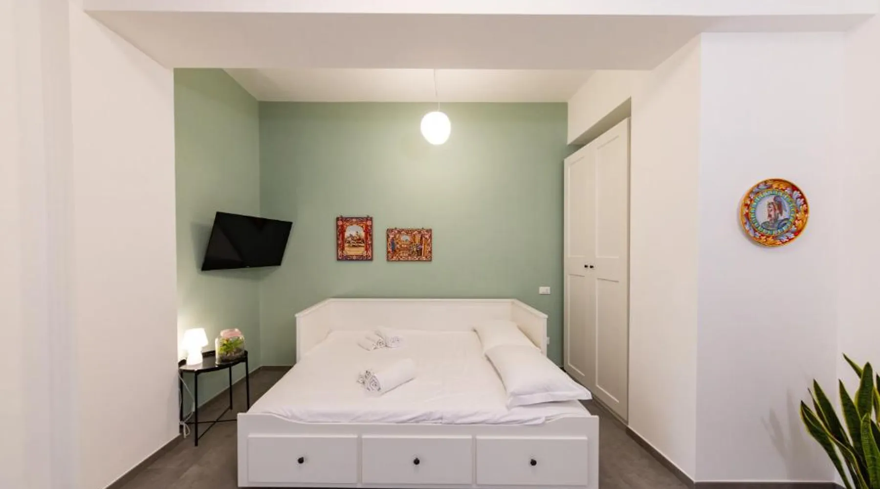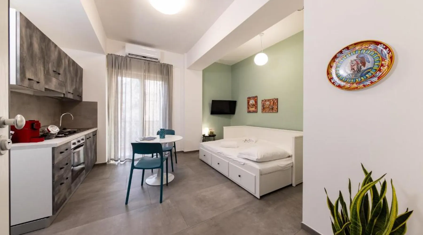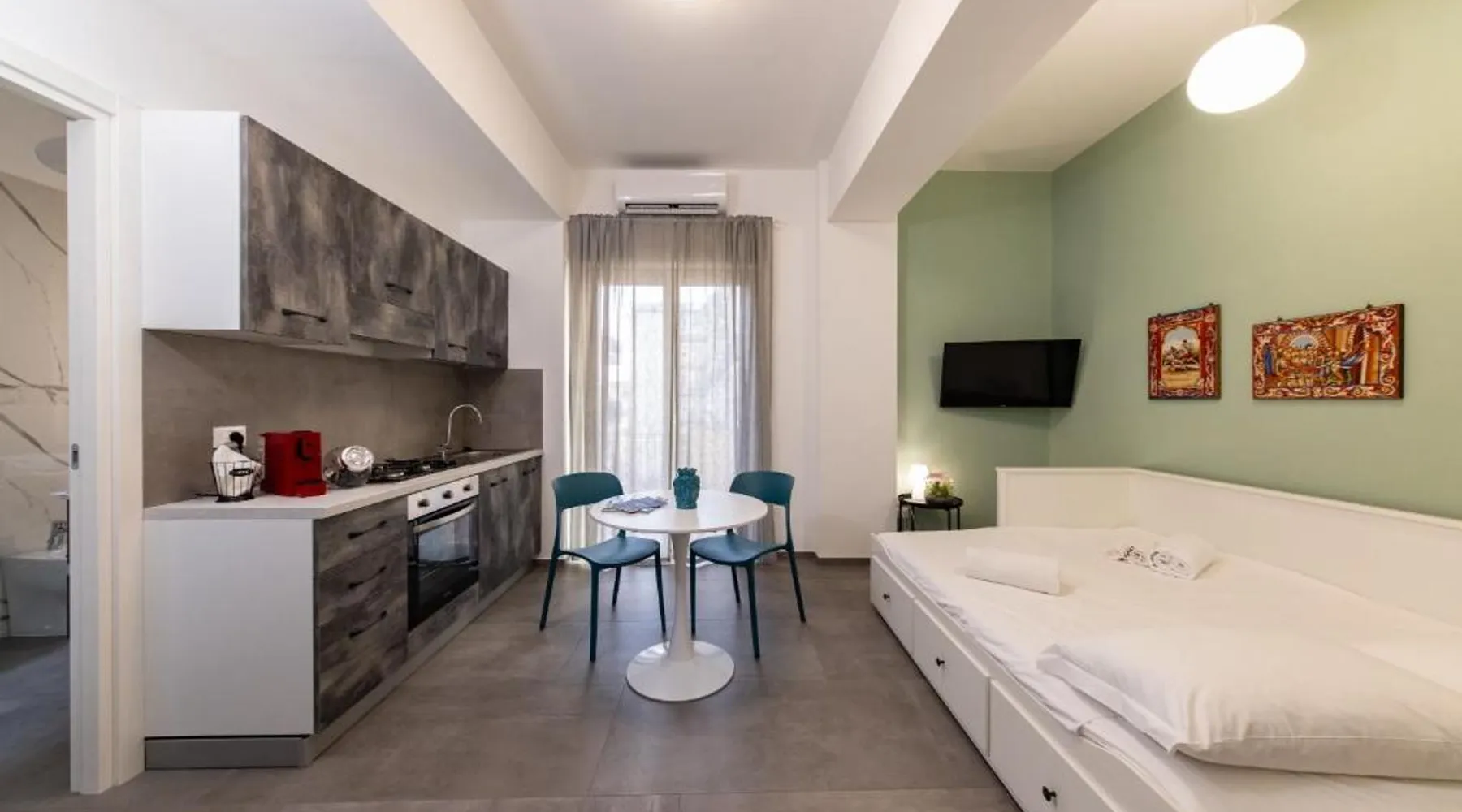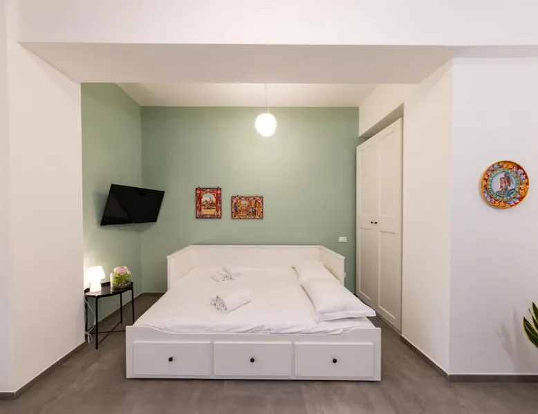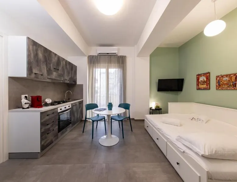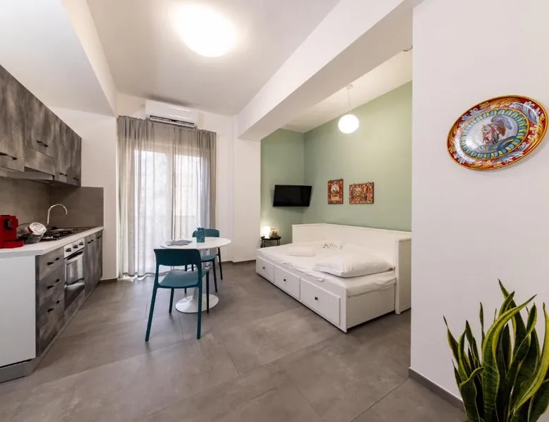 Comfortable Accommodations: Colapesce in Messina offers a one-bedroom apartment with a balcony and sea views. The property features a kitchenette, air-conditioning, and a washing machine. Modern Amenities: Guests enjoy free WiFi, a elevator, minimarket, hairdresser/beautician, and family rooms. The apartment includes a dining area, TV, and tiled floors. Convenient Location: Located 20 mi from Reggio di Calabria Tito Minniti Airport, the apartment is near attractions such as Sant Elia Church (2.5 mi) and Milazzo Harbor (27 mi). Highly rated for room comfort. The air-conditioned apartment has 1 bedroom and 1 bathroom with a shower and a bidet. Meals can be prepared in the kitchen, which features a stovetop, a refrigerator, kitchenware and an oven. This apartment features a washing machine, flat-screen TV, sea views, as well as wine/champagne for guests. The unit has 1 bed.