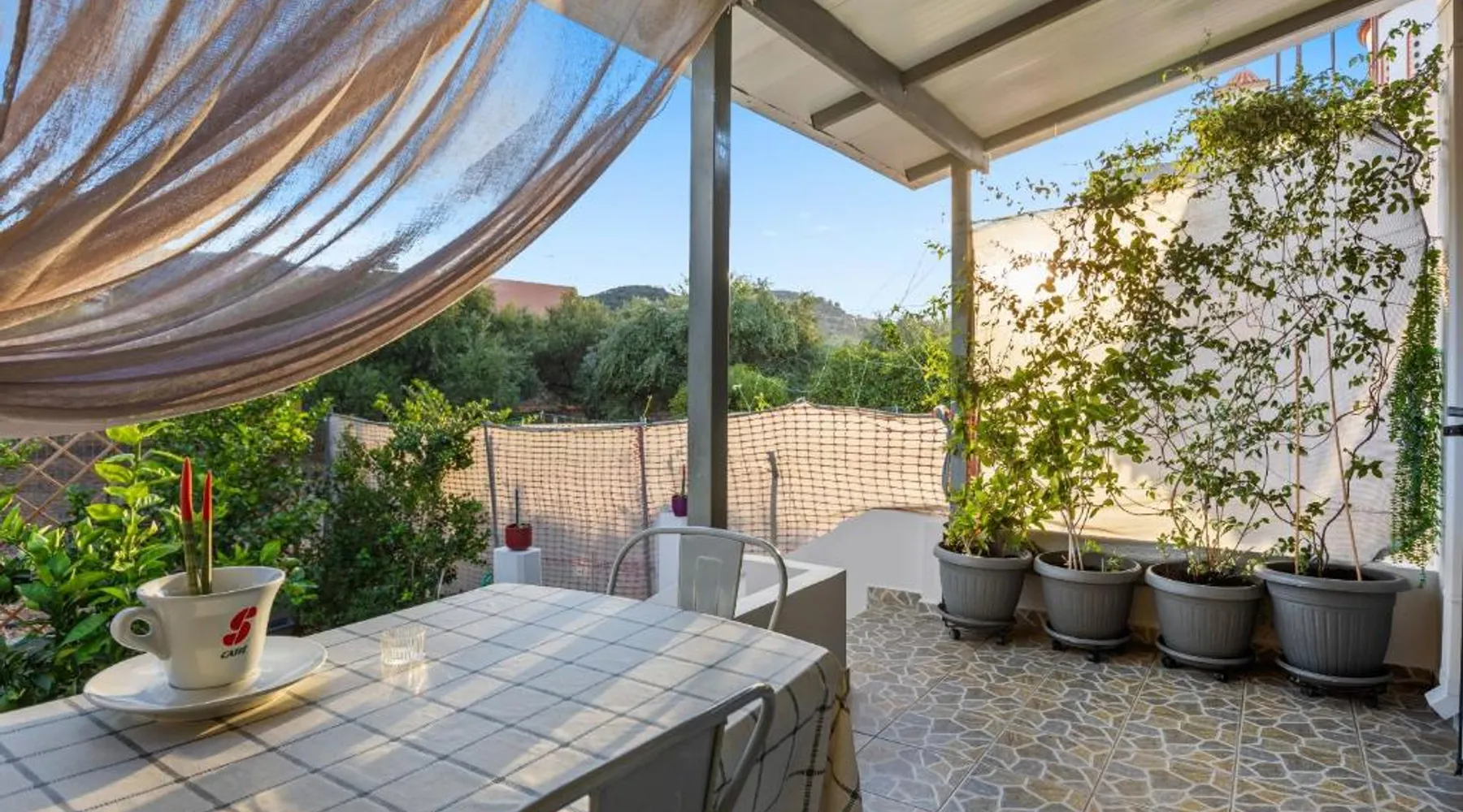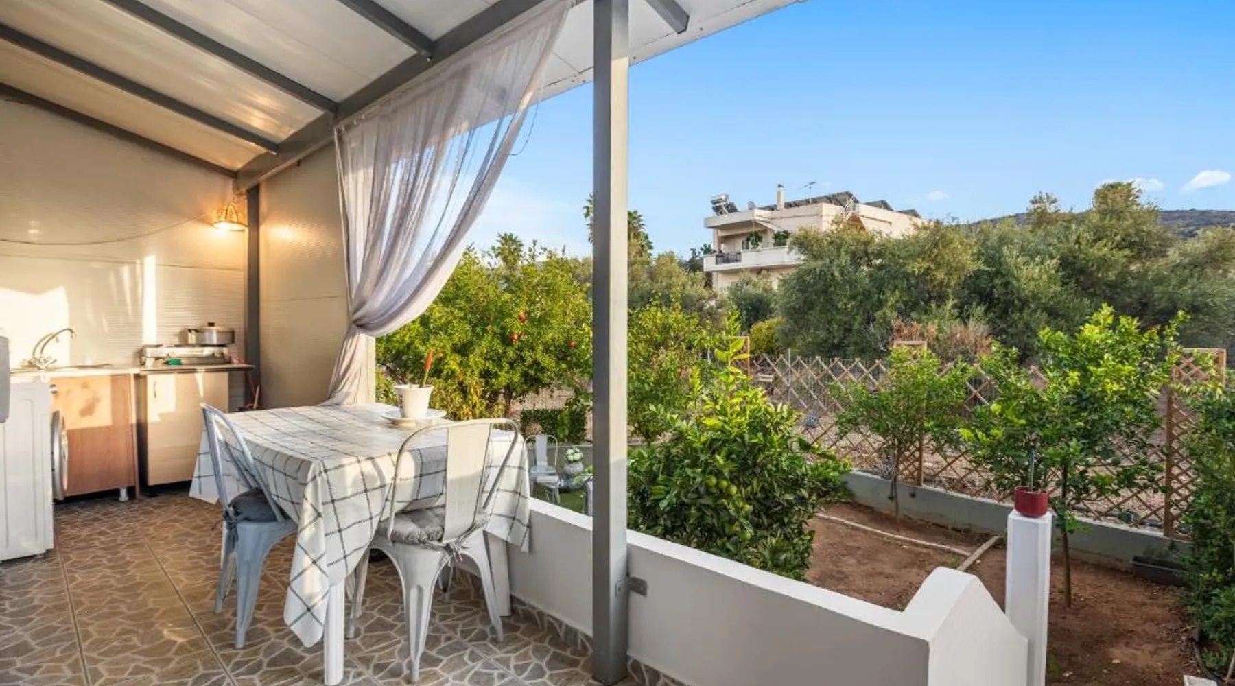 Spacious Accommodations: CasaParadiso in Perivolia offers a spacious holiday home with three bedrooms and a living room. The property features a sun terrace, garden, and free WiFi, ensuring a comfortable stay. Modern Amenities: Guests enjoy air-conditioning, a kitchenette, balcony, washing machine, and a fireplace. Additional amenities include a dishwasher, TV, and soundproofing, catering to all comfort needs. Convenient Location: Located 12 mi from Chania International Airport, CasaParadiso is near attractions such as Limnoupolis and the Municipal Garden, each 2.5 mi away. The property is highly rated for its convenient location. Guests will have a special experience as the holiday home features a fireplace. Boasting a private entrance, this air-conditioned holiday home includes 1 living room, 3 separate bedrooms and 1 bathroom with a bath and a shower. Guests will find a stovetop, a refrigerator, a dishwasher and kitchenware in the fully equipped kitchen. The holiday home also features a barbecue. The spacious holiday home offers a washing machine, soundproof walls, a tea and coffee maker as well as a terrace with garden views. The unit has 4 beds.