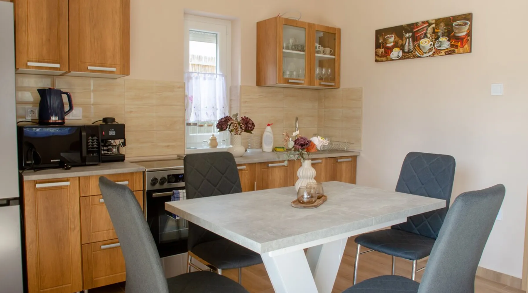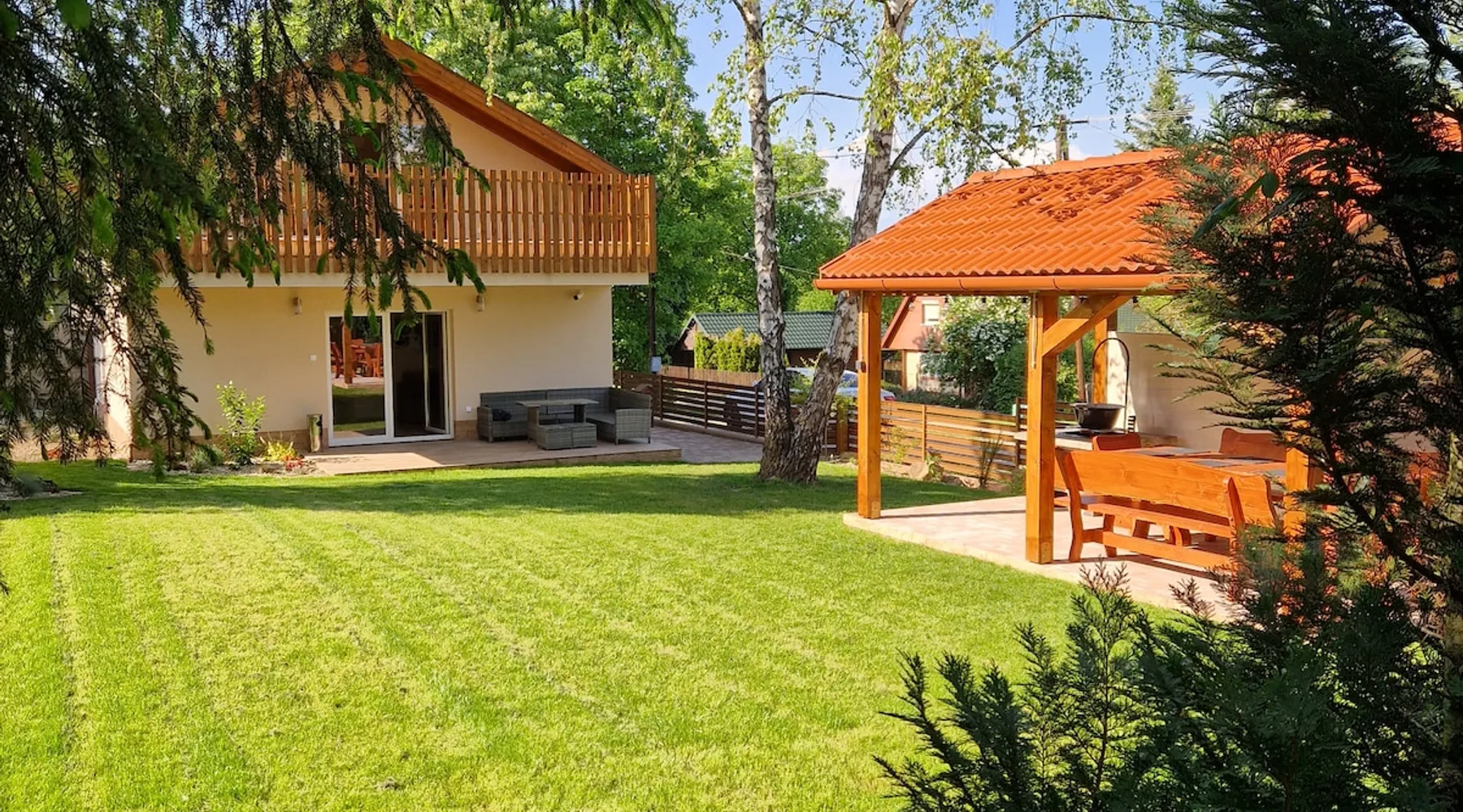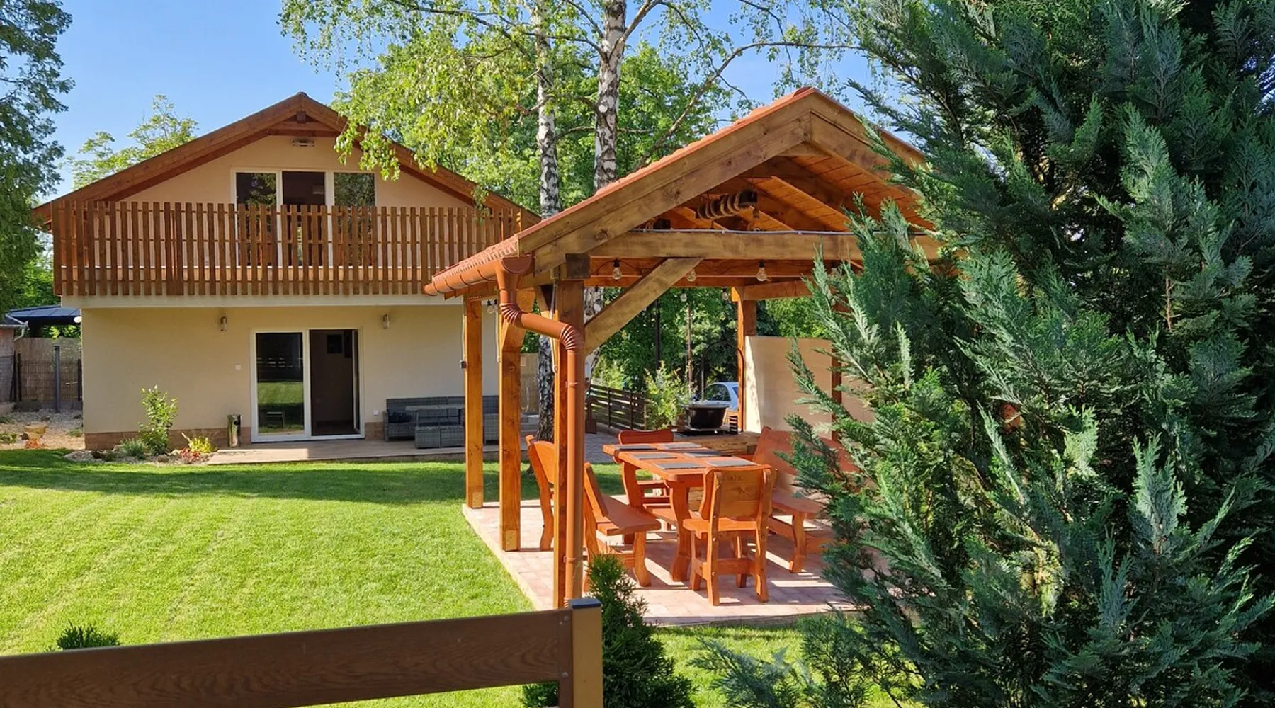 Our guesthouse is the most well-known resort in Palócföld, located in the heart of the cozy resort area of Lake Bánki, at your fingertips from the lake. The building is a newly built, winterized two-story house, where we can comfortably accommodate 8 people, but in all cases (even if you book for 1-2 people), the entire house is a private accommodation. It will be just you and your family, friends during your stay. The space The guesthouse has a new building with two floors, a bedroom on the ground floor, a living-dining kitchen, a bathroom, a separate toilet and a large terrace with a garden connection. Upstairs there is a bedroom, a living room, a bathroom with a toilet and a large balcony. In the garden, there is an outdoor kitchen equipped with a grill and a kettle, where you can cook in a good mood. The prepared meals can also be enjoyed on the comfortable and spacious garden area. The guesthouse can host up to 8 people. Guest access The building is a newly built, winterized two-story house, where we can comfortably accommodate 8 people, but in all cases (even if you book for 1-2 people), the entire house is a private accommodation. It will be just you and your family, friends during your stay. Other things to note Check-in and checkout are flexible, depending on the arrival of other guests and our own daily schedule. Registration Details EG24090433