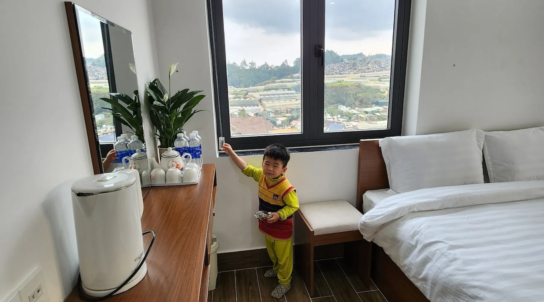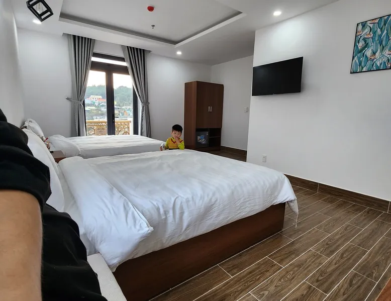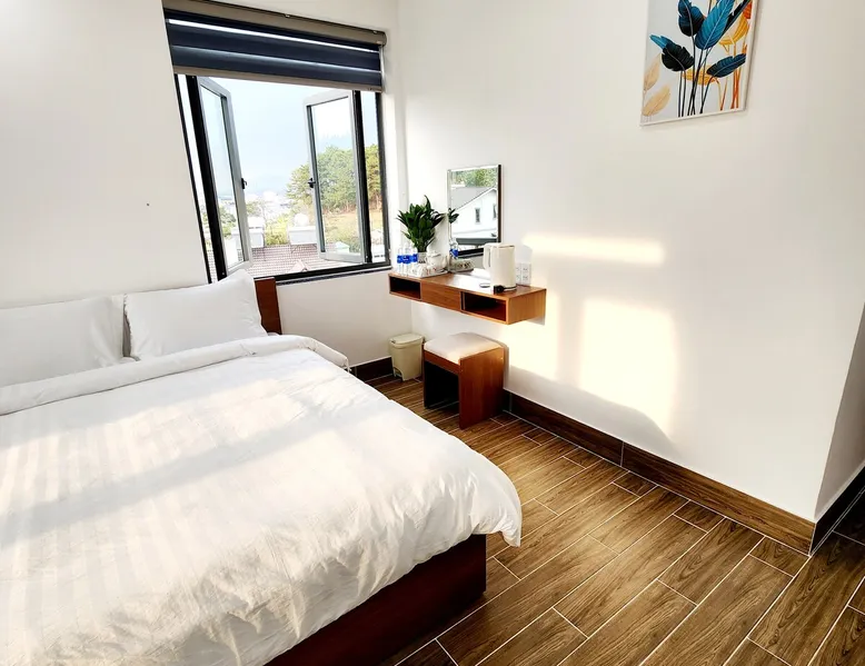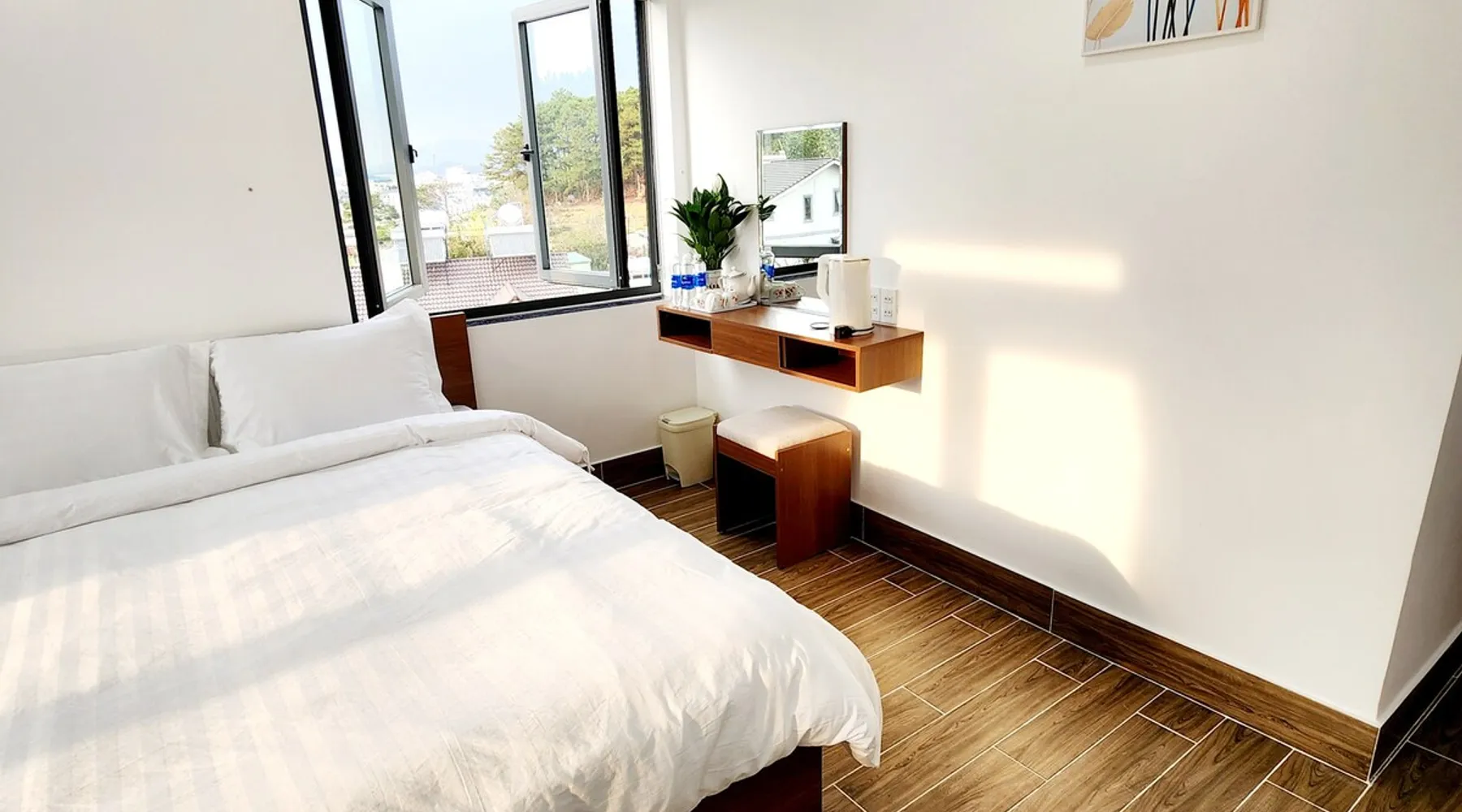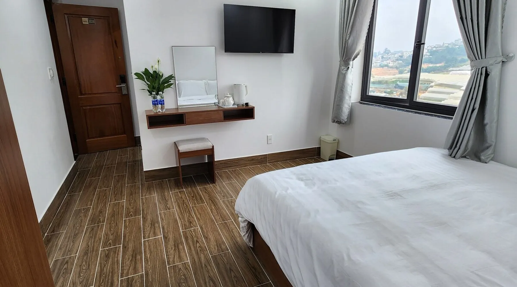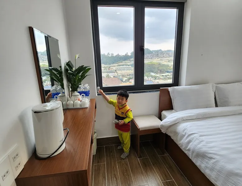 double room 30m2, single room 17-27m2, with elevator, with view, 600m from Cam Ly waterfall, 2.5 km from the market, with spacious parking space, with vegetarian food delivery unit according to the daily menu