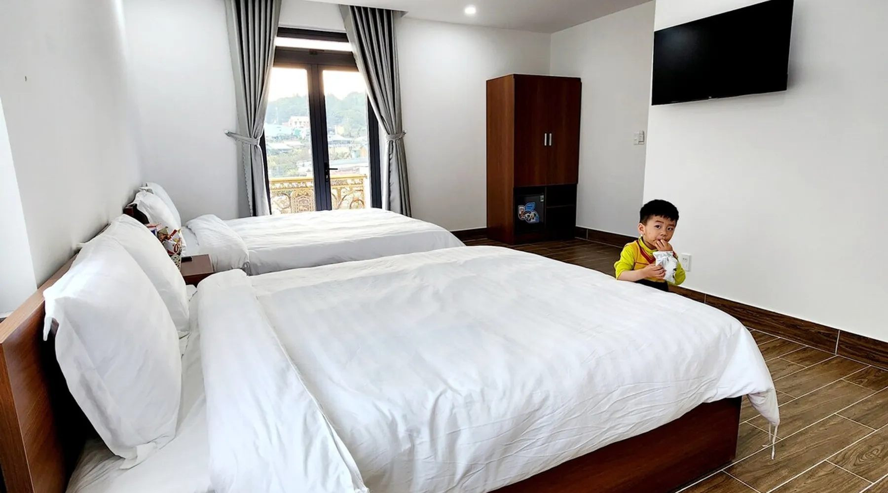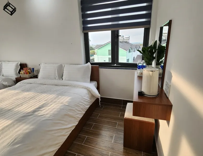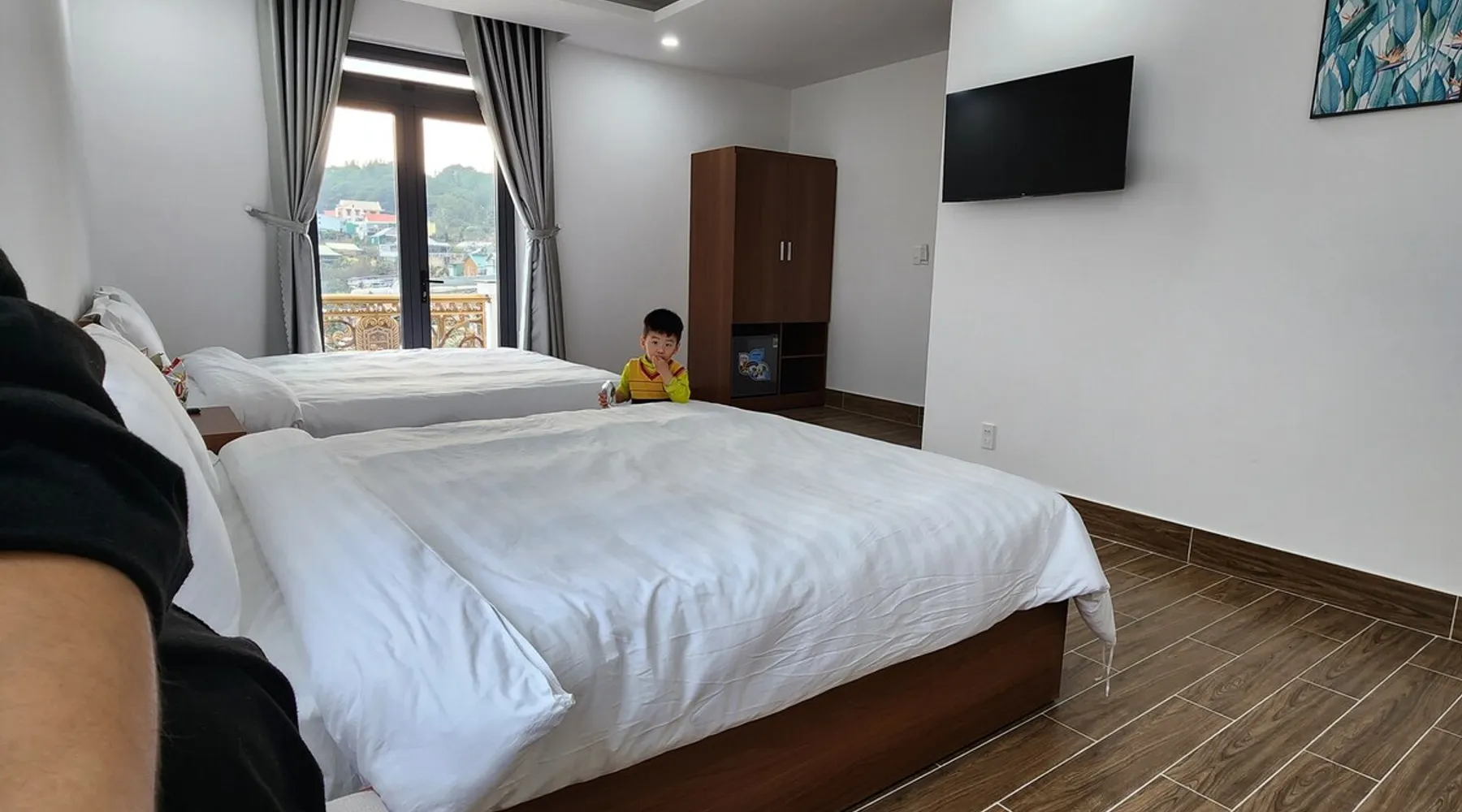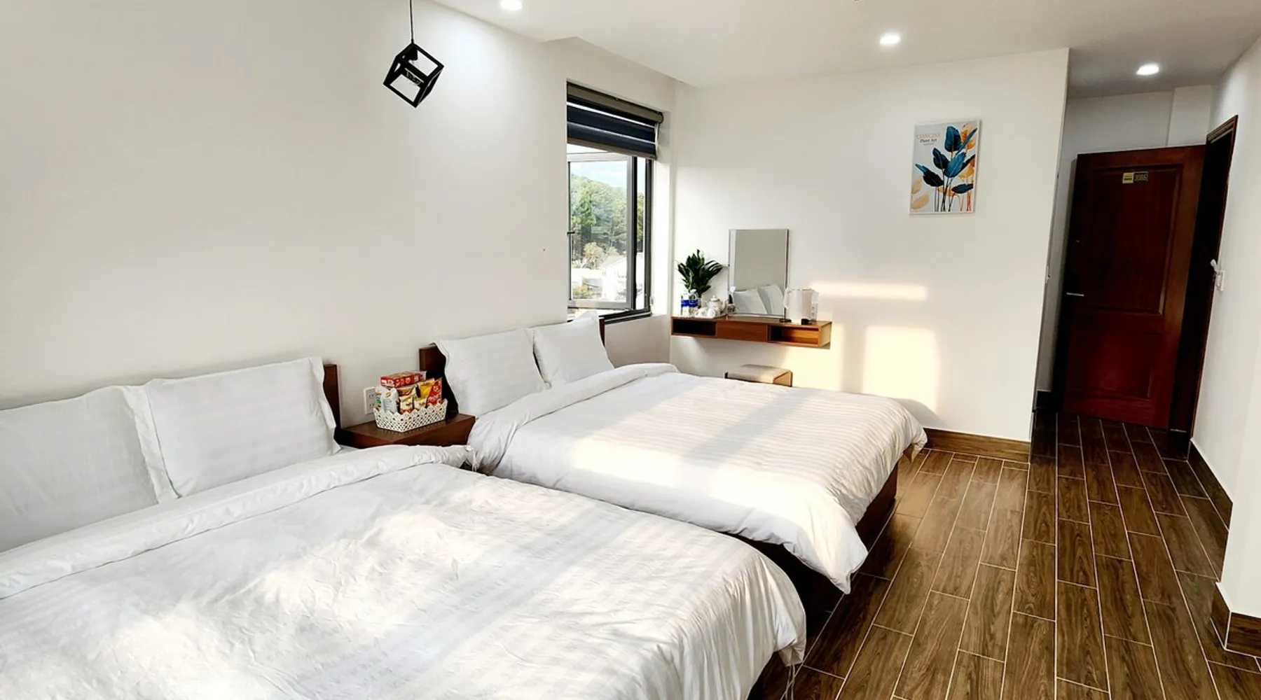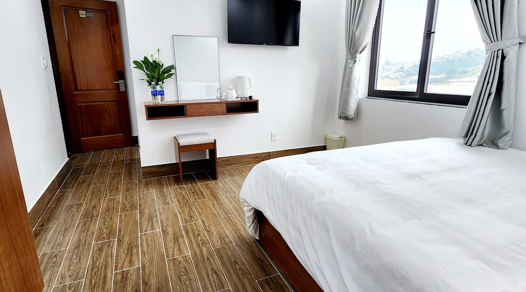 double room 30m2, single room 17-27m2, with elevator, with view, 600m from Cam Ly waterfall, 2.5 km from the market, with spacious parking space, with vegetarian food delivery unit according to the daily menu