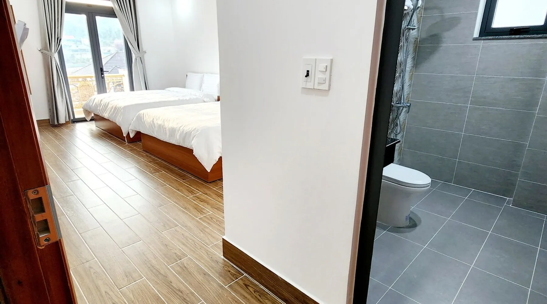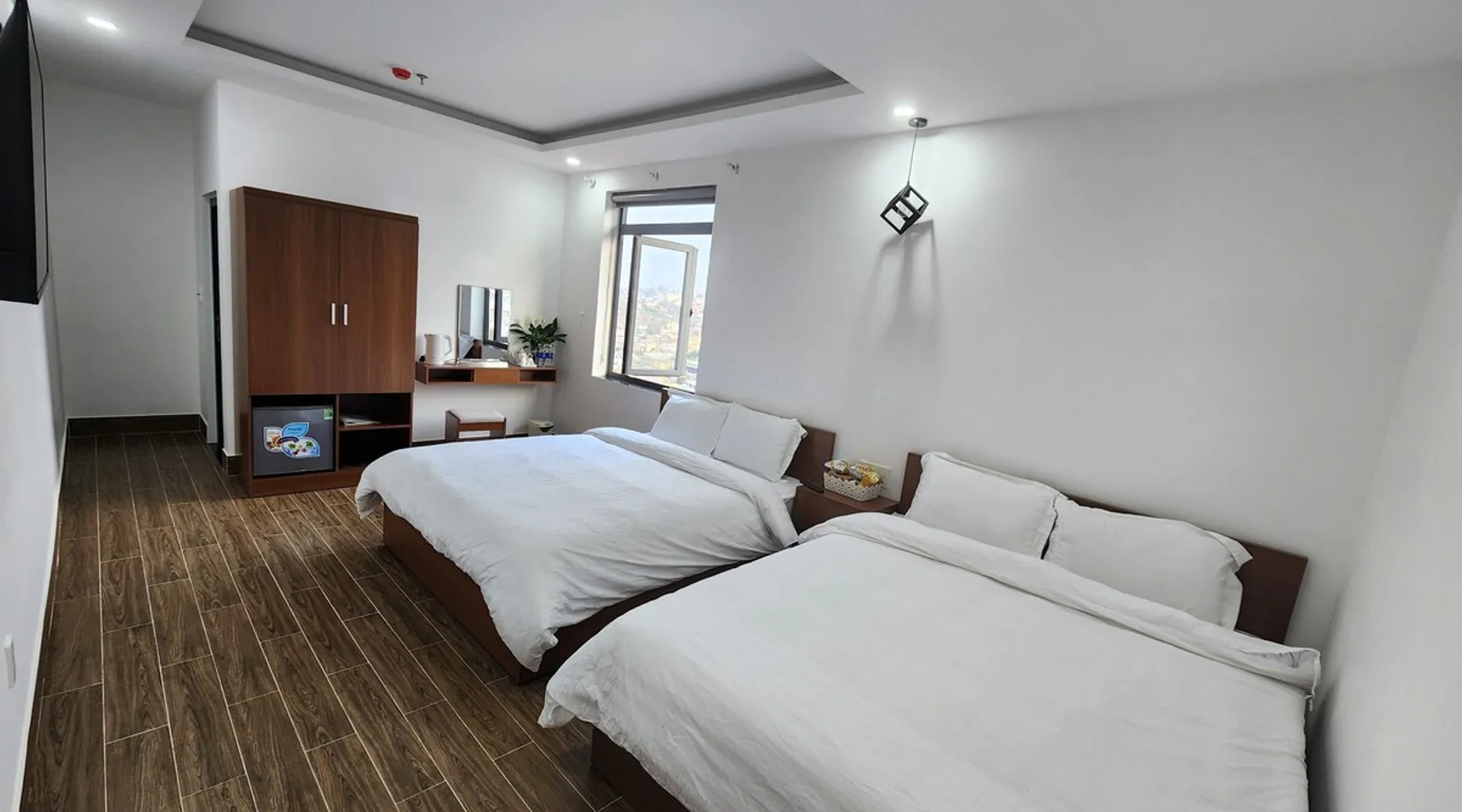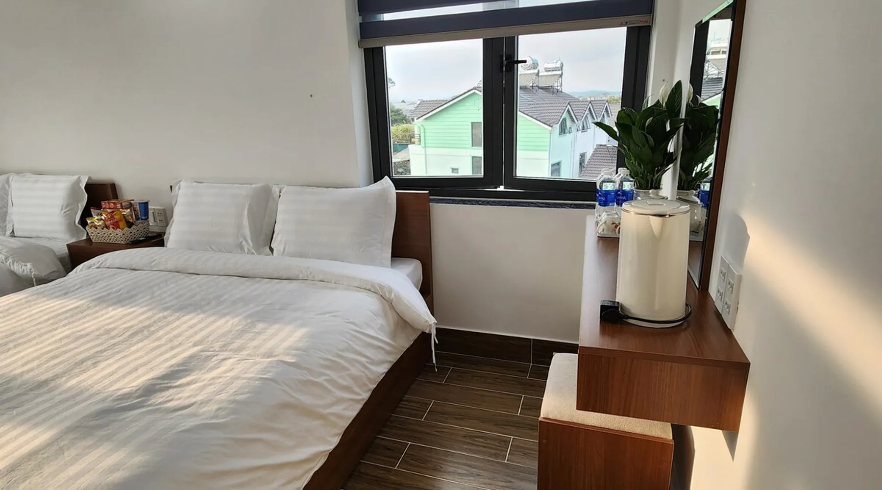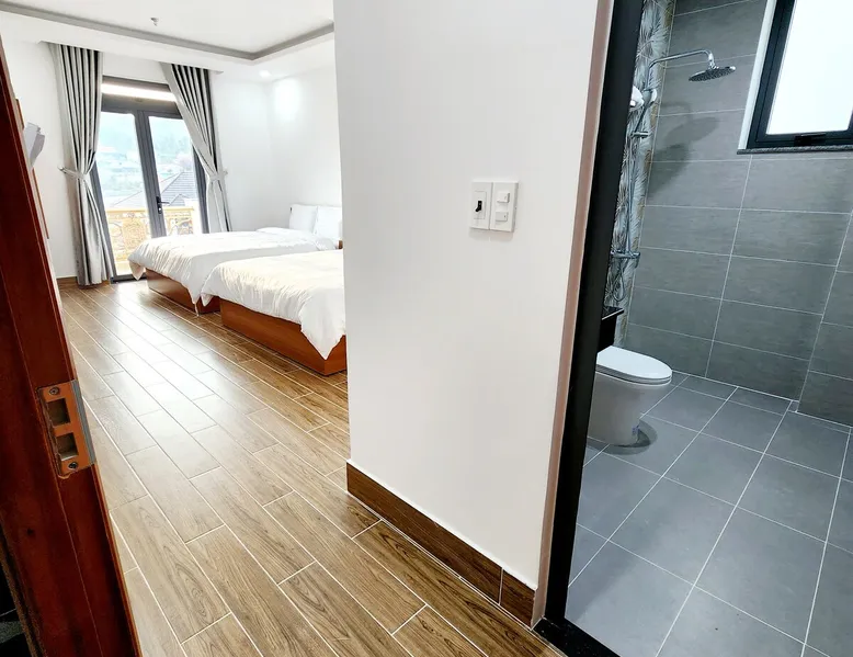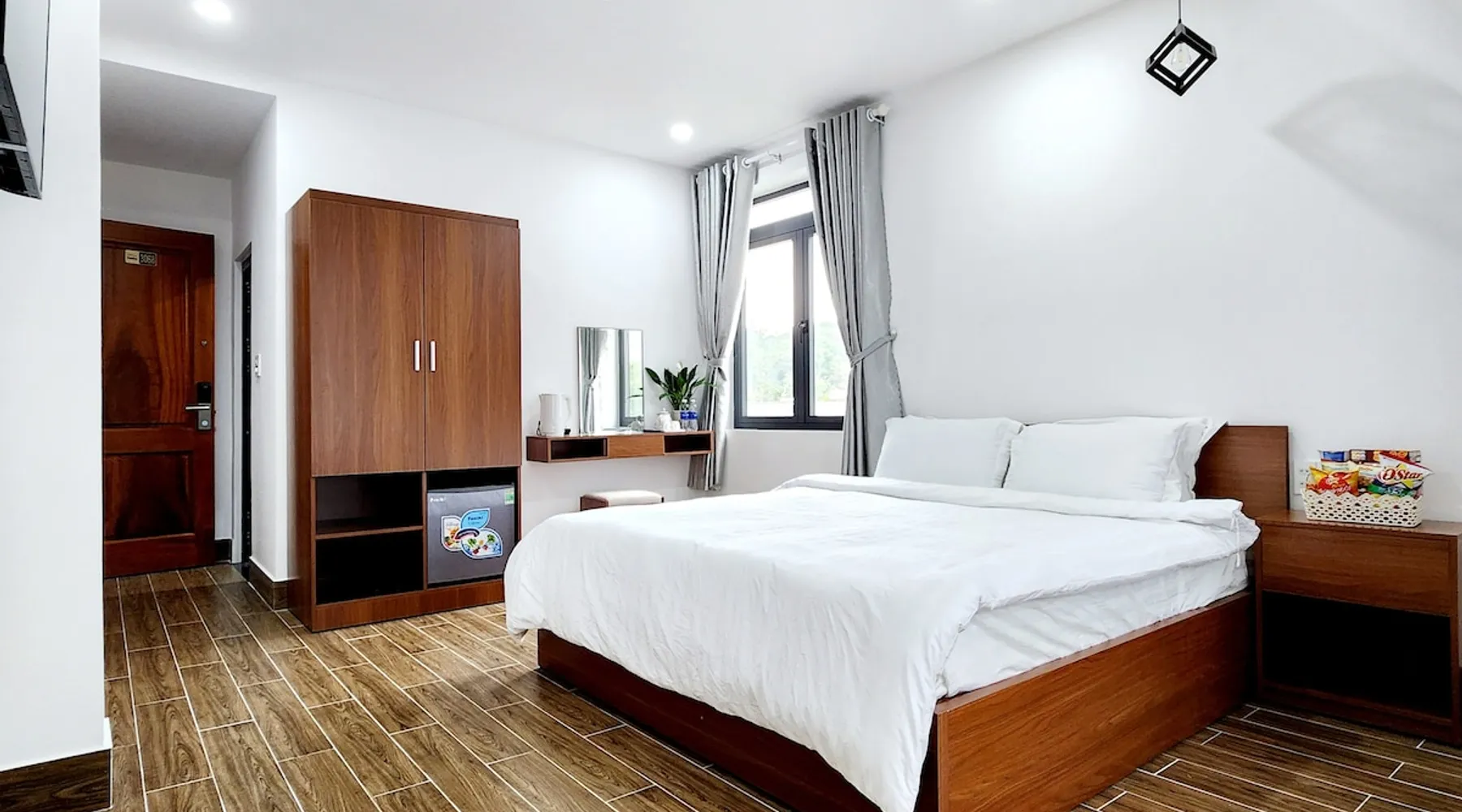 double room 30m2, single room 17-27m2, with elevator, with view, 600m from Cam Ly waterfall, 2.5 km from the market, with spacious parking space, with vegetarian food delivery unit according to the daily menu