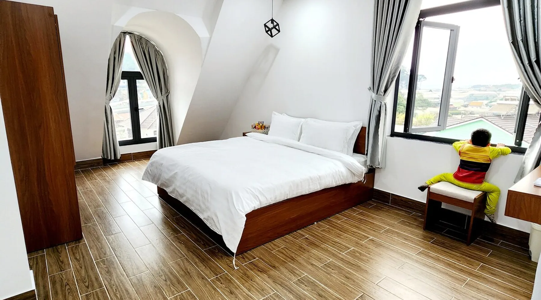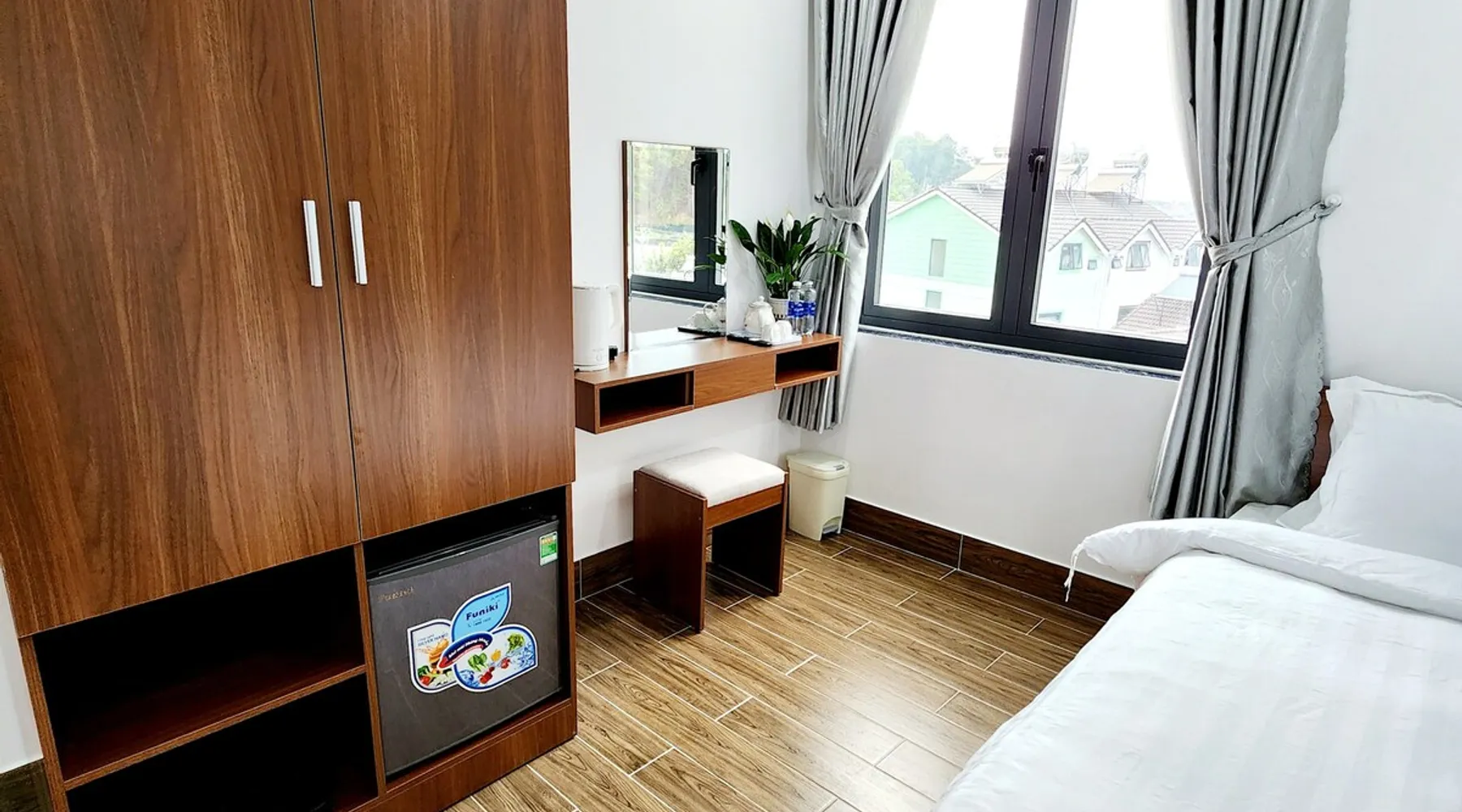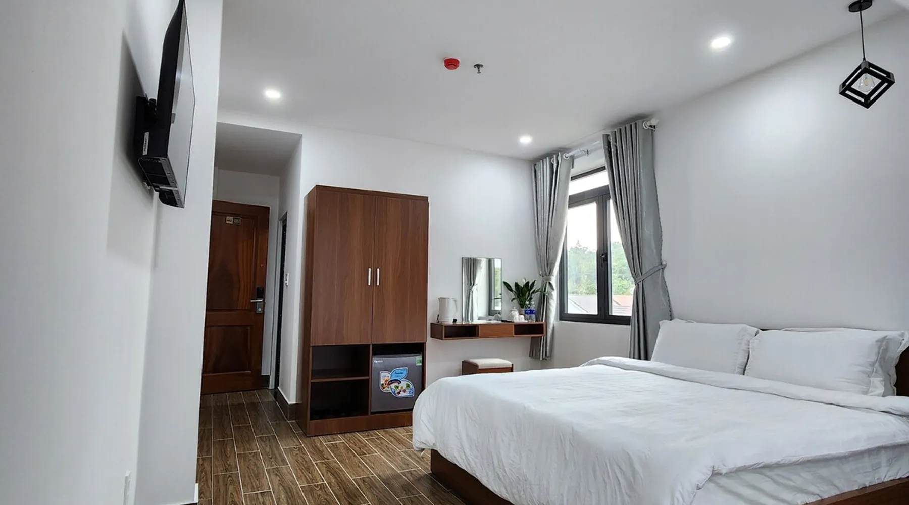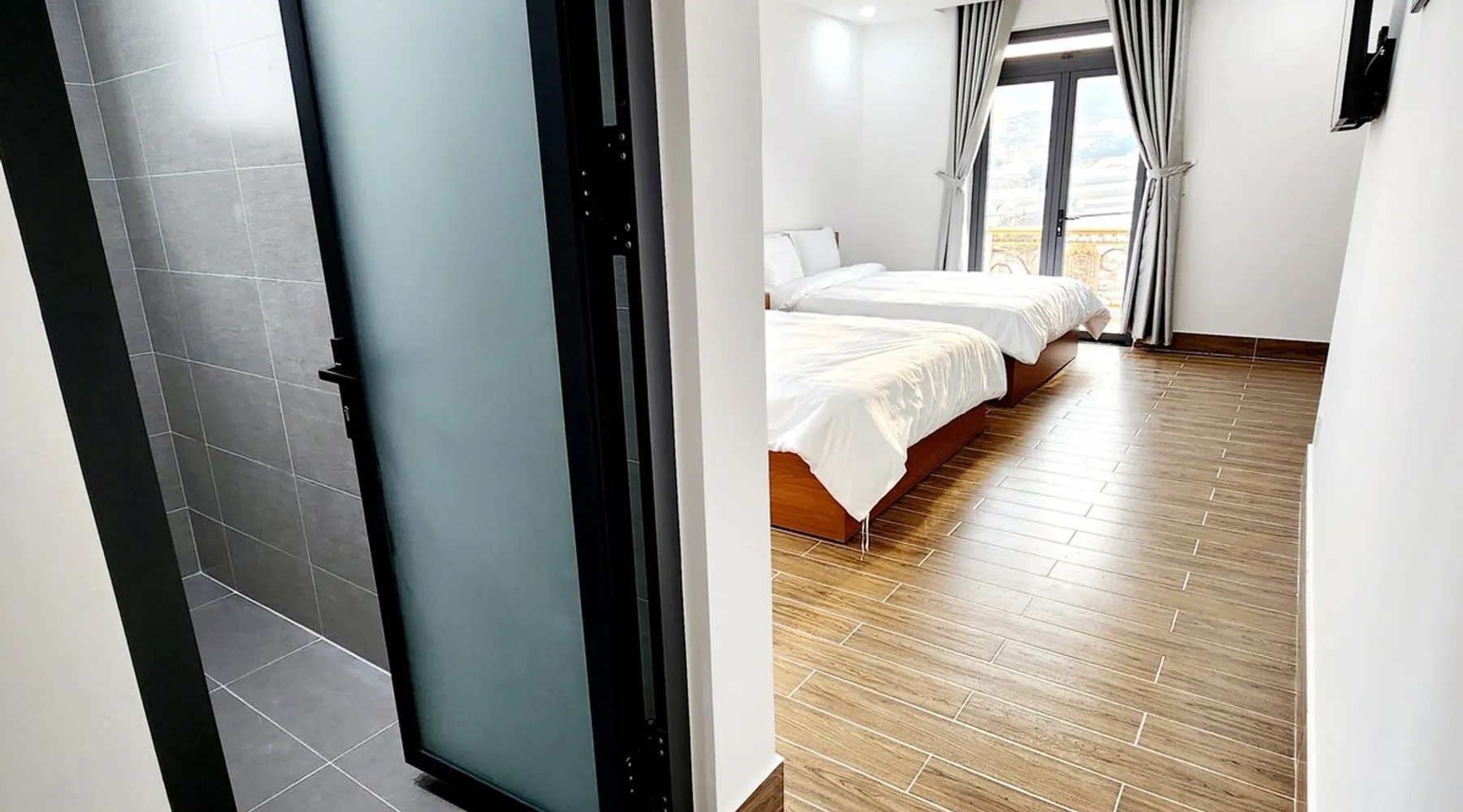double room 30m2, single room 17-27m2, with elevator, with view, 600m from Cam Ly waterfall, 2.5 km from the market, with spacious parking space, with vegetarian food delivery unit according to the daily menu