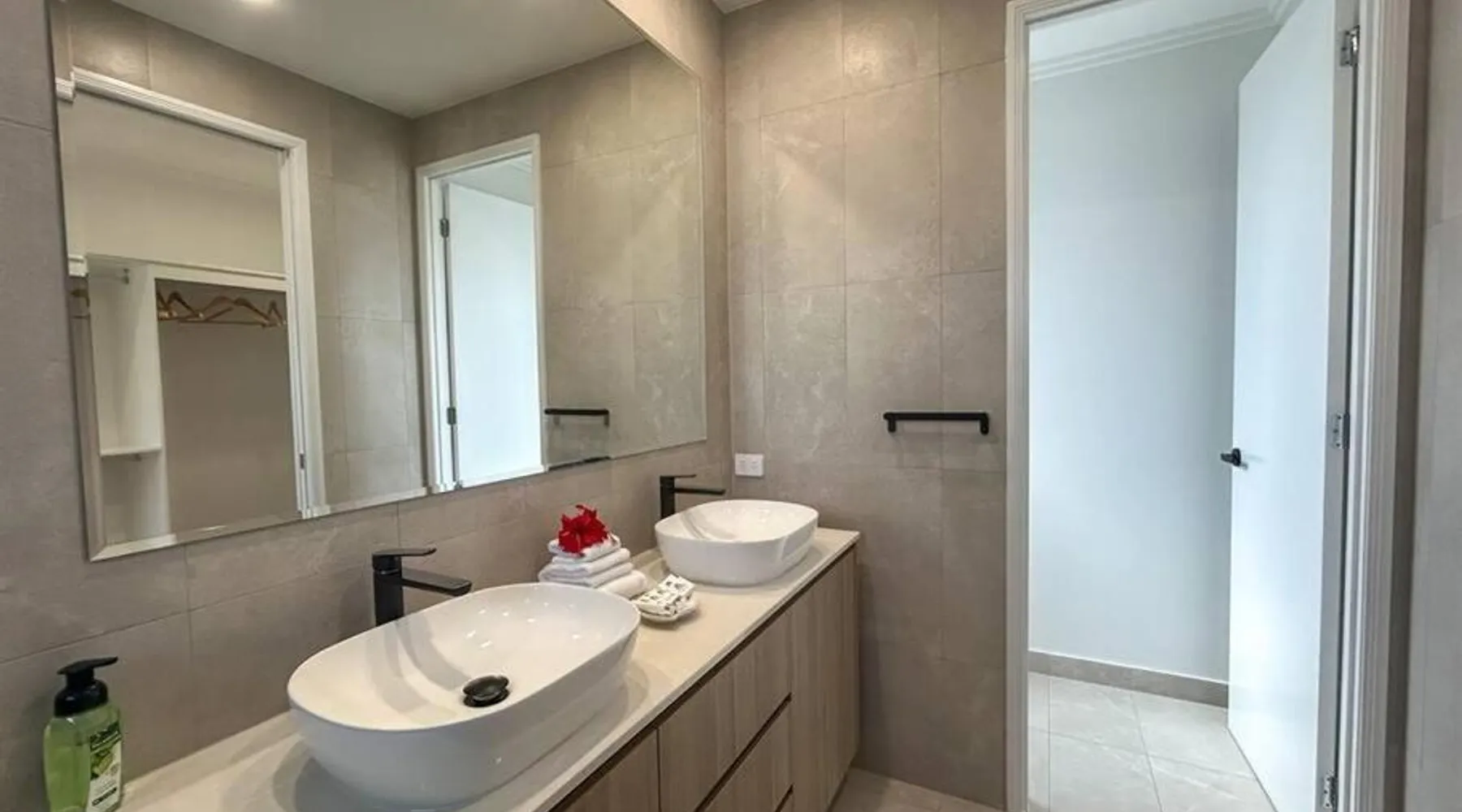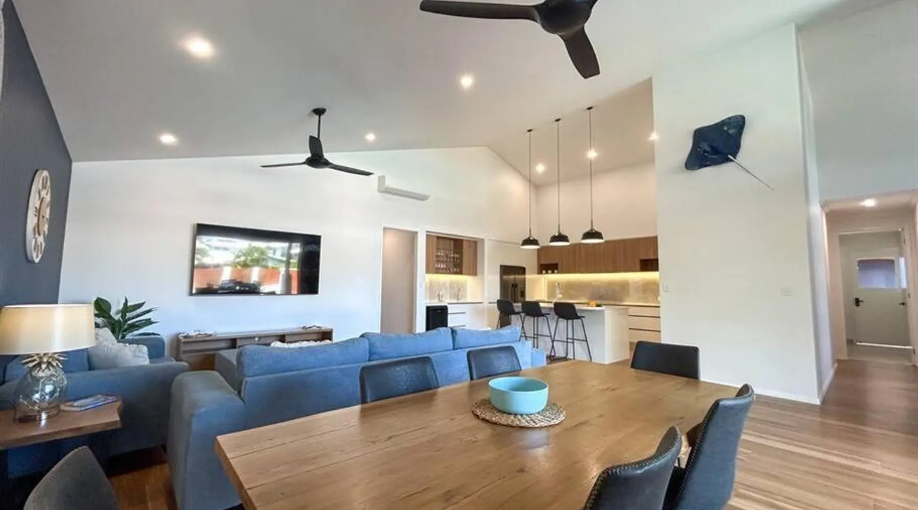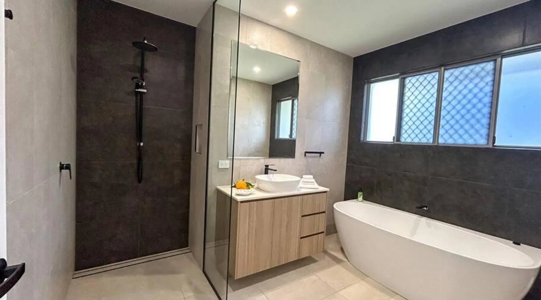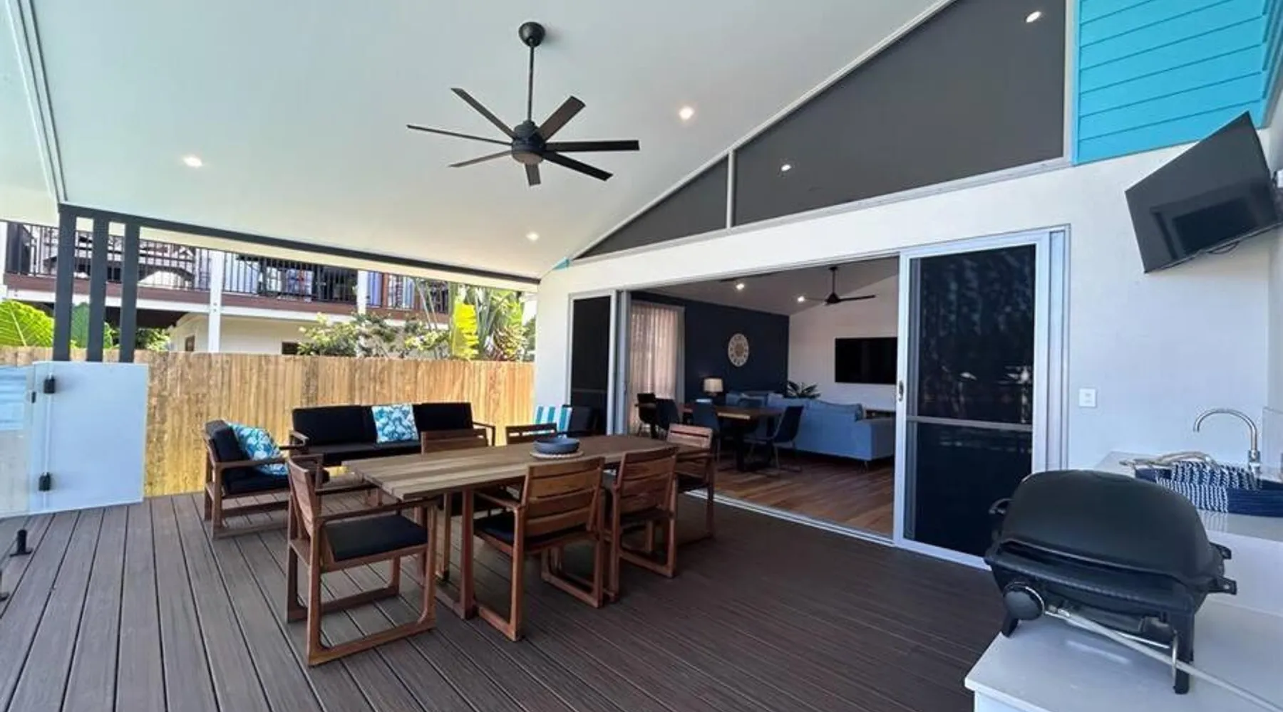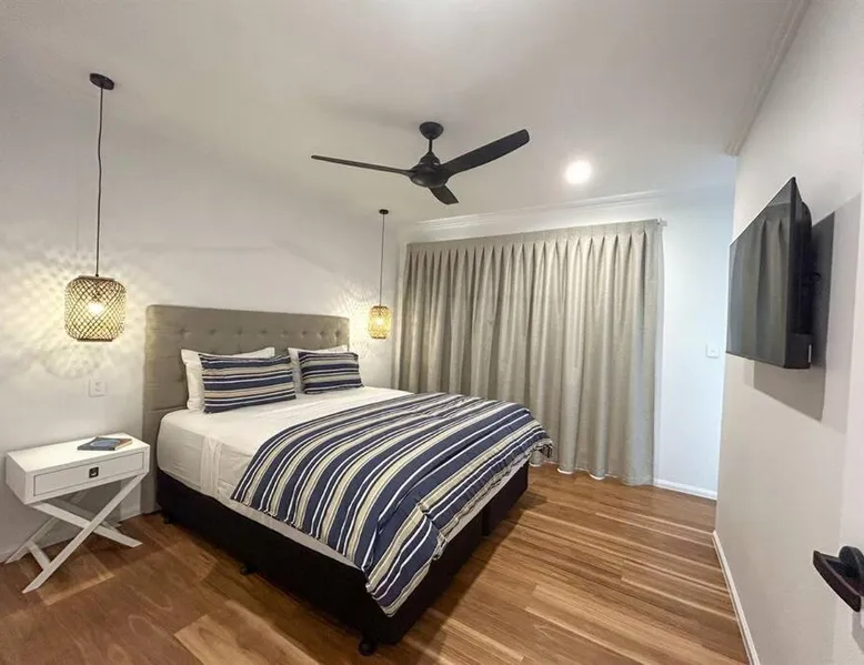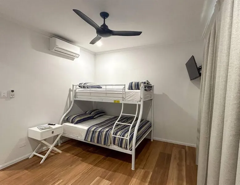 Comfortable Accommodations: Beach Break - 4 Bedroom use - Family Home in South Mission Beach offers four bedrooms and two bathrooms. The property includes a fully equipped kitchen, washing machine, and free WiFi. Leisure Facilities: Guests can enjoy a saltwater pool, outdoor furniture, and a seating area. The home features a dining table, walk-in shower, and a dining area, ensuring a pleasant stay. Convenient Location: Mission Beach is a 1-minute walk away, providing easy access to local attractions. Free on-site private parking is available for guests. Highly Rated by Guests: Beach Break - 4 Bedroom use - Family Home is highly rated by guests for its comfortable amenities and excellent location. The private pool is the special feature of this holiday home. The holiday home's kitchen, which features kitchenware, is available for cooking and storing food. There is a washing machine, a tea and coffee maker and outdoor furniture and complimentary wine/champagne is featured for guests. The unit offers 6 beds.