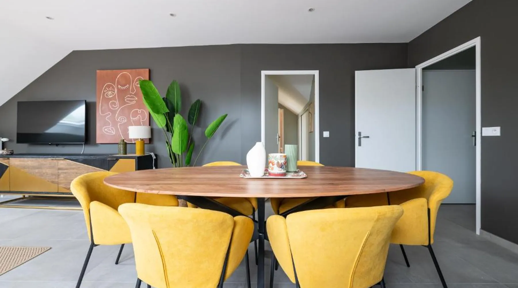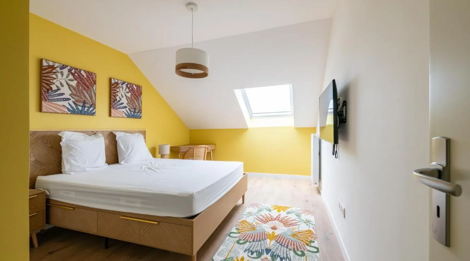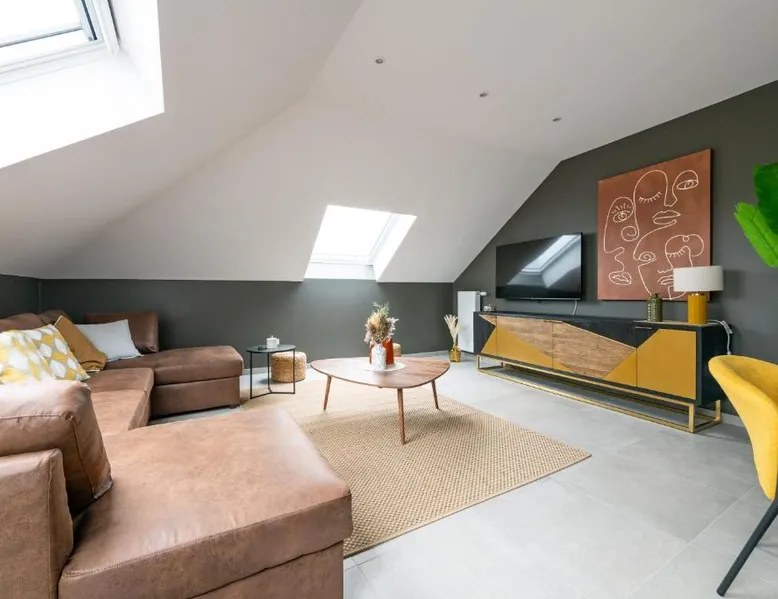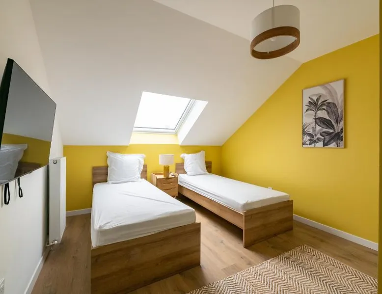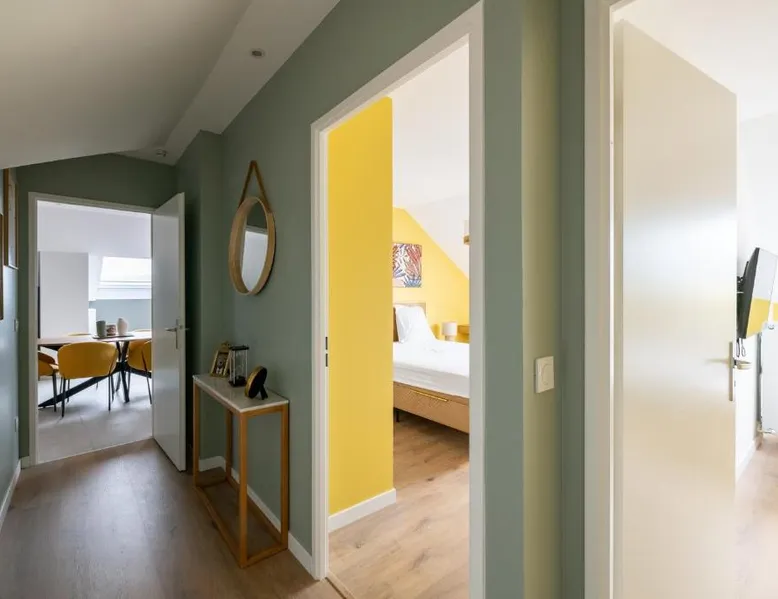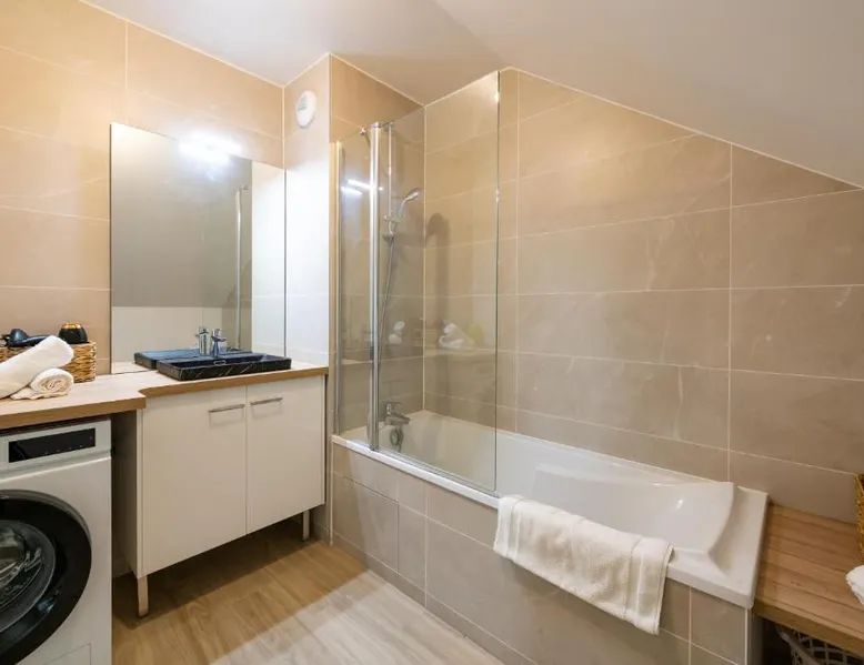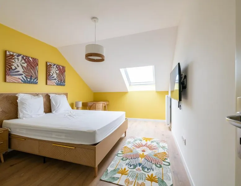 Spacious Accommodations: Élégance & Confort pr 6 à Disney - Fairytale Factory in Saint-Germain-sur-Morin offers a spacious apartment with two bedrooms and a living room. The property features parquet floors and a dining area. Modern Amenities: Guests enjoy free WiFi, a elevator, and free on-site private parking. The apartment includes a kitchenette with a coffee machine, microwave, and dishwasher. Additional amenities include a washing machine, dining table, sofa bed, and TV. Convenient Location: Located 16 mi from Paris Charles de Gaulle Airport, the apartment is 4.3 mi from Disneyland Paris and 5.6 mi from Val d'Europe RER Station. Nearby attractions include Domaine de Chaalis (25 mi) and Parc Asterix Amusement Park (30 mi). Highly rated by guests. In the fully equipped kitchen, guests will find a stovetop, a refrigerator, a dishwasher and kitchenware. The spacious apartment features a flat-screen TV, a washing machine, a tea and coffee maker, a seating area as well as city views. The unit has 4 beds.