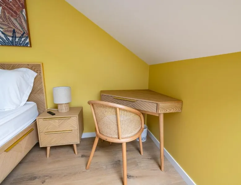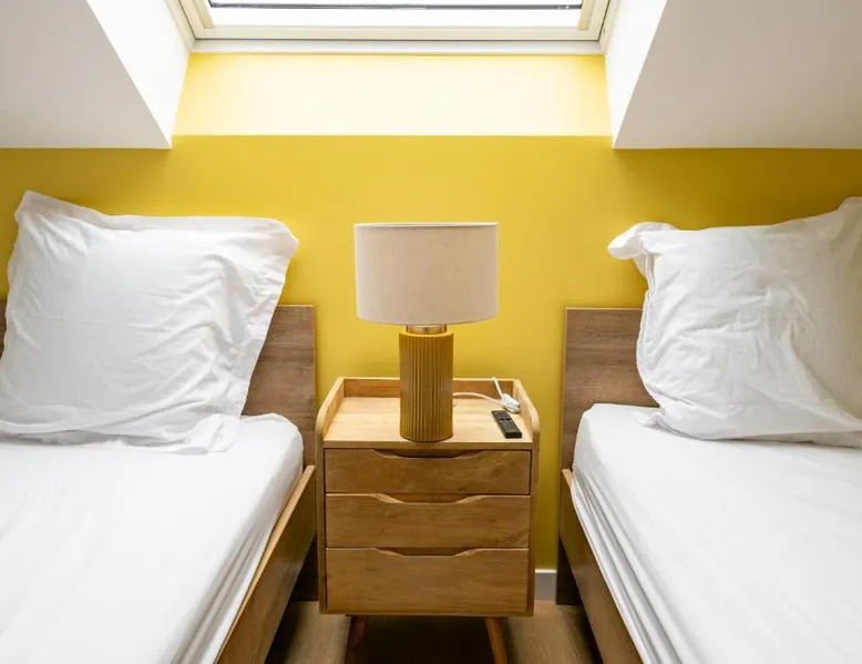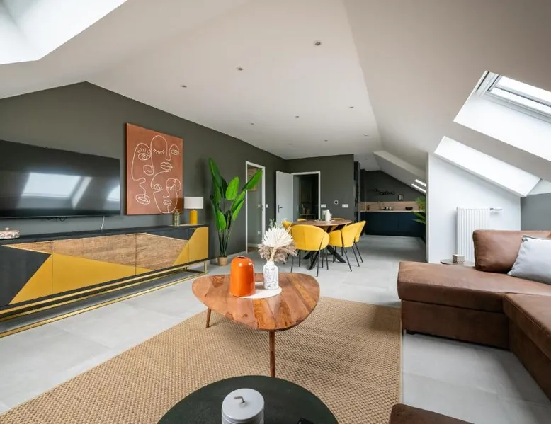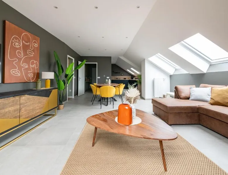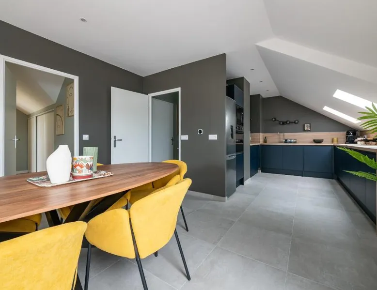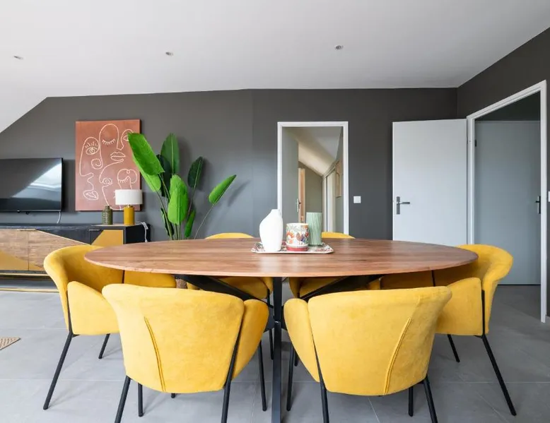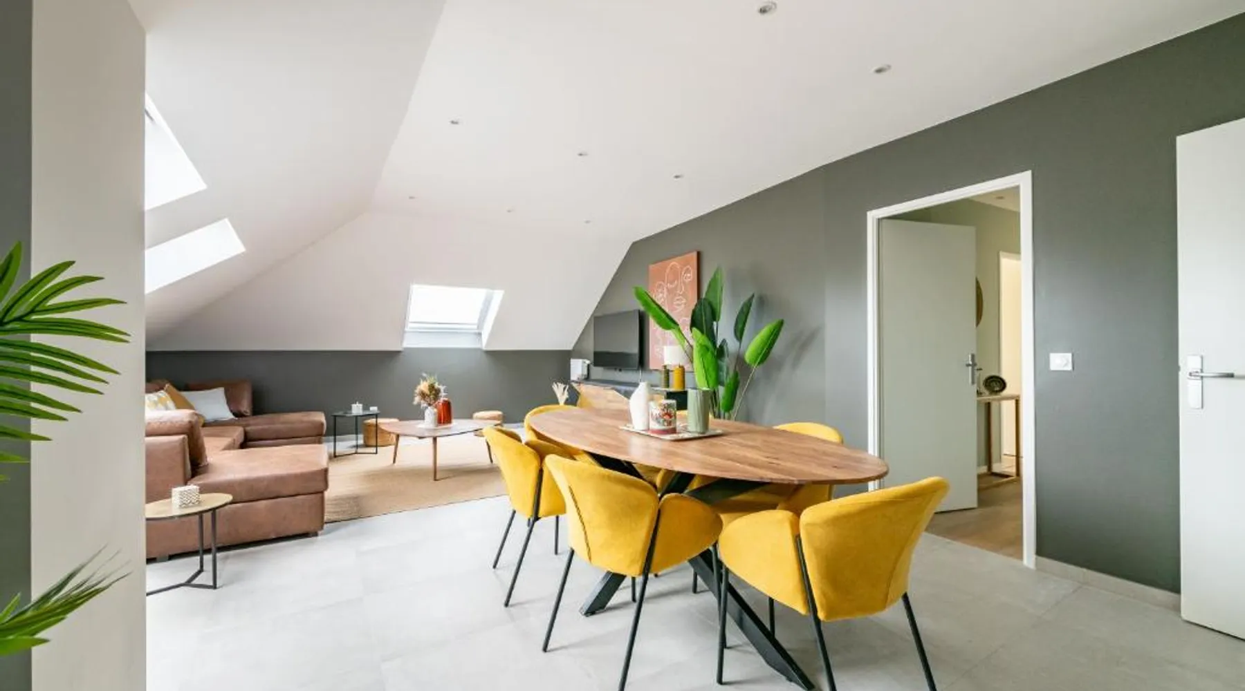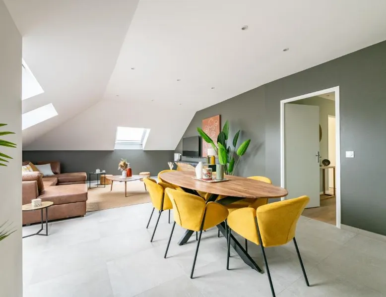 Spacious Accommodations: Élégance & Confort pr 6 à Disney - Fairytale Factory in Saint-Germain-sur-Morin offers a spacious apartment with two bedrooms and a living room. The property features parquet floors and a dining area. Modern Amenities: Guests enjoy free WiFi, a elevator, and free on-site private parking. The apartment includes a kitchenette with a coffee machine, microwave, and dishwasher. Additional amenities include a washing machine, dining table, sofa bed, and TV. Convenient Location: Located 16 mi from Paris Charles de Gaulle Airport, the apartment is 4.3 mi from Disneyland Paris and 5.6 mi from Val d'Europe RER Station. Nearby attractions include Domaine de Chaalis (25 mi) and Parc Asterix Amusement Park (30 mi). Highly rated by guests. In the fully equipped kitchen, guests will find a stovetop, a refrigerator, a dishwasher and kitchenware. The spacious apartment features a flat-screen TV, a washing machine, a tea and coffee maker, a seating area as well as city views. The unit has 4 beds.