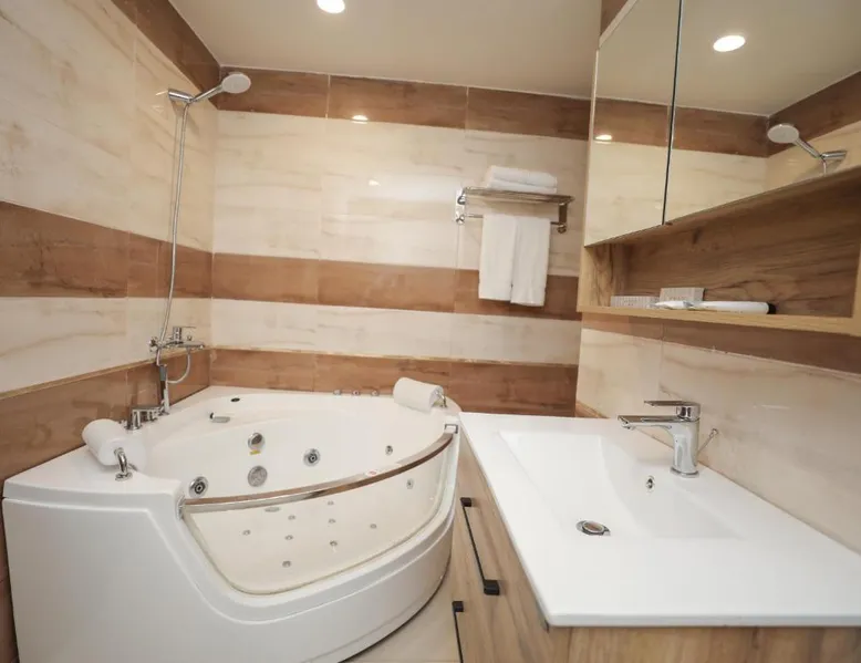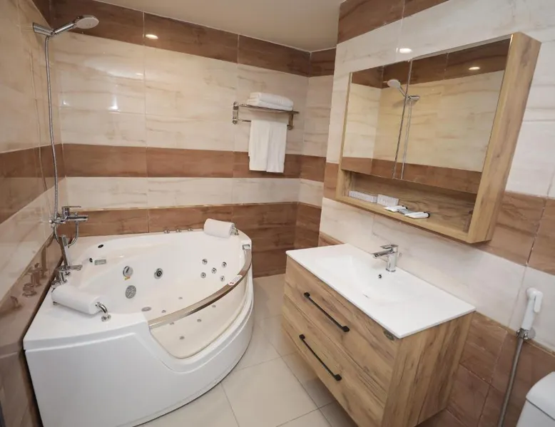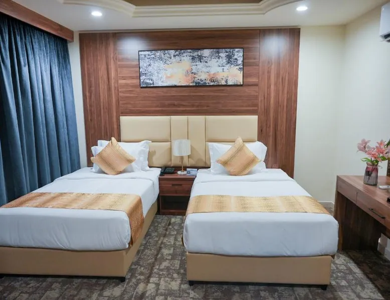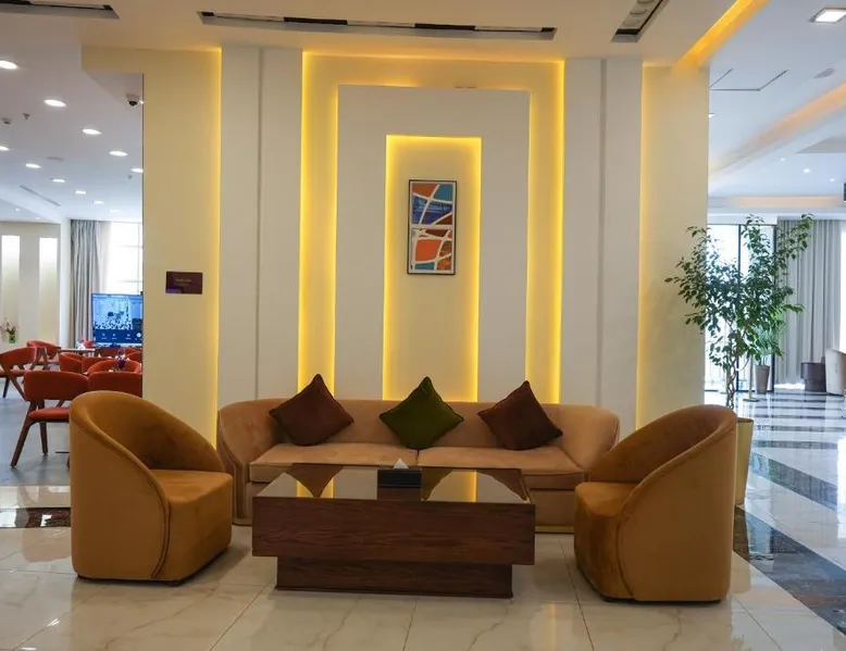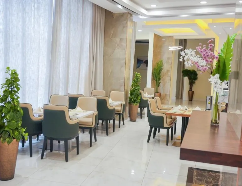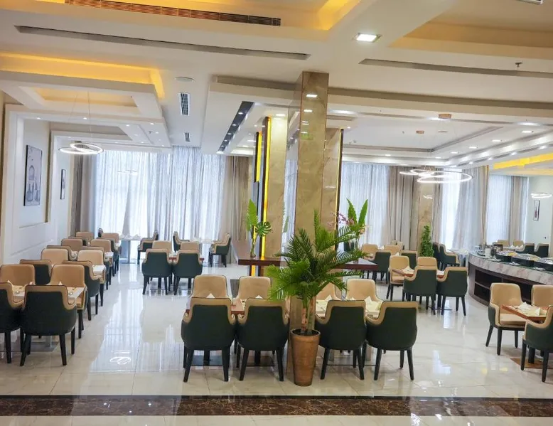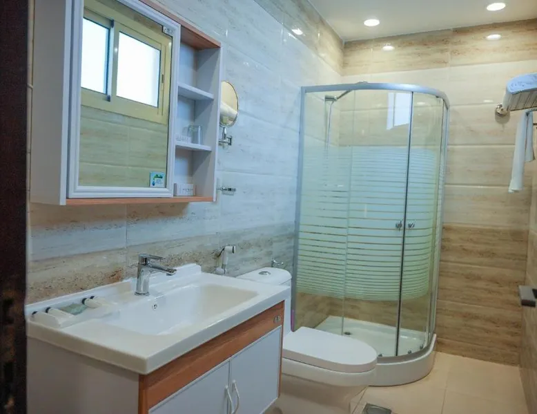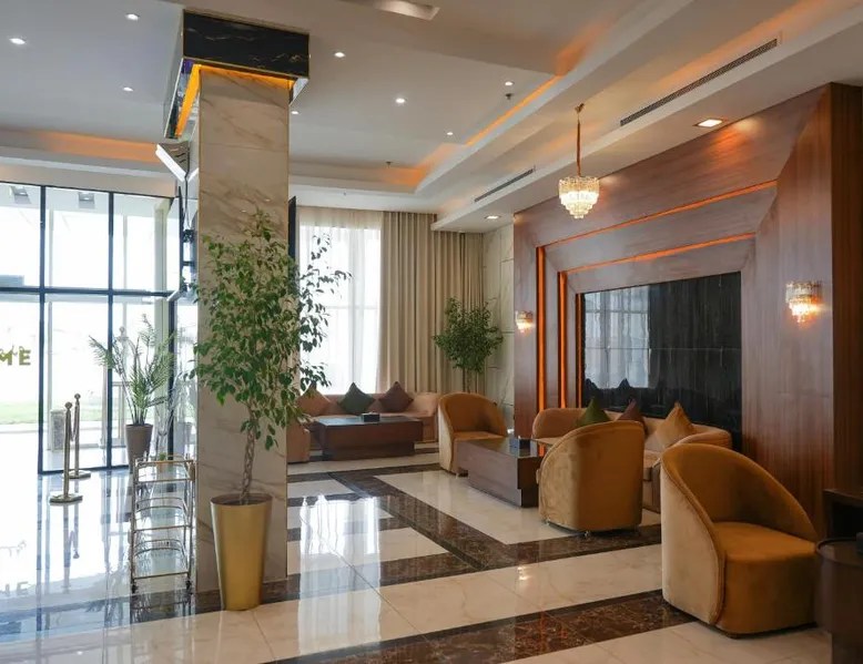 Comfortable Accommodations: فندق المدى العربية الفندقية in Jazan offers family rooms with air-conditioning, private bathrooms, and modern amenities. Guests enjoy free WiFi, a fitness center, indoor swimming pool, and spa facilities. Dining Experience: The hotel features a family-friendly restaurant serving American, Middle Eastern, local, and international cuisines. Breakfast options include continental, American, buffet, vegan, halal, gluten-free, and kosher. Convenient Location: Located 1.9 mi from Jizan Regional Airport, the hotel is near attractions such as Al Khazzan Park (2.5 mi) and Happy Times Theme Park (3 mi). Free on-site private parking is available. Guest Satisfaction: Highly rated for room cleanliness, staff support, and comfort, the hotel ensures a pleasant stay for all visitors. This suite's special features are the hot tub and the sauna. Featuring a private entrance, this air-conditioned suite consists of 1 living room, 3 separate bedrooms and 2 bathrooms with a walk-in shower and a bath. The suite's kitchen, which features a refrigerator, is available for cooking and storing food. The spacious suite provides soundproof walls, a mini-bar, a tea and coffee maker, a flat-screen TV with satellite channels, as well as city views. The unit offers 6 beds.