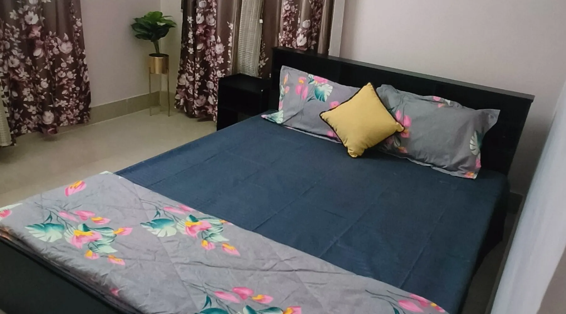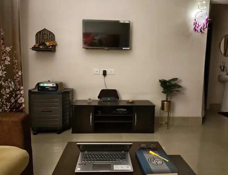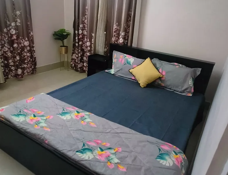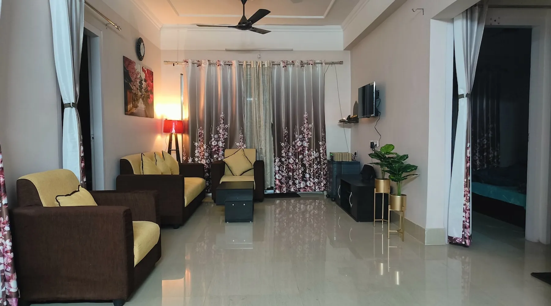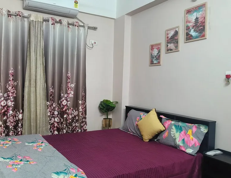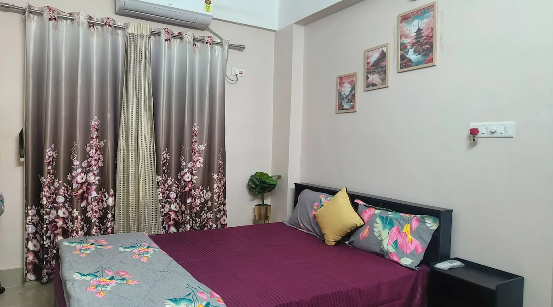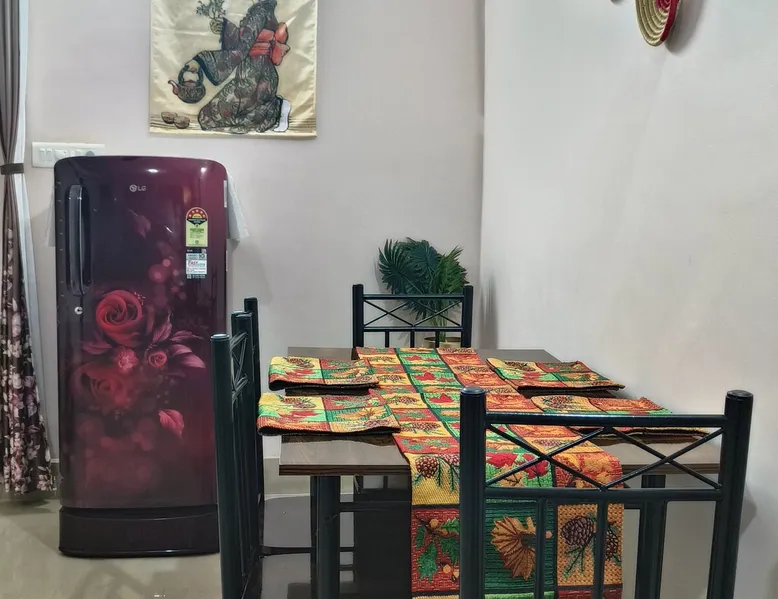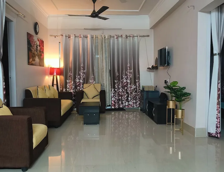 Experience the warmth of home in our cozy Airbnb getaway. Our space is curated to envelop you in a feeling of belonging. From family dinners to weekend brunches, every moment promises the comfort of a true home 'away-from-home' experience! The space -One ac master bedroom with attached bathroom, wardrobe with full length mirror, bedside table and queen size bed. -One non-ac bedroom with bedside table, dressing table with full length mirror, clothes rack and queen size bed. -Large hall room with sofa set, dining table, TV cabinet, coffee table, shoe rack, refrigerator and attached balcony. Second washroom is also attached to the hallroom. -Fully equipped modular kitchen with water purifier, chimney and all kitchen equipments and utensils. - Free Wifi and Free Parking available