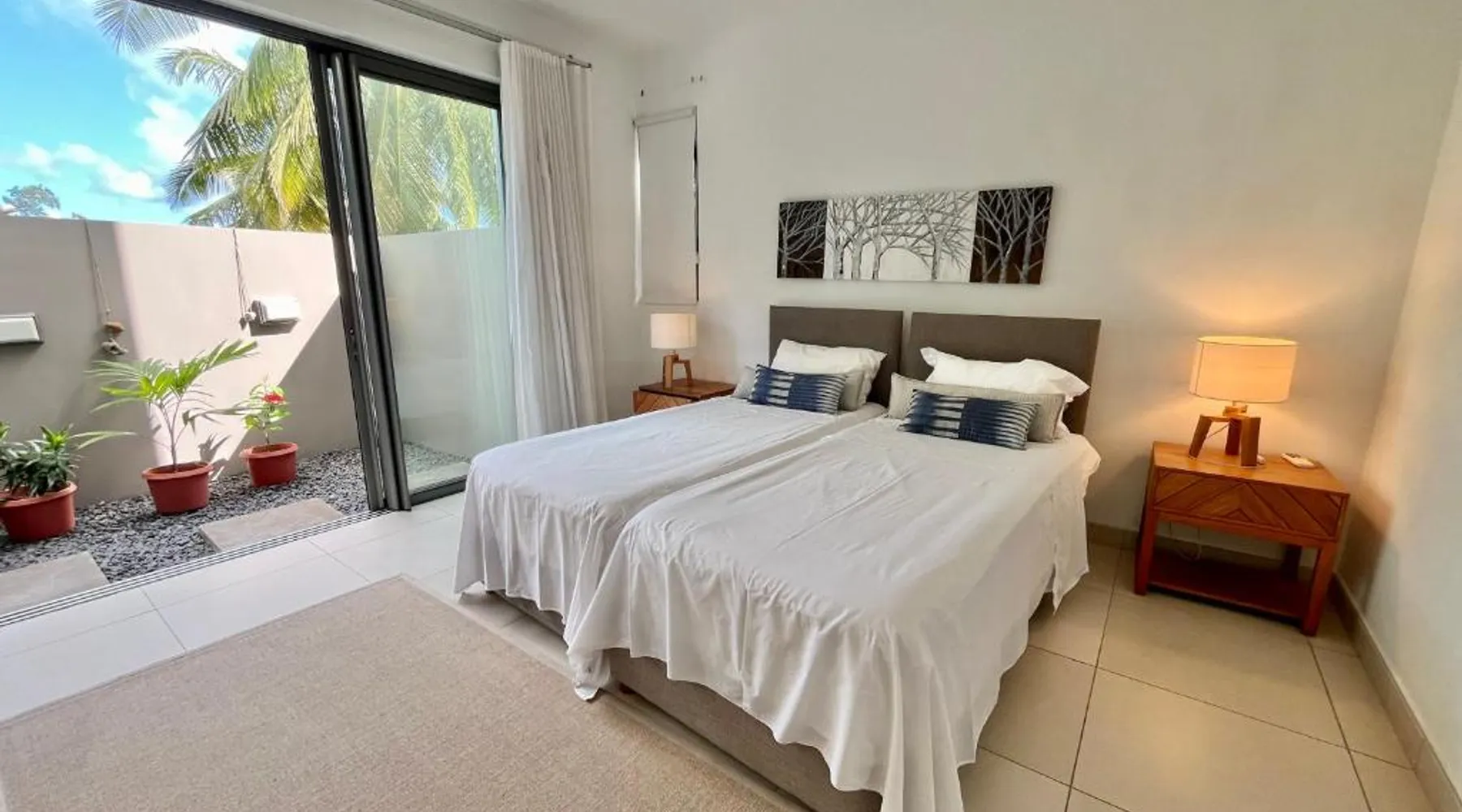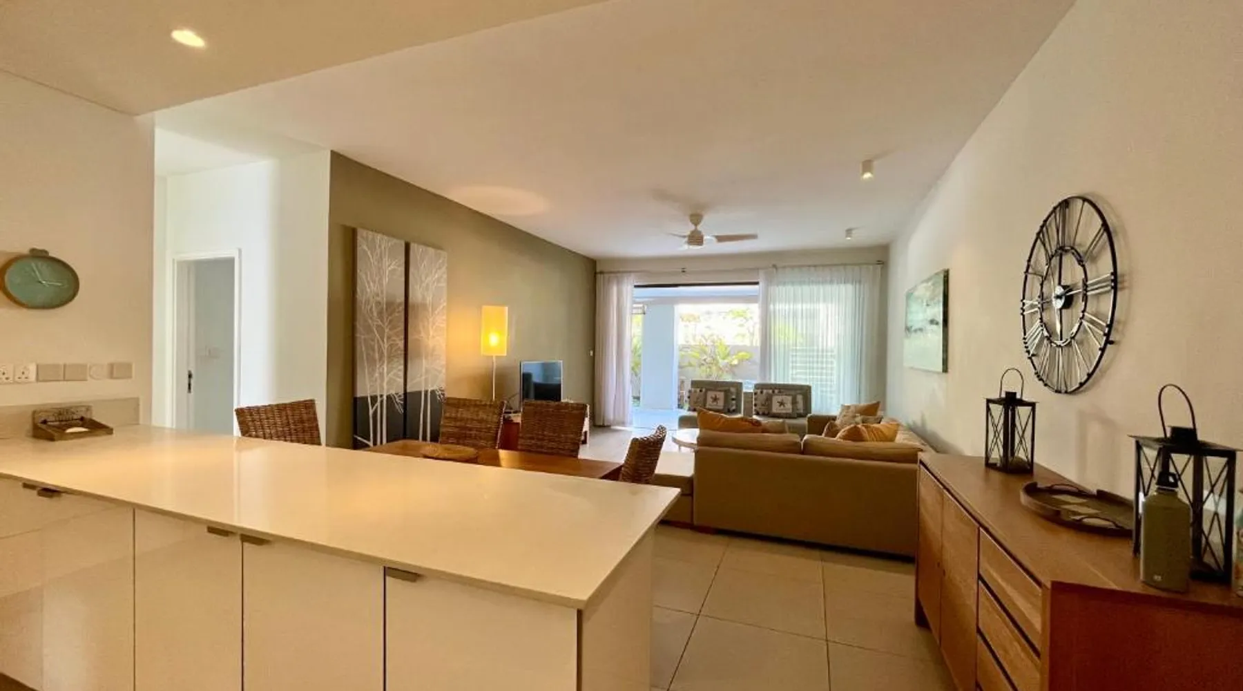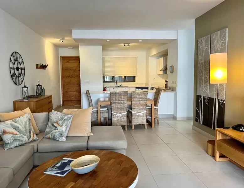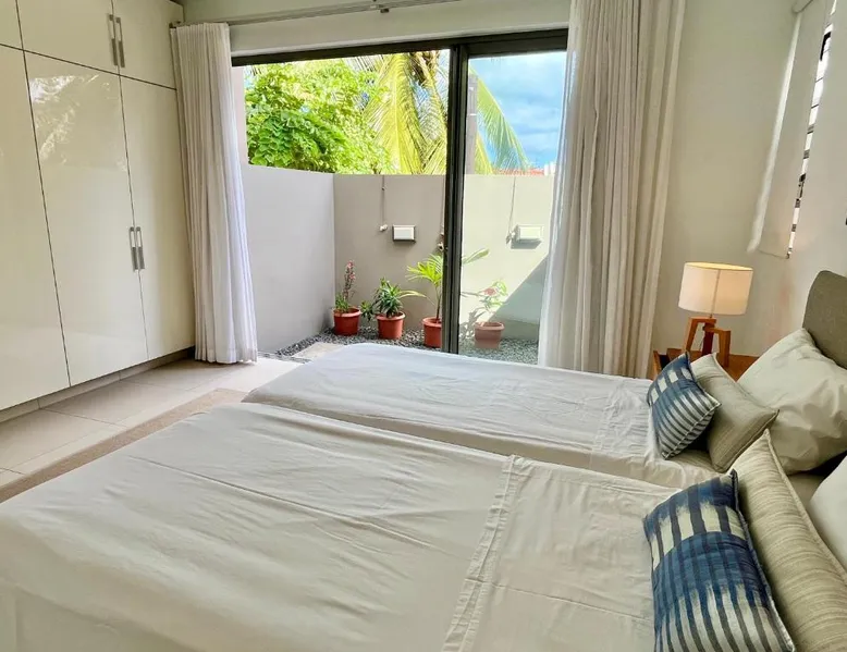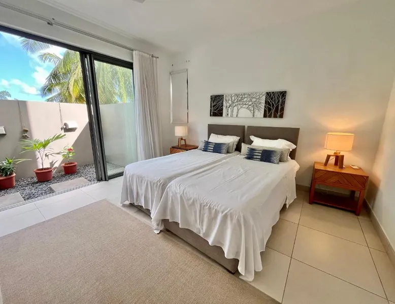 Spacious Accommodations: Coastal apartment in Cap Malheureux offers two bedrooms and two bathrooms with a living room. The ground-floor unit features a terrace, garden views, and a private beach area. Exceptional Facilities: Guests enjoy an infinity swimming pool, a lush garden, and a terrace. Free WiFi is available throughout the property. Additional amenities include air-conditioning, a washing machine, and a fully equipped kitchen. Prime Location: Located 46 mi from Sir Seewoosagur Ramgoolam Airport, the apartment is a 2-minute walk from Bain Boeuf Beach. Nearby attractions include Sir Seewoosagur Ramgoolam Botanical Garden and Port in Port Louis, each 12 mi away. Activities and Surroundings: Scuba diving opportunities enhance the coastal experience. The surrounding area offers various activities such as snorkeling, fishing, and kayaking. The infinity pool is the standout feature of this apartment. This spacious apartment features 1 living room, 2 separate bedrooms and 2 bathrooms with a shower. The well-equipped kitchen has a stovetop, a refrigerator, a dishwasher and an oven. The air-conditioned apartment features a flat-screen TV with satellite channels, a washing machine, a seating area, a dining area as well as garden views. The unit has 3 beds.
