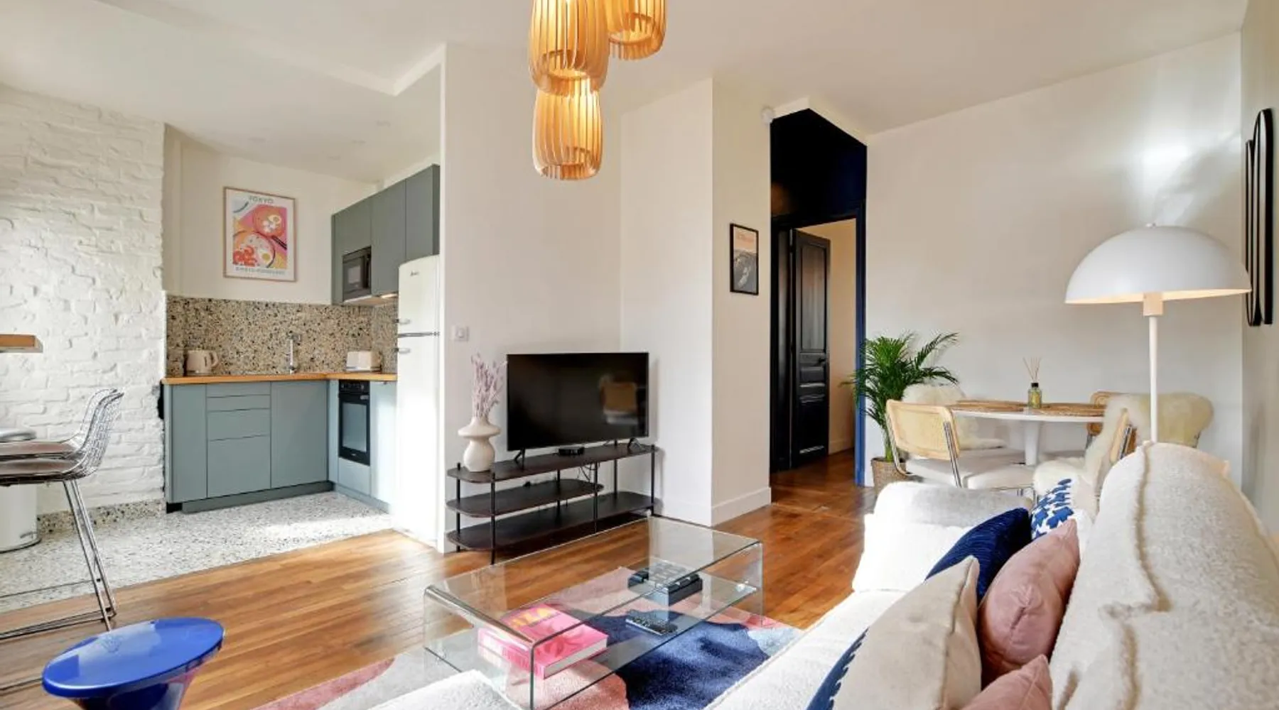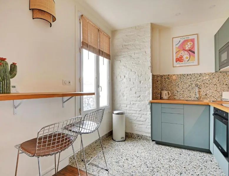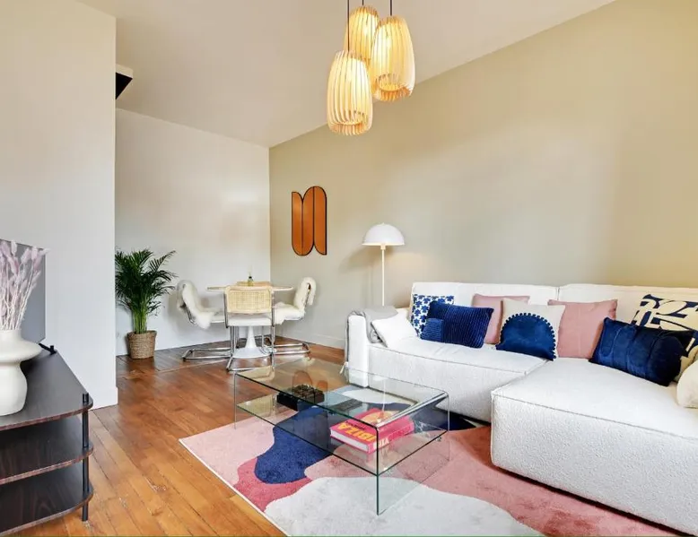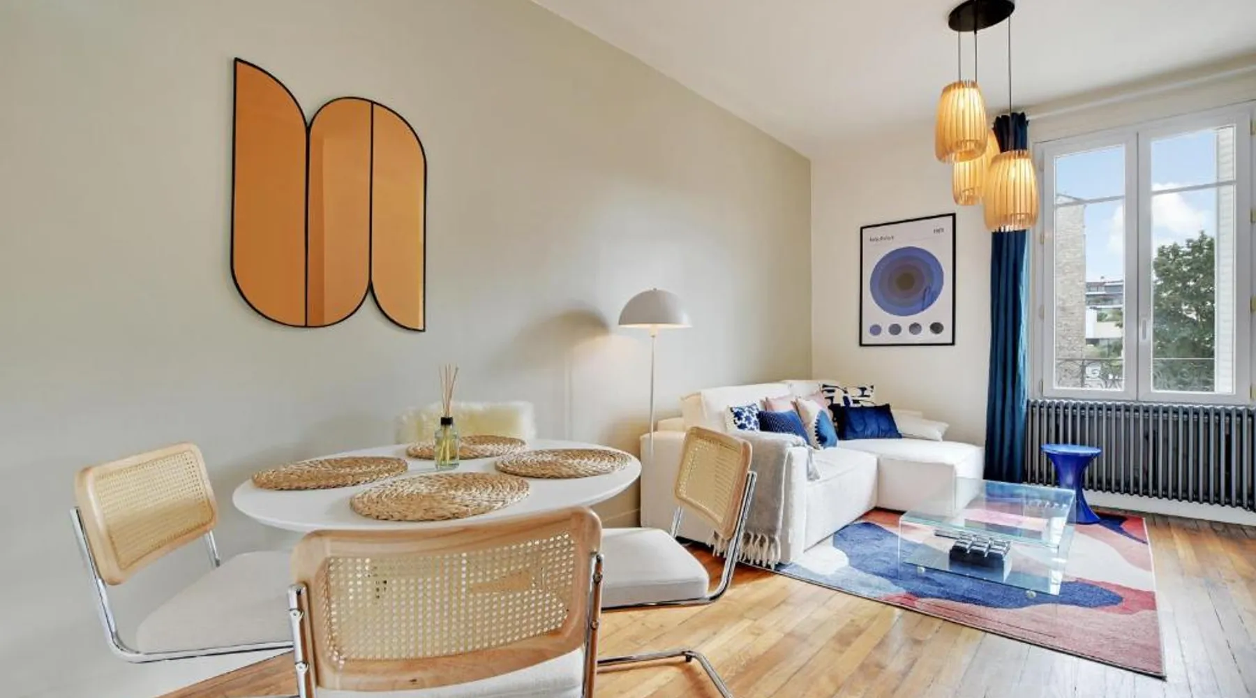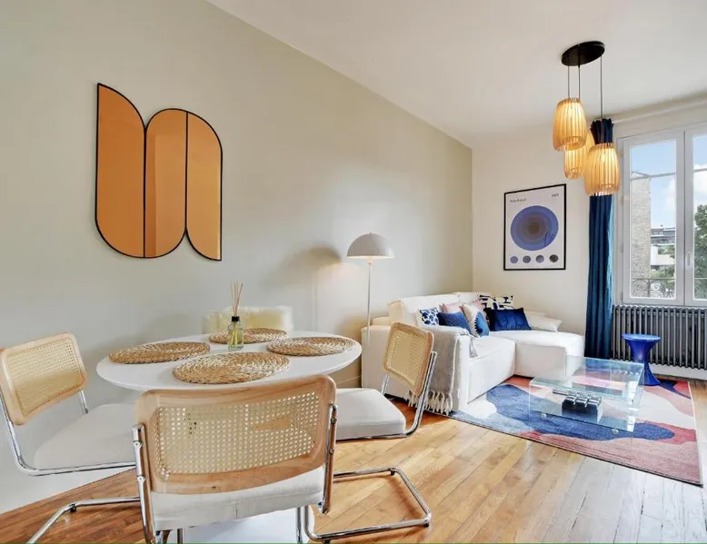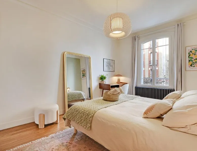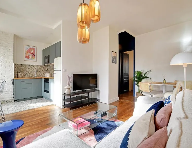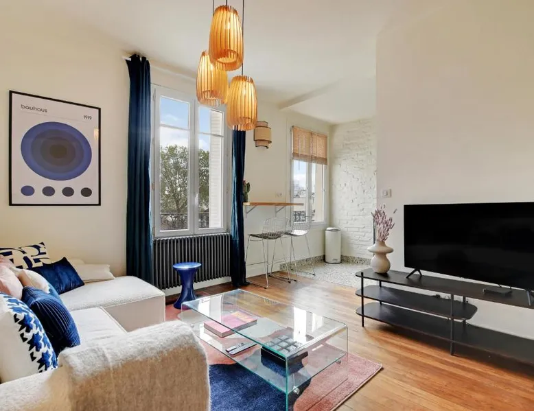 Comfortable Accommodations: Luxury Cocon in Boulogne-Billancourt offers a one-bedroom apartment with a private entrance. The property features family rooms, parquet floors, and a dining area. Modern Amenities: Guests enjoy free WiFi, a kitchenette, washing machine, and streaming services. Additional amenities include a work desk, dishwasher, and microwave. Prime Location: Located 14 mi from Paris Orly Airport, the apartment is a 19-minute walk from Parc des Princes. Nearby attractions include the Eiffel Tower (3.1 mi) and Rodin Museum (5 mi). Guest Satisfaction: Highly rated for its convenient location and room comfort, Luxury Cocon ensures a pleasant stay. Boasting a private entrance, this apartment comes with a kitchen, 1 bedroom and 1 bathroom with a walk-in shower and a hairdryer. Guests can make meals in the kitchen that features a stovetop, a refrigerator, a dishwasher and kitchenware. The apartment features a flat-screen TV with streaming services, a washing machine, a tea and coffee maker, a dining area as well as garden views. The unit has 1 bed.