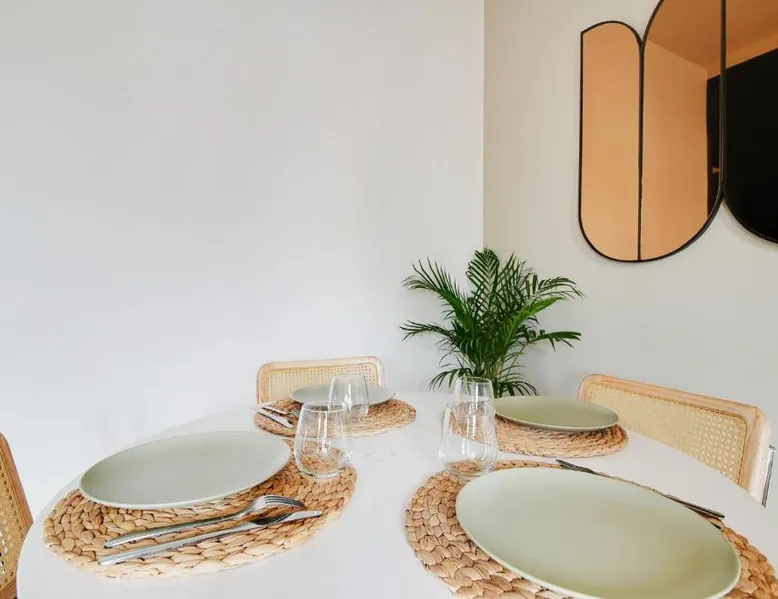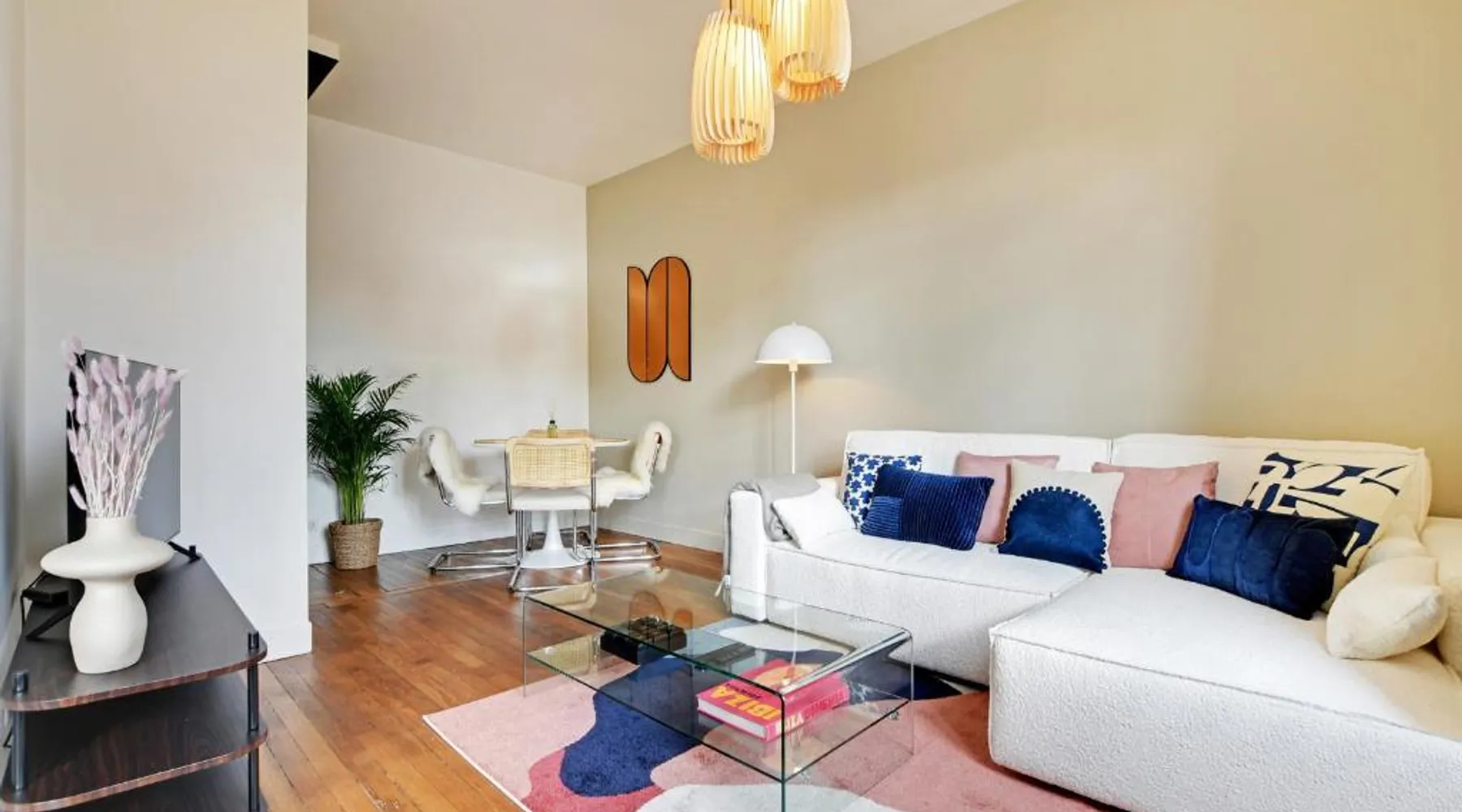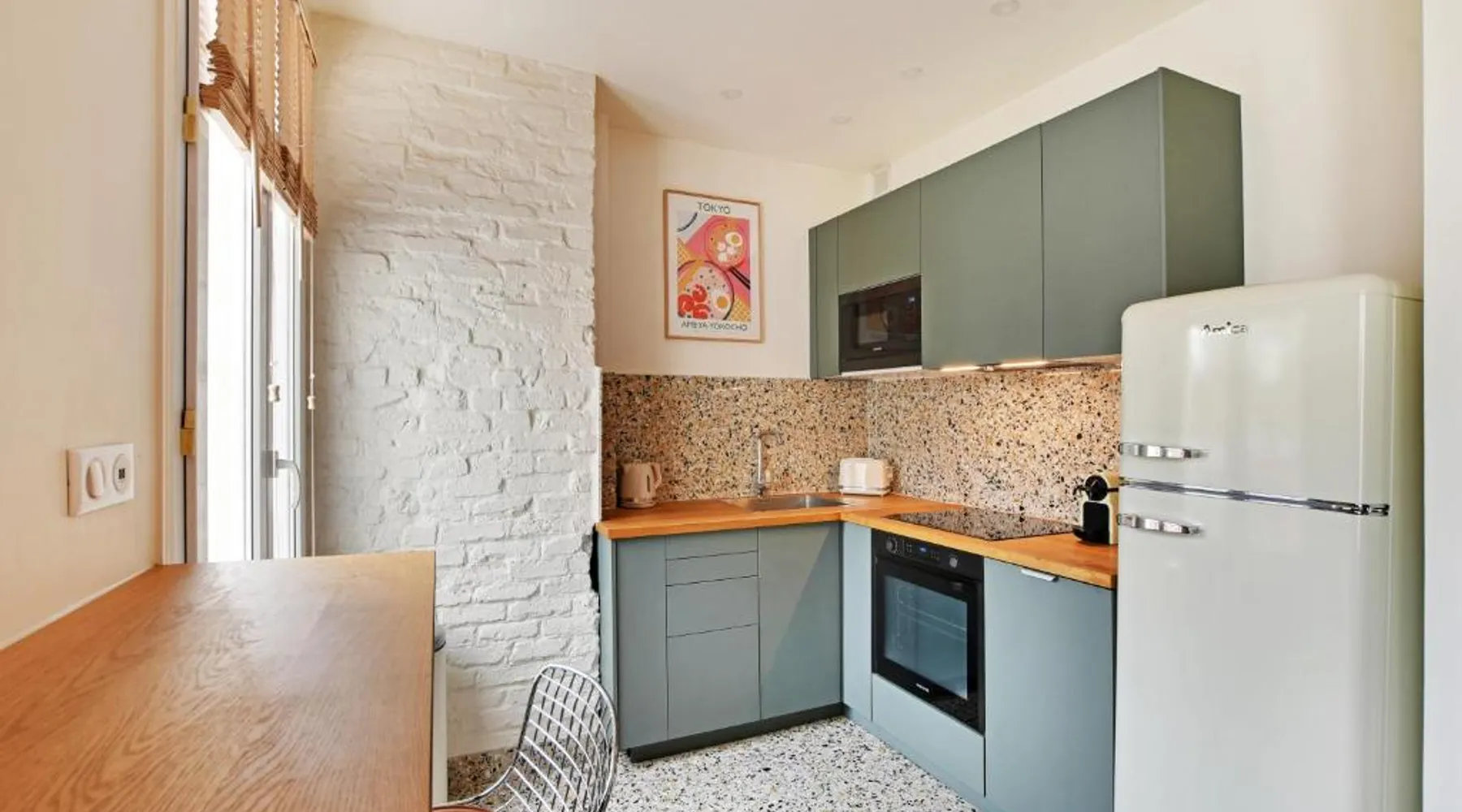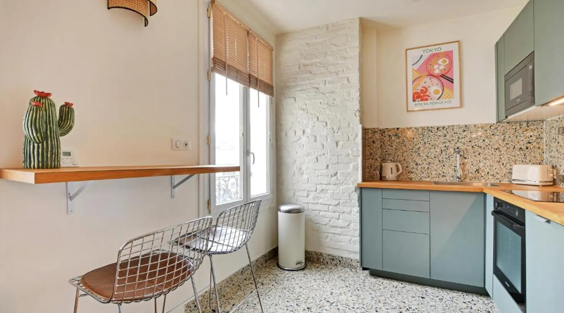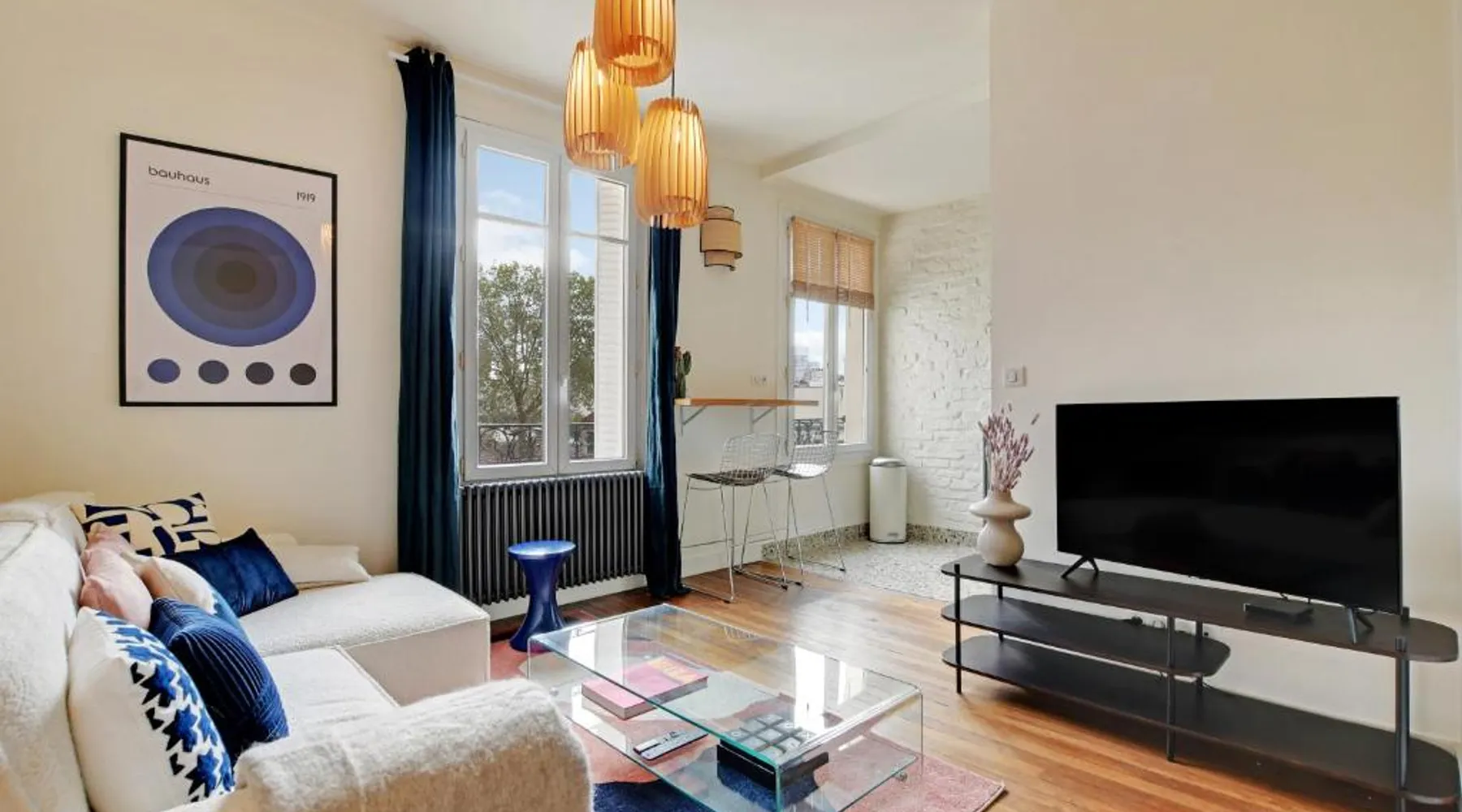 Comfortable Accommodations: Luxury Cocon in Boulogne-Billancourt offers a one-bedroom apartment with a private entrance. The property features family rooms, parquet floors, and a dining area. Modern Amenities: Guests enjoy free WiFi, a kitchenette, washing machine, and streaming services. Additional amenities include a work desk, dishwasher, and microwave. Prime Location: Located 14 mi from Paris Orly Airport, the apartment is a 19-minute walk from Parc des Princes. Nearby attractions include the Eiffel Tower (3.1 mi) and Rodin Museum (5 mi). Guest Satisfaction: Highly rated for its convenient location and room comfort, Luxury Cocon ensures a pleasant stay. Boasting a private entrance, this apartment comes with a kitchen, 1 bedroom and 1 bathroom with a walk-in shower and a hairdryer. Guests can make meals in the kitchen that features a stovetop, a refrigerator, a dishwasher and kitchenware. The apartment features a flat-screen TV with streaming services, a washing machine, a tea and coffee maker, a dining area as well as garden views. The unit has 1 bed.