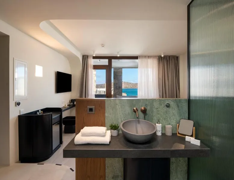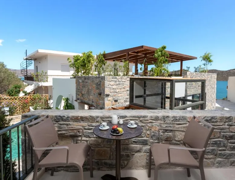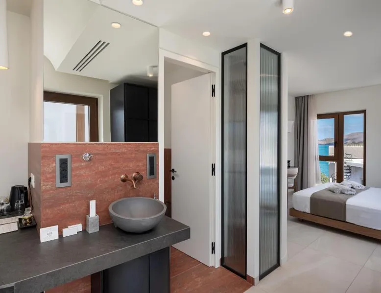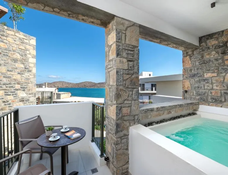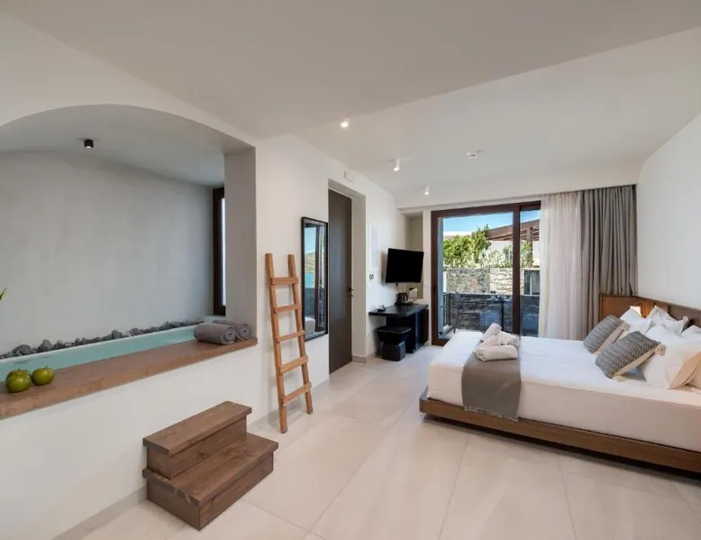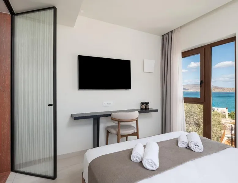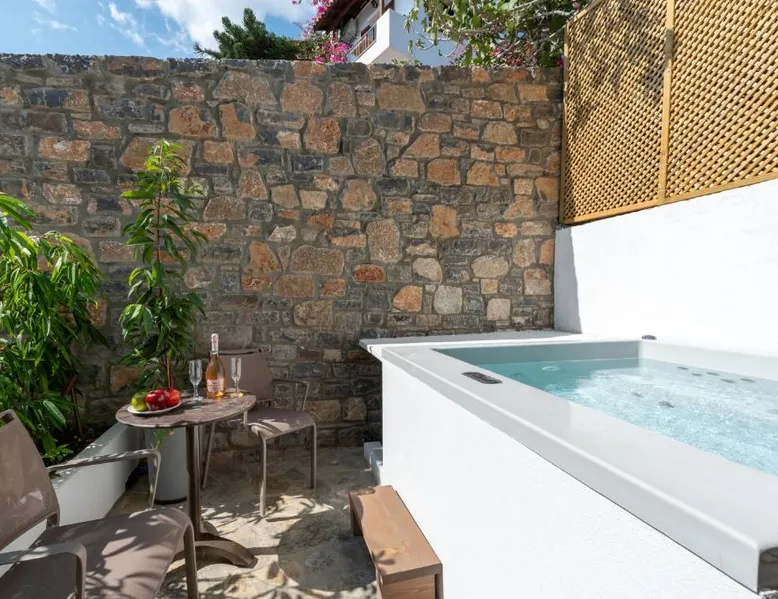 Comfortable Accommodations: Elounda Stories Boutique Hotel in Schisma Elountas offers spacious rooms with air-conditioning, balconies, and private bathrooms. Each room includes a tea and coffee maker, refrigerator, and soundproofing for a relaxing stay. Exceptional Facilities: Guests can enjoy a sun terrace, bar, seasonal outdoor swimming pool, and free WiFi. Additional amenities include a spa bath, pool views, and a terrace, ensuring a pleasant environment. Convenient Location: Located 40 mi from Heraklion International Airport, the hotel is a 15-minute walk from Elounda Beach. Nearby attractions include Lake Voulismeni (6.2 mi) and Agios Nikolaos Port (8.1 mi). Free private parking is available. Guest Satisfaction: Highly rated for its attentive staff, spacious rooms, and comfortable accommodations, the hotel provides excellent service support and a welcoming atmosphere. Guests will have a special experience as this double room offers a spa bath. This air-conditioned double room includes a flat-screen TV with cable channels, a private bathroom as well as a terrace with sea views. The unit offers 1 bed.
