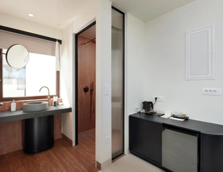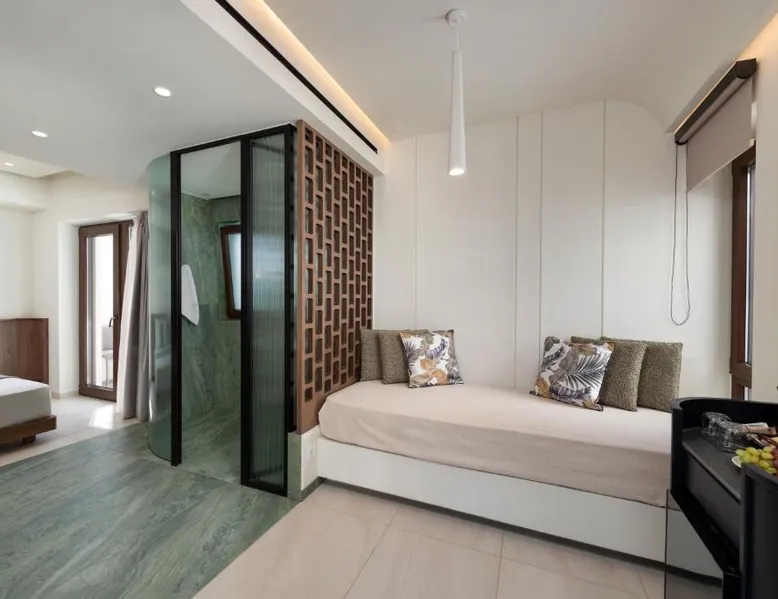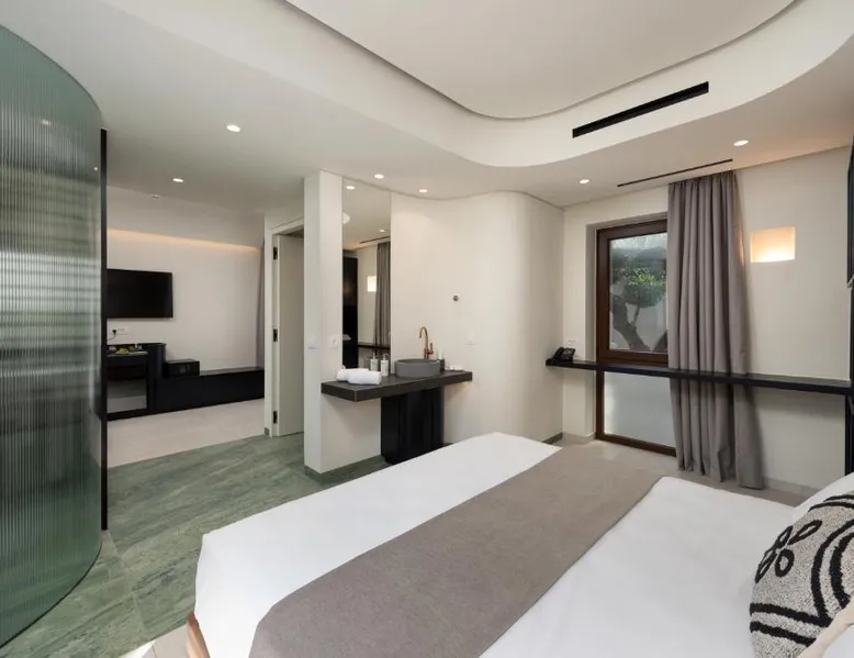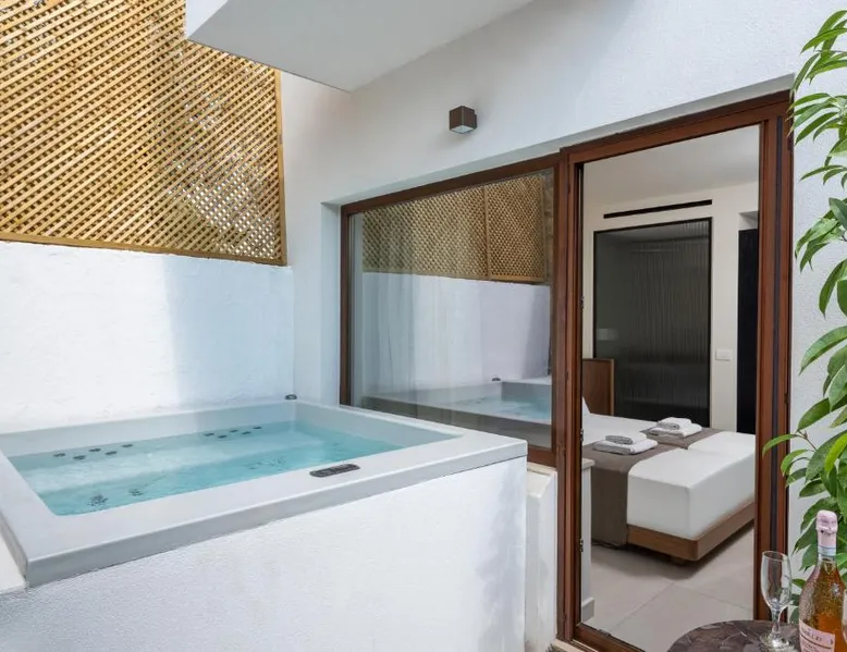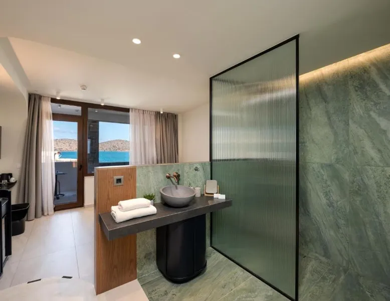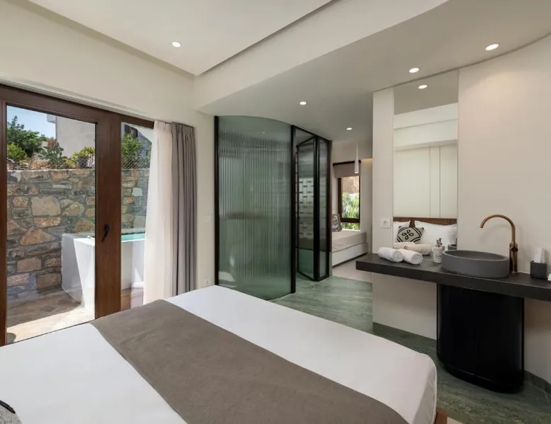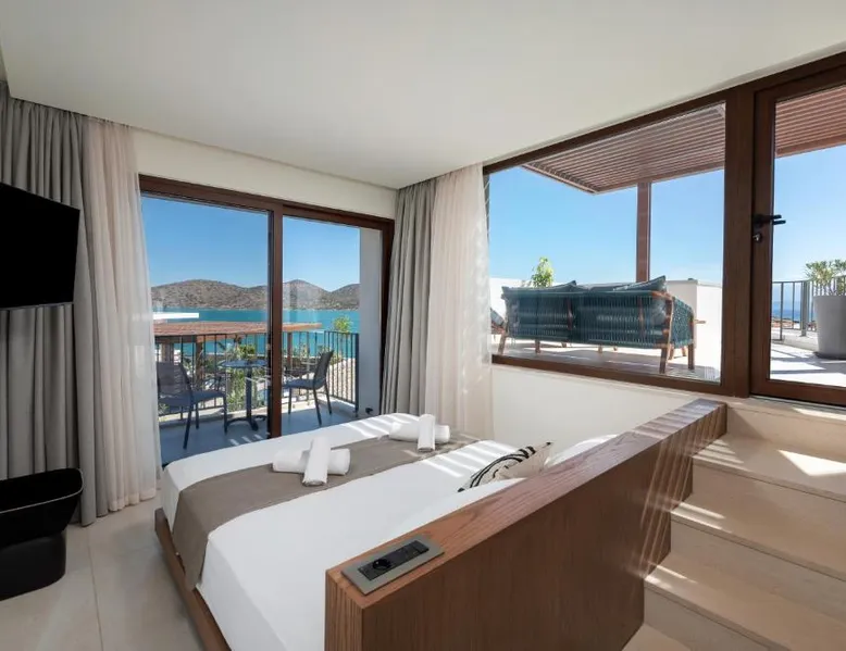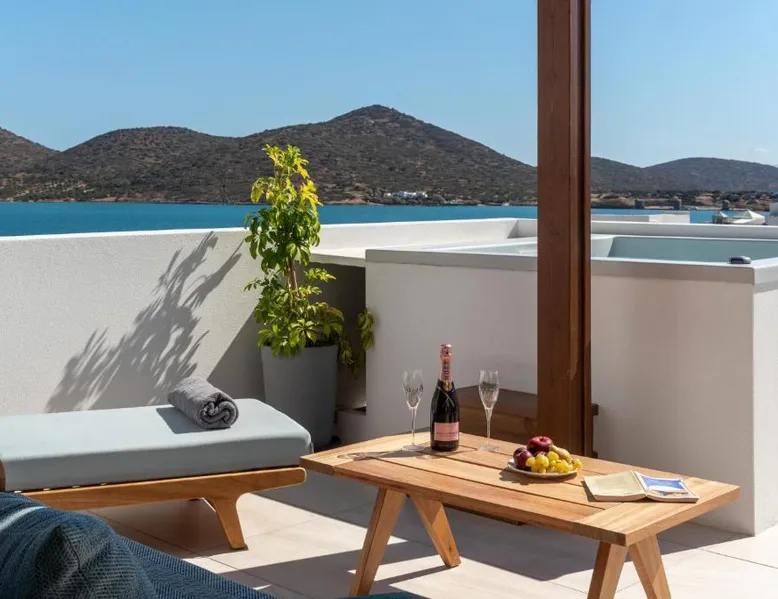 Comfortable Accommodations: Elounda Stories Boutique Hotel in Schisma Elountas offers spacious rooms with air-conditioning, balconies, and private bathrooms. Each room includes a tea and coffee maker, refrigerator, and soundproofing for a relaxing stay. Exceptional Facilities: Guests can enjoy a sun terrace, bar, seasonal outdoor swimming pool, and free WiFi. Additional amenities include a spa bath, pool views, and a terrace, ensuring a pleasant environment. Convenient Location: Located 40 mi from Heraklion International Airport, the hotel is a 15-minute walk from Elounda Beach. Nearby attractions include Lake Voulismeni (6.2 mi) and Agios Nikolaos Port (8.1 mi). Free private parking is available. Guest Satisfaction: Highly rated for its attentive staff, spacious rooms, and comfortable accommodations, the hotel provides excellent service support and a welcoming atmosphere. Guests will have a special experience as this double room offers a spa bath. This air-conditioned double room includes a flat-screen TV with cable channels, a private bathroom as well as a terrace with sea views. The unit offers 1 bed.