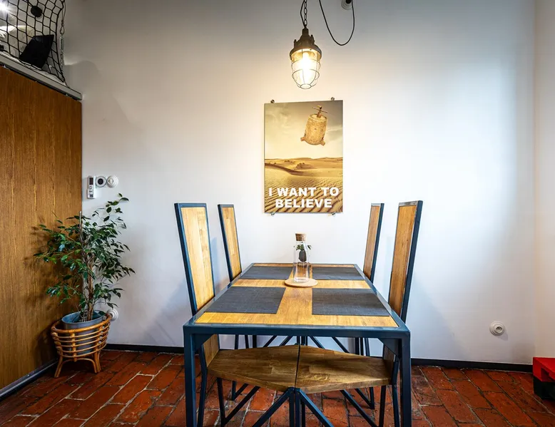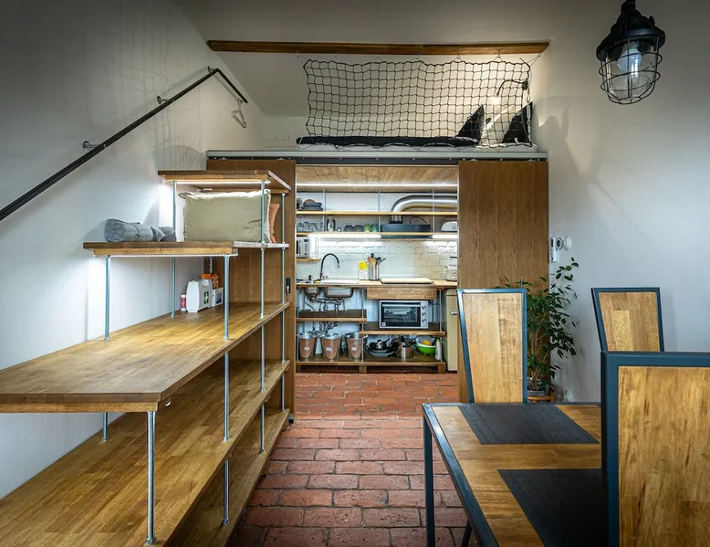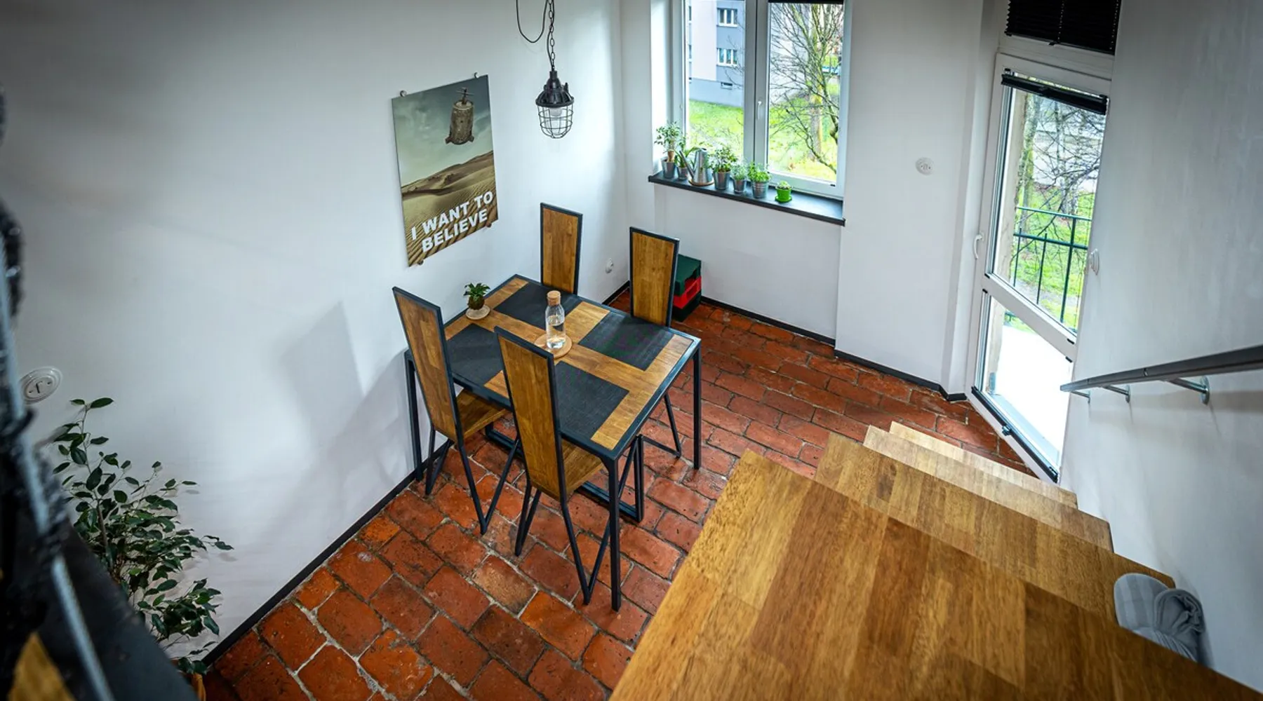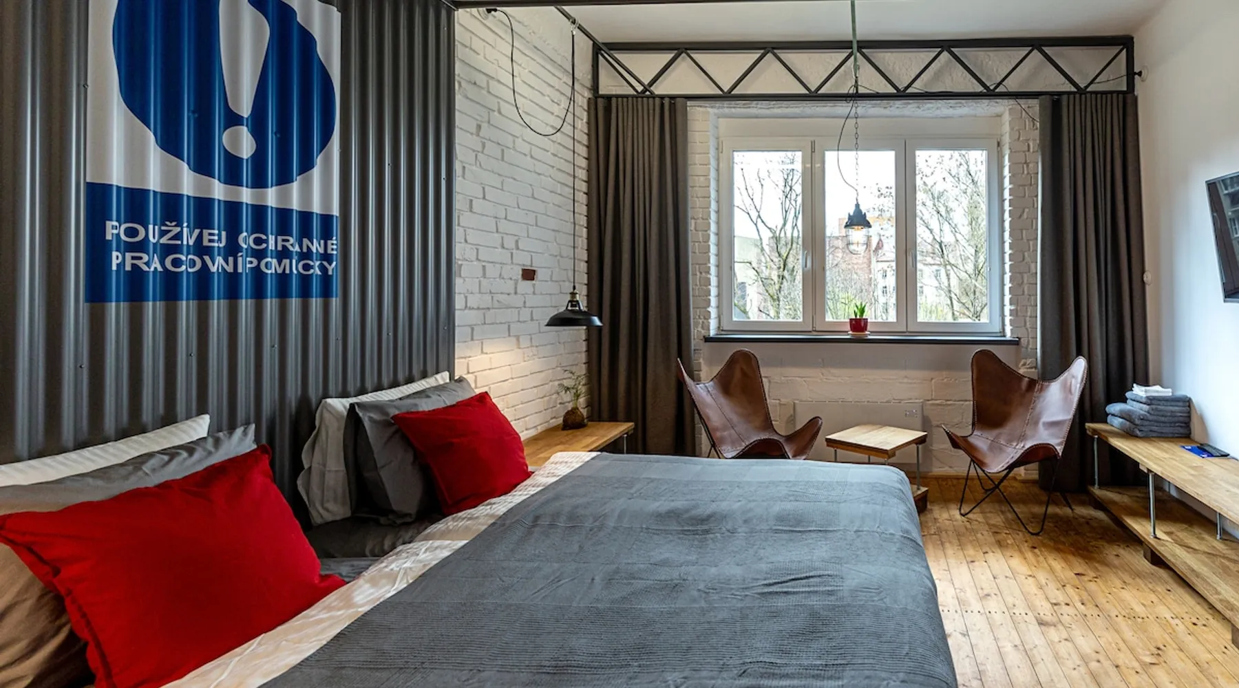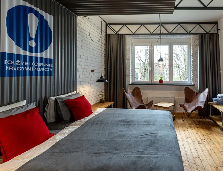 The accommodation offers a unique industrial interior and full-fledged amenities. There is everything you need for a short or longer stay. The apartment is located near the historical center of Ostrava. Just two public transport stops or a ten-minute walk to the iconic New Town Hall tower, a minute's walk away from the legendary beer pub Kurnik Šopa, also the main train station is two stops or a ten-minute walk away. The apartment has a unique lighting system and design elements, including a chain dressing room. There is a permonik at the entrance. The space The accommodation offers two bedrooms (one king size bed, one full double bed on the elevated gallery), a fully equipped kitchen, dining room, balcony, work area, bathroom with shower and toilet, which is separated from the other rooms by a corridor. Guest access The entire apartment is available to guests - two bedrooms, kitchen, dining room and bathroom.