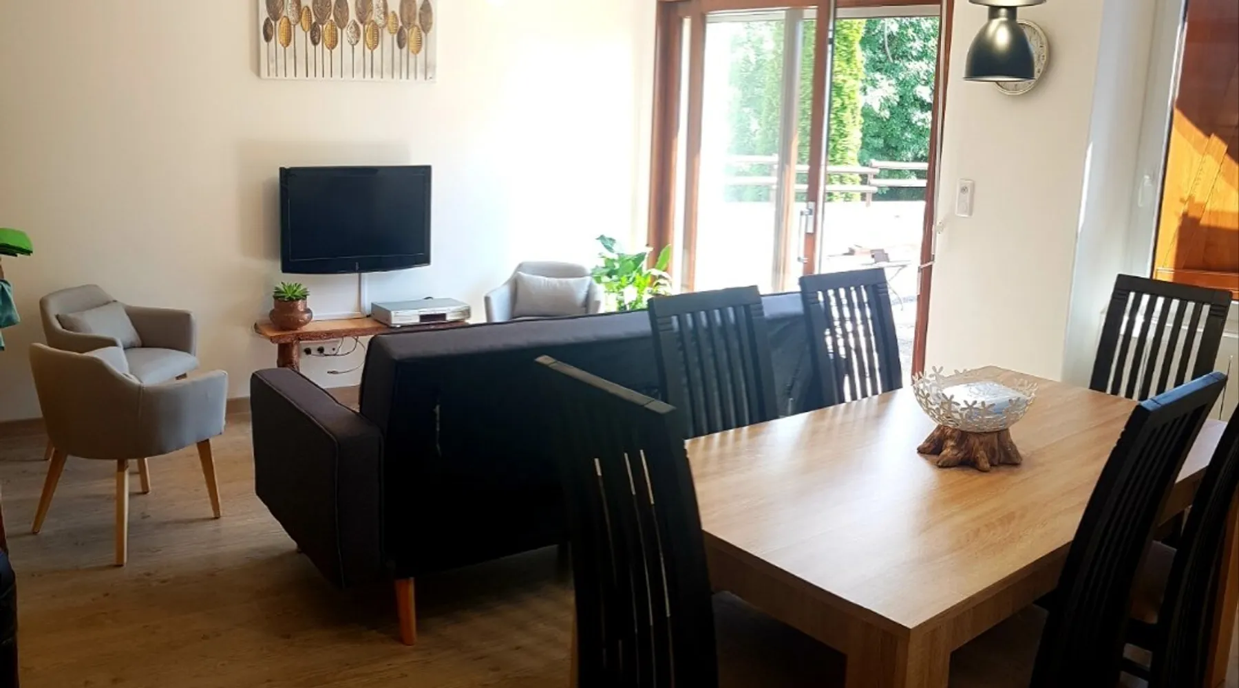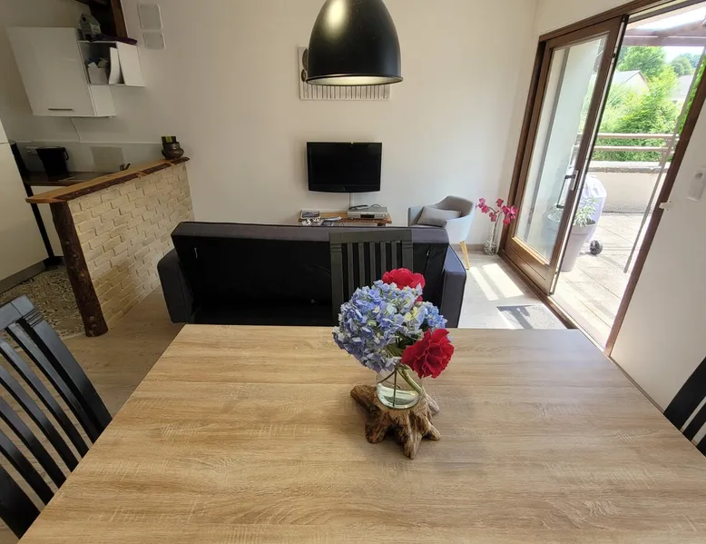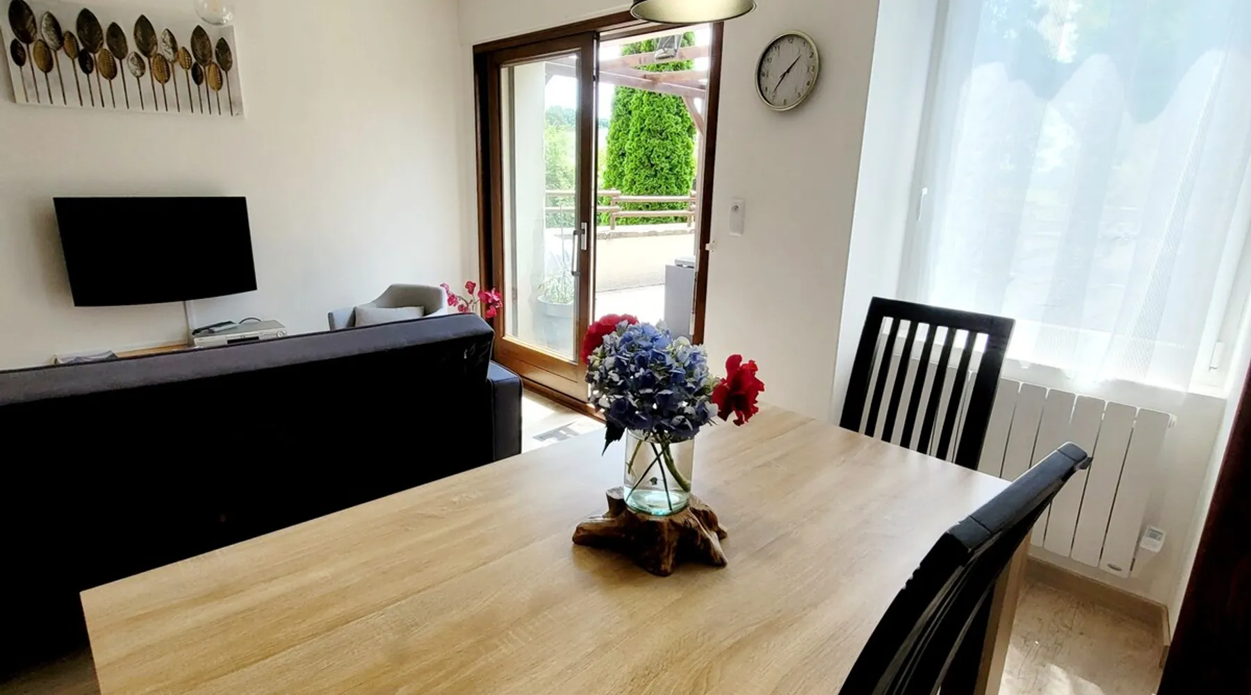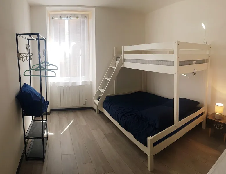 Have fun with the whole family in this comfortable home! Convenient location, approx. 15 minutes from A89 motorway exits exit N°24 or N°25 100m away you have the shops of Le Bourg: pharmacy,bar,tobacco, bakery,grocery store, post office... supermarket 8 km away La Bourboule is 20 minutes away Mont Dore Sancy is less than 30 minutes away Vulcania and Puy-de-Dôme is about 50 minutes away Cleaning is to be done before your departure if you do not take the package . The space Countryside VACATION APARTMENT, CLASSIFIED FURNISHED TOURIST 4* and GITE DE FRANCE 2 ears in a family house with garden of 2500m2 available to children and parents with swing, sandbox(depending on season), ping pong table, badminton, basketball basket, garden furniture ... (depending on the period ) Electric CAR CHARGING STATION (additional charge) Theapartment is upstairs with a private terrace (approx. 35m2) equipped with a garden furniture, a dining area lounge, with charcoal barbecue + plancha on request , equipped kitchen (dishwasher, oven and electric hob, fridge and dishes ) open to the living and dining room, a bathroom (shower +2 sinks), a separate toilet ● 1 st Bedroom: with 1 160x200 safe bed, dressing room ● 2nd Bedroom: 1 90x190 bed, 1 bunk bed with 1 bed downstairs 140x200 and top 90x200 🛏 ALL BEDS ARE FITTED OF MATTRESSES MADE OF SHAPE 🛏 The Rental provided bed linen: duvet cover, cases, fitted sheets, 1 duvet /bed , 2 pillows /pers In the R.D.C you have a washing machine with hanging rack and dryer (free) Baby equipment is available: crib, crib, sunbed, bathtub, highchair, stroller ... on request (free) End of stay CLEANING FEE: €150 HEATING PACKAGE: 70€ per stay TOILET LINEN PACKAGE:7€/PERS Guest access - Electric or HYBRID vehicle CHARGING STATION: Access with a card and PAID SERVICE - Access to the garden with living room , outdoor games, barbecue on the terrace - Access to the ground floor with washing machine, dryer - FREE WIFI - parking for your vehicle Other things to note PETS NOT ALLOWED - Cleaning is required before your departure if you have not taken the package - Toilet linen rental on request: €7 per person for the stay - Provided in rental: Sheet cover, 2 pillows / person+cases , duvet /bed +cover - Heating package: 70€ per week - Cleaning fee on request: €150