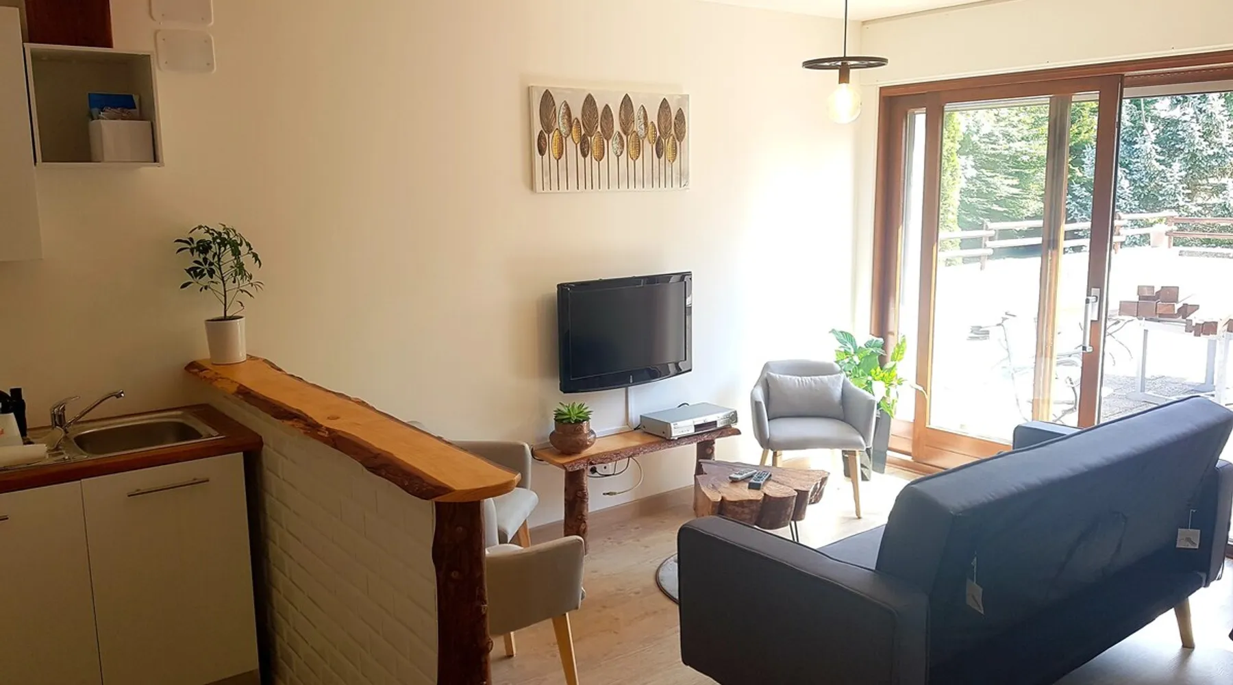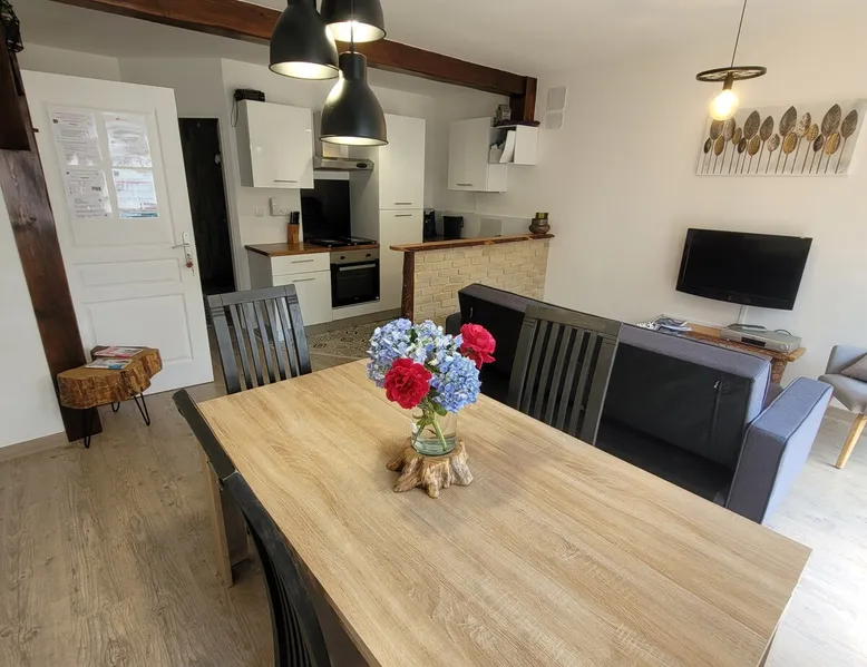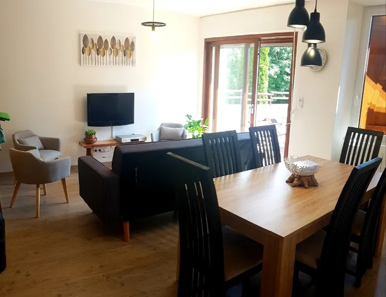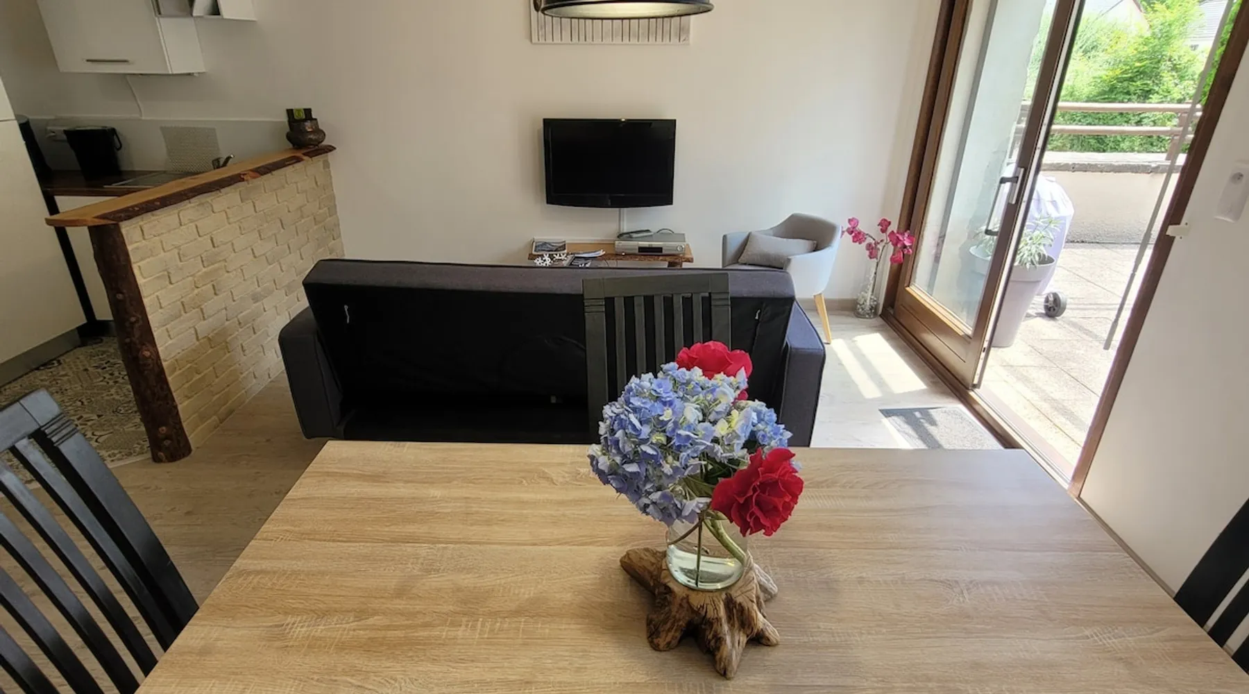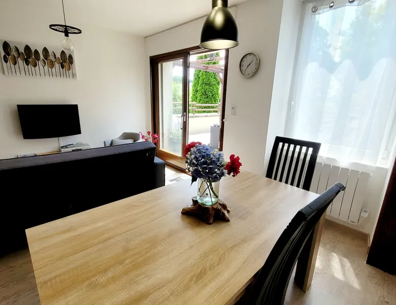 Have fun with the whole family in this comfortable home! Convenient location, approx. 15 minutes from A89 motorway exits exit N°24 or N°25 100m away you have the shops of Le Bourg: pharmacy,bar,tobacco, bakery,grocery store, post office... supermarket 8 km away La Bourboule is 20 minutes away Mont Dore Sancy is less than 30 minutes away Vulcania and Puy-de-Dôme is about 50 minutes away Cleaning is to be done before your departure if you do not take the package . The space Countryside VACATION APARTMENT, CLASSIFIED FURNISHED TOURIST 4* and GITE DE FRANCE 2 ears in a family house with garden of 2500m2 available to children and parents with swing, sandbox(depending on season), ping pong table, badminton, basketball basket, garden furniture ... (depending on the period ) Electric CAR CHARGING STATION (additional charge) Theapartment is upstairs with a private terrace (approx. 35m2) equipped with a garden furniture, a dining area lounge, with charcoal barbecue + plancha on request , equipped kitchen (dishwasher, oven and electric hob, fridge and dishes ) open to the living and dining room, a bathroom (shower +2 sinks), a separate toilet ● 1 st Bedroom: with 1 160x200 safe bed, dressing room ● 2nd Bedroom: 1 90x190 bed, 1 bunk bed with 1 bed downstairs 140x200 and top 90x200 🛏 ALL BEDS ARE FITTED OF MATTRESSES MADE OF SHAPE 🛏 The Rental provided bed linen: duvet cover, cases, fitted sheets, 1 duvet /bed , 2 pillows /pers In the R.D.C you have a washing machine with hanging rack and dryer (free) Baby equipment is available: crib, crib, sunbed, bathtub, highchair, stroller ... on request (free) End of stay CLEANING FEE: €150 HEATING PACKAGE: 70€ per stay TOILET LINEN PACKAGE:7€/PERS Guest access - Electric or HYBRID vehicle CHARGING STATION: Access with a card and PAID SERVICE - Access to the garden with living room , outdoor games, barbecue on the terrace - Access to the ground floor with washing machine, dryer - FREE WIFI - parking for your vehicle Other things to note PETS NOT ALLOWED - Cleaning is required before your departure if you have not taken the package - Toilet linen rental on request: €7 per person for the stay - Provided in rental: Sheet cover, 2 pillows / person+cases , duvet /bed +cover - Heating package: 70€ per week - Cleaning fee on request: €150