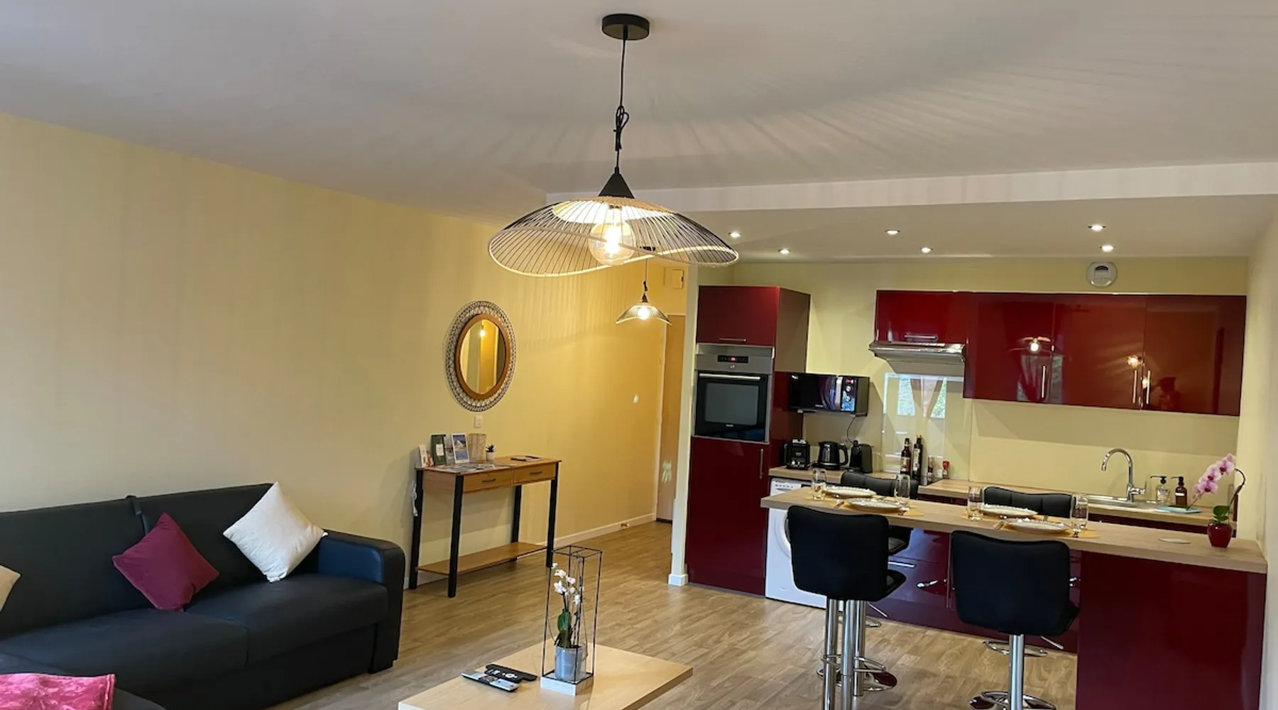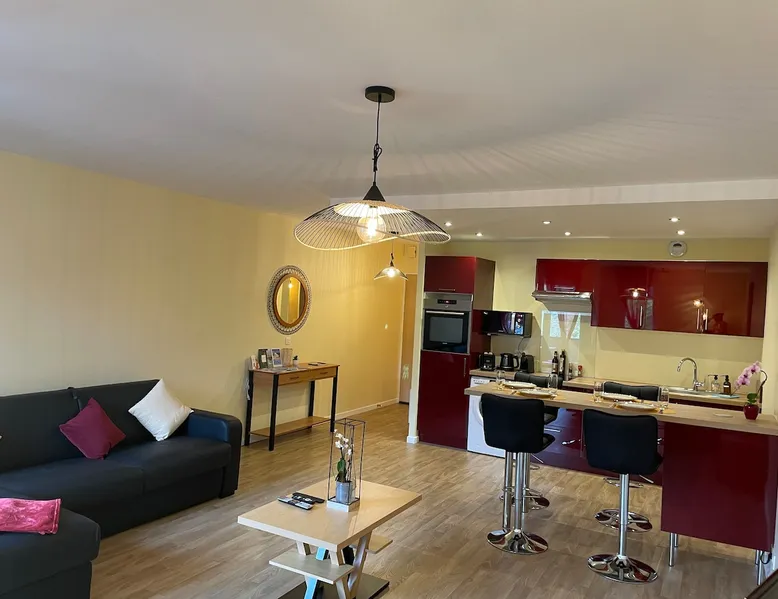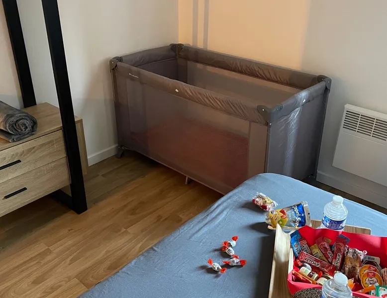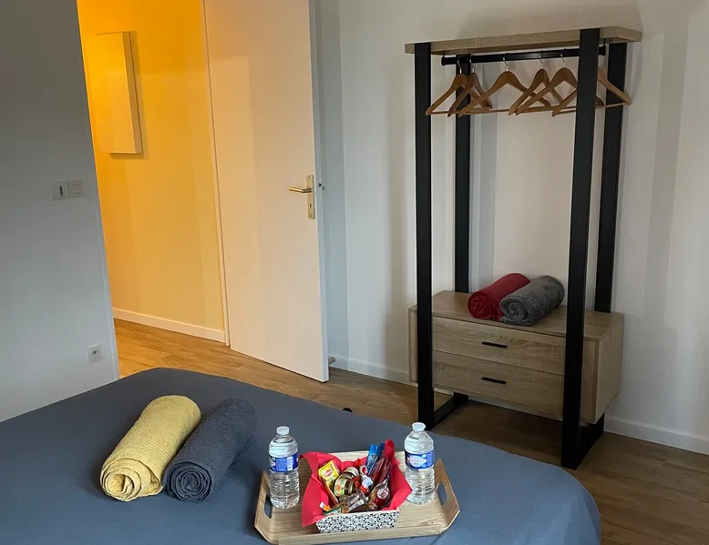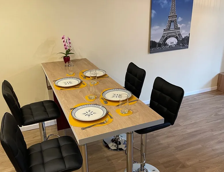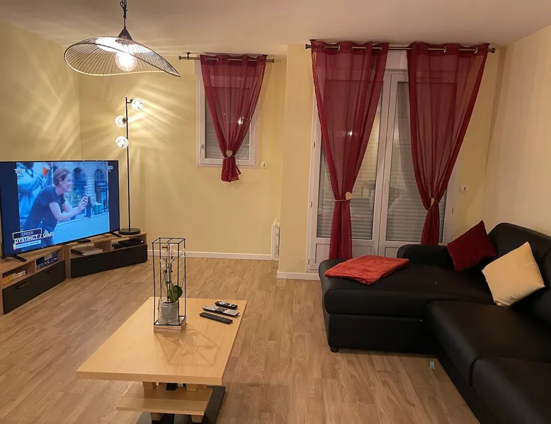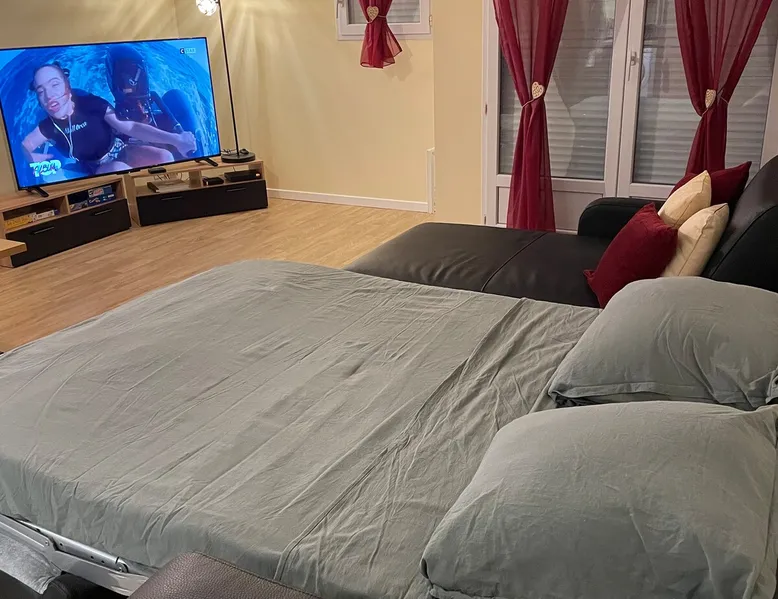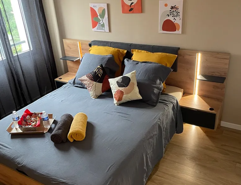 Full accommodation for 4 people including a bedroom, a living room with sofa bed, a kitchen and shower room. Free secure parking. Located in the heart of Vaires sur Marne, 50 m from the train station and the nautical stadium within a 10-min walk as well as the Torcy leisure center, accessing Disney or Paris 20 min by car. Ideally located in the heart of the shops with everything you need for your stay, a pizzeria, Carrefour MKT, pharmacies, bakeries, tobacco, restaurants... The space Welcome to our very well-equipped city center accommodation, ideal for adults and children. - Accommodation located 50 m from Vaires-sur-Marne train station, a parking space made available to you free of charge in the secure condominium. ☑︎ Access to the building by door secured by digicode, badge and Igloohome key box. - 2nd floor with staircase on building B overlooking Rue Jean-Jaurès on the living room side. • Key box for more flexibility. Our 55 square meter apartment is equipped to make your stay as pleasant as possible. - Kitchen opens to living room, equipped ☑︎ Decoder, 160 TV, Internet, ☑︎ Washer/dryer, ☑︎dishwasher, ☑︎ Microwave, ☑︎ Nespresso, ☑︎ Kettle, ☑︎Toaster, ☑︎ Vacuum cleaner ☑︎ Steam iron ☑︎Ironing board ☑︎ board games and books for all ages from 0 to 99 years old. The bedding is new. An express sofa bed with a real mattress is available in the living room for a good night's sleep. Providing you with a moment of pleasure of tasting and refreshment for your arrival. Other things to note Many shops at the foot of the residence: • A convenience store • A bakery • A salmon shop • A tobacco bar • A pizzeria • A bar restaurant • A hairdresser • a pharmacy The city center is lively with several services and shops, access less than 1 min next to the train station. Numerous walks along the Marne are available as well as direct access to the 2024 Olympic Water Cube Guest access The apartment is a stone's throw from the SNCF train station, bus station, all shops. - secure outdoor parking space, available to you free of charge inside the residence. Other things to note - Pets not allowed (due to allergies) - Festive evenings and unauthorized receptions. - No smoking, vaping, e-cigarettes in the house. As far as the train is concerned, we are in zone 5. Paris Visit Passes are available for 1, 2, 3, 4 and 5 days