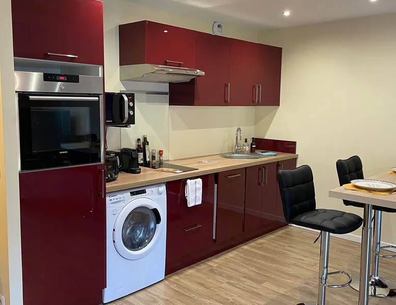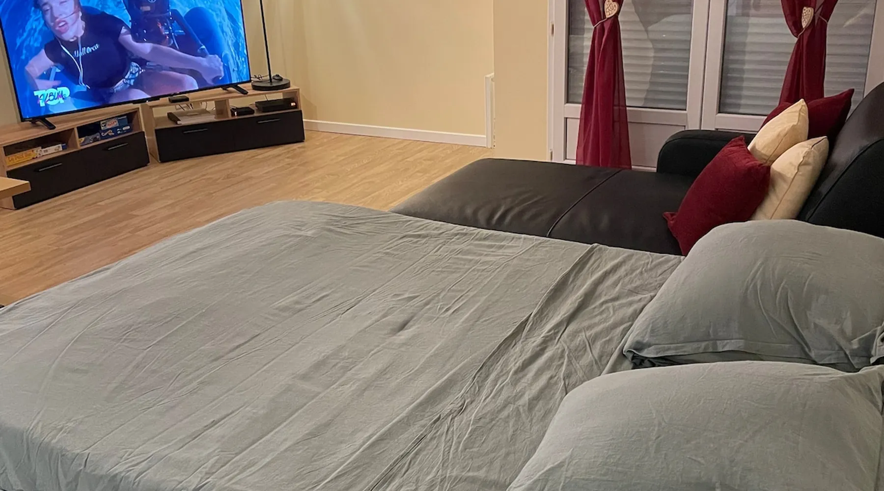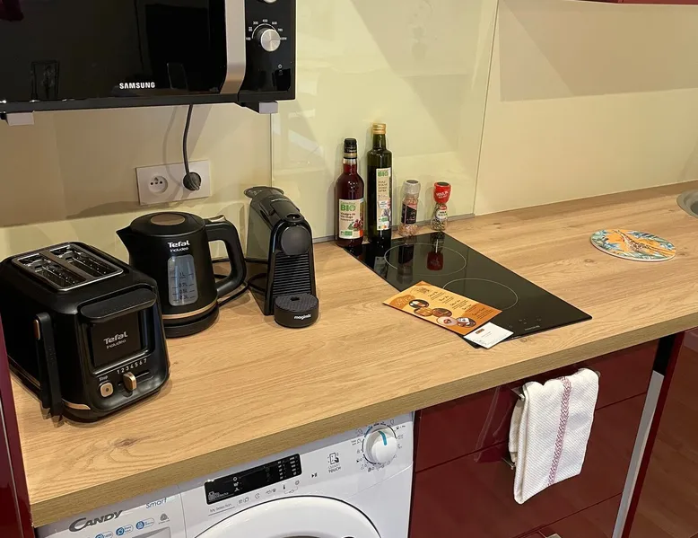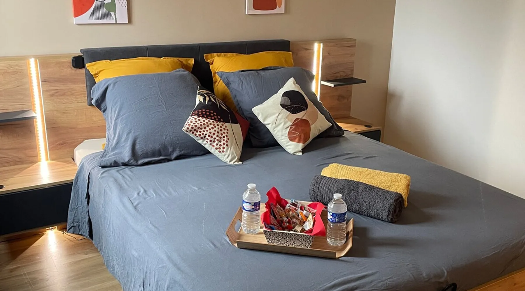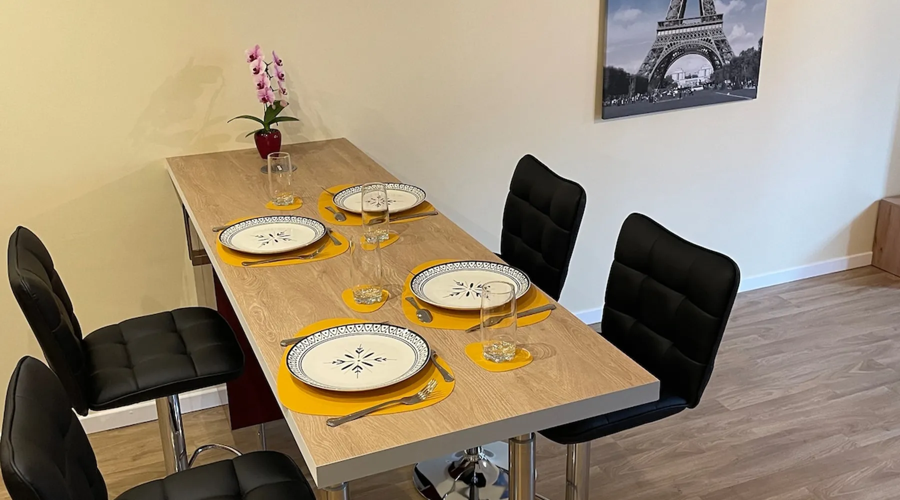 Full accommodation for 4 people including a bedroom, a living room with sofa bed, a kitchen and shower room. Free secure parking. Located in the heart of Vaires sur Marne, 50 m from the train station and the nautical stadium within a 10-min walk as well as the Torcy leisure center, accessing Disney or Paris 20 min by car. Ideally located in the heart of the shops with everything you need for your stay, a pizzeria, Carrefour MKT, pharmacies, bakeries, tobacco, restaurants... The space Welcome to our very well-equipped city center accommodation, ideal for adults and children. - Accommodation located 50 m from Vaires-sur-Marne train station, a parking space made available to you free of charge in the secure condominium. ☑︎ Access to the building by door secured by digicode, badge and Igloohome key box. - 2nd floor with staircase on building B overlooking Rue Jean-Jaurès on the living room side. • Key box for more flexibility. Our 55 square meter apartment is equipped to make your stay as pleasant as possible. - Kitchen opens to living room, equipped ☑︎ Decoder, 160 TV, Internet, ☑︎ Washer/dryer, ☑︎dishwasher, ☑︎ Microwave, ☑︎ Nespresso, ☑︎ Kettle, ☑︎Toaster, ☑︎ Vacuum cleaner ☑︎ Steam iron ☑︎Ironing board ☑︎ board games and books for all ages from 0 to 99 years old. The bedding is new. An express sofa bed with a real mattress is available in the living room for a good night's sleep. Providing you with a moment of pleasure of tasting and refreshment for your arrival. Other things to note Many shops at the foot of the residence: • A convenience store • A bakery • A salmon shop • A tobacco bar • A pizzeria • A bar restaurant • A hairdresser • a pharmacy The city center is lively with several services and shops, access less than 1 min next to the train station. Numerous walks along the Marne are available as well as direct access to the 2024 Olympic Water Cube Guest access The apartment is a stone's throw from the SNCF train station, bus station, all shops. - secure outdoor parking space, available to you free of charge inside the residence. Other things to note - Pets not allowed (due to allergies) - Festive evenings and unauthorized receptions. - No smoking, vaping, e-cigarettes in the house. As far as the train is concerned, we are in zone 5. Paris Visit Passes are available for 1, 2, 3, 4 and 5 days