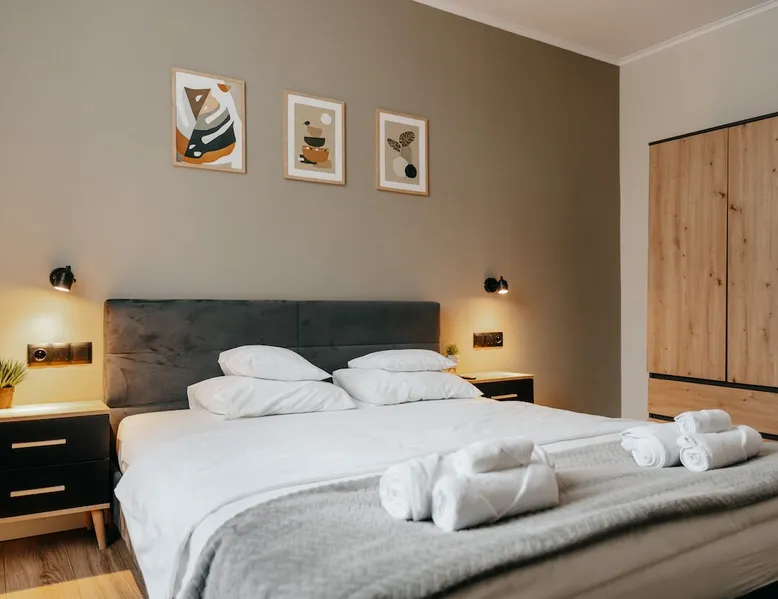 The whole group will enjoy easy access to everything from this centrally located place. The space The whole group will enjoy easy access to everything from this centrally located place. The apartment is a 5-minute walk from the train station, bus station, and the old town. There are restaurants and pubs, a shopping mall in the vicinity. It is also close to museums and sports facilities. The apartment is located in the very center of the city.