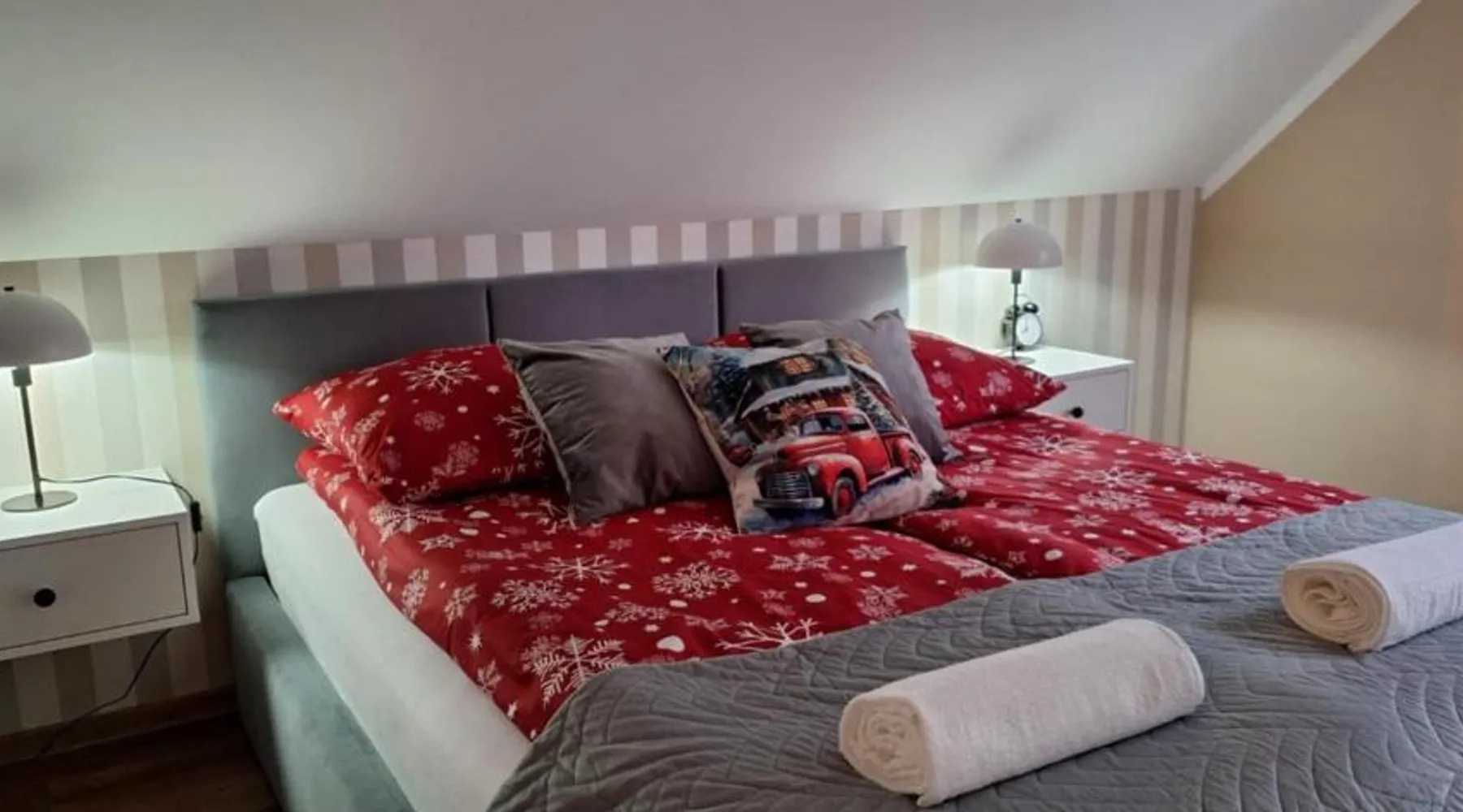 Spacious Accommodations: Strefa Relaksu-Piece in Piece offers a spacious apartment with four bedrooms and two bathrooms. The living room includes a dining area, ensuring comfort for all guests. Outdoor Spaces: Guests can enjoy a garden and terrace with garden views. The terrace features outdoor furniture and a barbecue, perfect for relaxing outdoors. Modern Amenities: The apartment provides free WiFi, a fully equipped kitchen with a kitchenette, washing machine, and dishwasher. Additional amenities include a balcony, TV, and free on-site private parking. Convenient Location: Located 12 mi from Olsztyn-Mazury Airport, the property is near attractions such as Olsztyn Stadium (25 mi) and St. James Concathedral (26 mi). Highly rated by guests. Guests will find a stovetop, a refrigerator, a dishwasher and kitchenware in the kitchen. The apartment also includes a barbecue. The spacious apartment features a washing machine, a tea and coffee maker, a terrace with garden views as well as a shared bathroom boasting a shower. The unit has 5 beds.