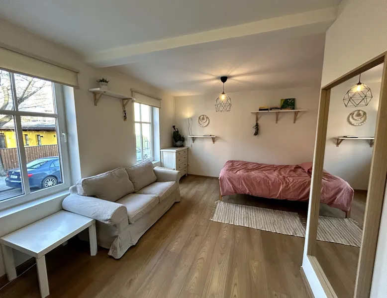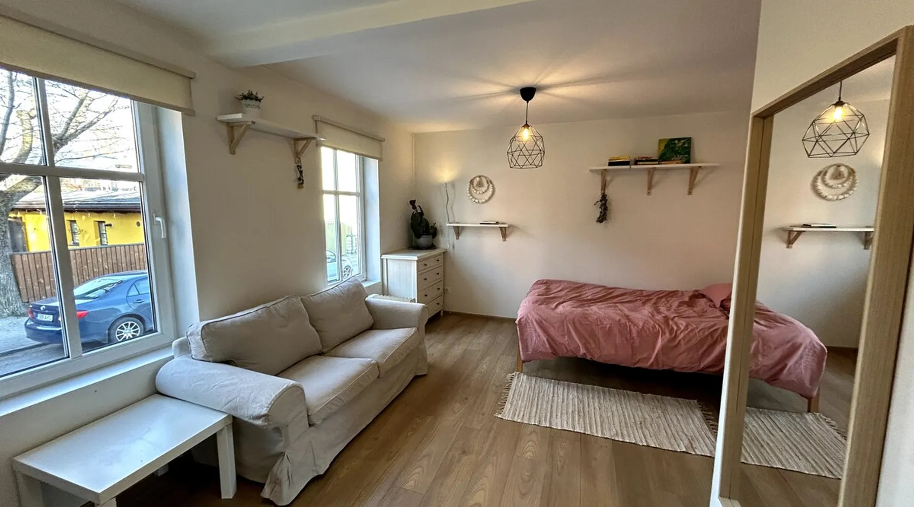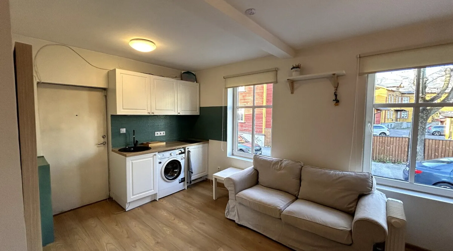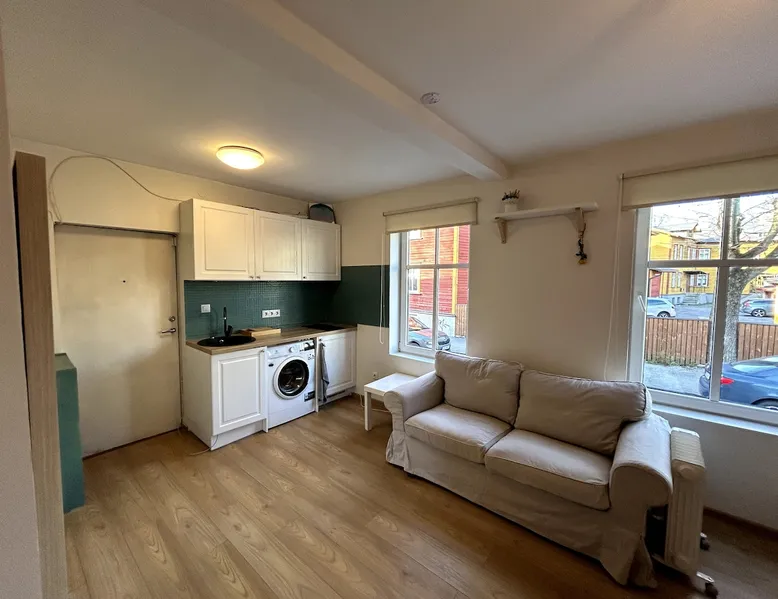 Enjoy your stay in Tallinn in this cozy 20m2 studio apartment located in the bohemian part of Tallinn. You're just a 5-minute walk from Telliskivi Creative City, and a 20-minute walk from the old town. Kaja Pizza and Ristikheina cafe are just around the corner. The apartment itself is located on a quiet street. The apartment provides a comfortable double bed (140cm x 200cm) and a small couch for relaxing. There's a basic kitchen and a combined toilet and shower room.
