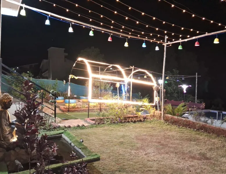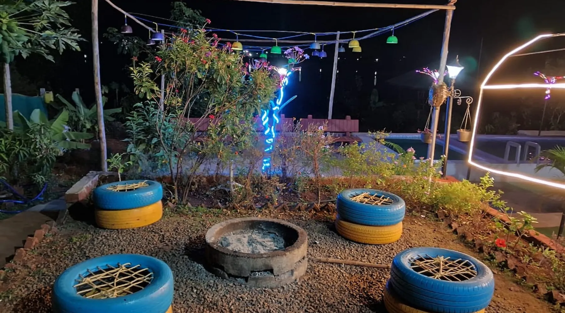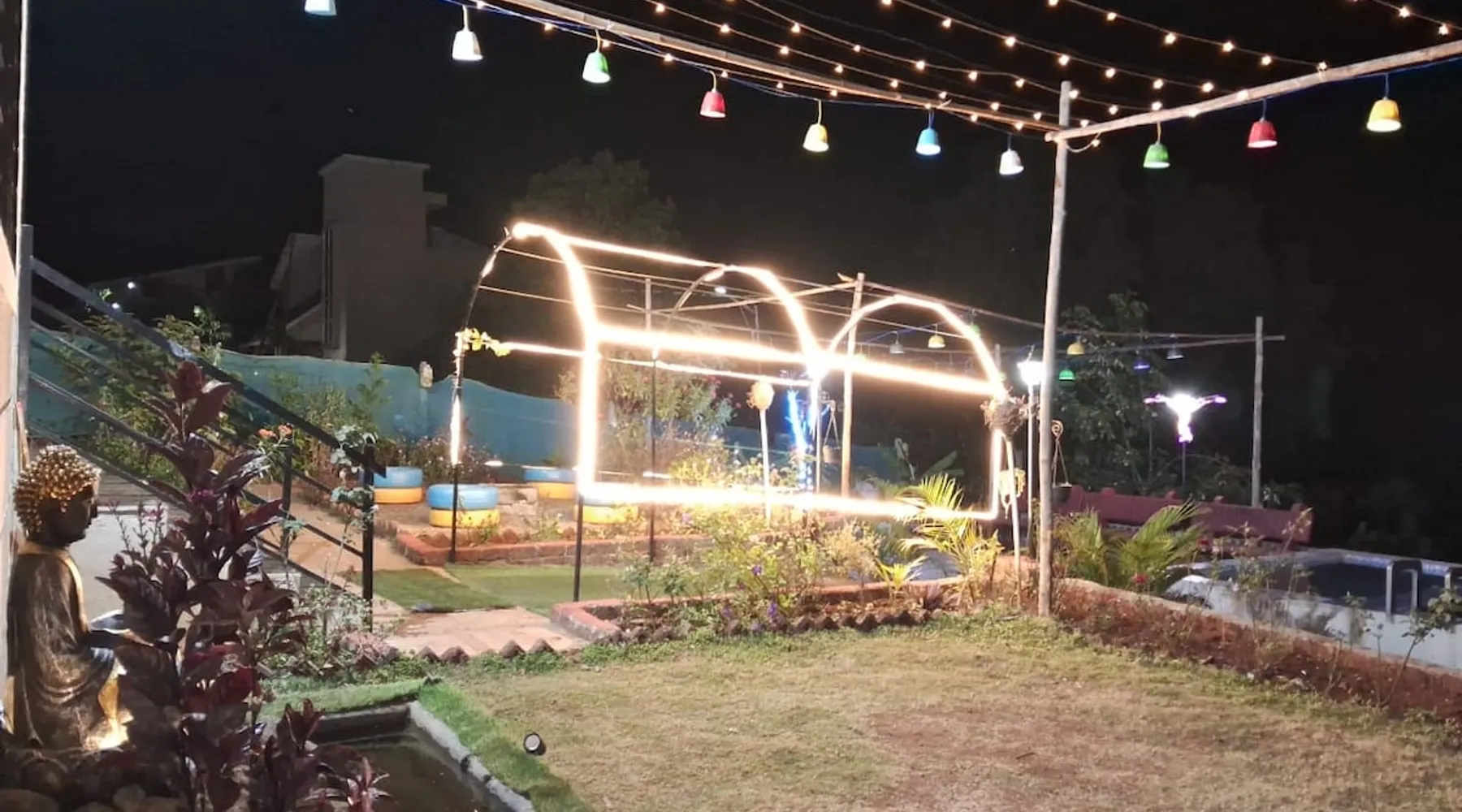 Sonchafa bungalow cum farmhouse is a beautiful and well-equipped retreat located in a serene environment near Kamshet. Scenic Surroundings: ▪ Surrounded by beautiful nature and located in a lush green environment. ▪ Offers a 3-side dam view with breathtaking sunset and sunrise views over the lake. ▪ Ideal for bird watching, with opportunities to observe various species, especially during sunrise and sunset. ▪ Good weather and stunning views of hills, valleys, and backwaters. The space Location: Situated at Arohi Island in the backwaters of Thokarwadi dam, Vadeshwar village in Maval Taluka. Accommodation: The farmhouse is fully furnished. It has 2 AC bedrooms and 1 non AC bedroom with attached bathrooms. It can accommodate maximum 15 guests at a time. Facilities: Dam view swimming pool with separate sections for adults and kids. Garden and outdoor seating arrangements with a view of the dam. Fire pit for a cozy and enjoyable outdoor experience. Indoor and outdoor games for entertainment. Connectivity: Well-connected by road, making it easily accessible. Approximately 45 KM away from Pune city, 33 KM from Lonavala, and 10 KM from kanhe phata Food & Dining - The food and dining options at Sonchafa bungalow are designed to provide a homely and comfortable experience for guests. Here are the details about the meal options and the availability of a private kitchen: Homely Quality Food: Veg Meal: INR 1000 per person (including Lunch, High Tea, Dinner, Breakfast) Non-Veg Meal: INR 1200 per person (including Lunch, High Tea, Dinner, Breakfast) Private Kitchen Facility: Private kitchen available for guests to cook vegetarian or non-vegetarian meals. Property staff will assist with dishwashing. Kitchen assistance charges: INR 1500 per day. Amenities at Sonchafa Private Swimming Pool (Adult 4ft, kids 2.5ft depth) - 20ft length and 12ft width 24 Hours generator and Inverter Power Backup Lawn with Seating Area Outdoor Fire Pit with Seating Arrangement: Barbeque Grill (Manual, Using Coal): Parking Area (up to 4 cars) Music System with Karaoke Indoor Games (Carrom, Chess, Uno Cards, Tambola Housie) Outdoor Games (Cricket, Football, Badminton, Wooden Spinning Top, Kids Magnetic Fishing Toy, Kids Archery, Hula Hoop Ring, Kite Flying, Gilli Danda, Throw and Catch Rubber Ring) Shared Kitchen (Allows guests to prepare their meals) Wifi Smart Television Refrigerator Water Purifier Hot Water Geysers Outdoor CCTV cameras Rules to follow - - Pets are not allowed in swimming pool. - Kids are allowed to swim only in kids swimming pool - Smoking is allowed only at outside lobby. - Any kinds of water activities/swimming in dam water is strictly prohibited - Smoking/hukka is strictly not allowed inside bungalow or any rooms or living areas. If found smoking inside the bungalow fine will be charged Rs.5000/- for every committed defaults. Illegal or prohibited things are not allowed, if found carrying prohibited things legal action will be taken. - Call girls are not allowed to bring them to our property. - No person will be allowed to enter the bungalow after 11.30 pm to next day morning 7 am. - Kitchen usage charge will be Rs.1500/- per day for using kitchen, gas and utensils. - Any kind of damages to the property or amenities, charges will be applicable on actual damage basis