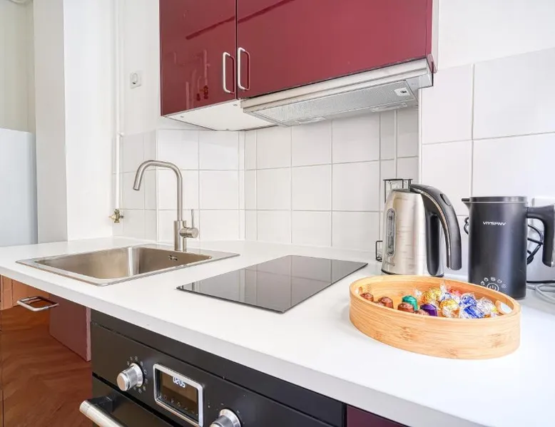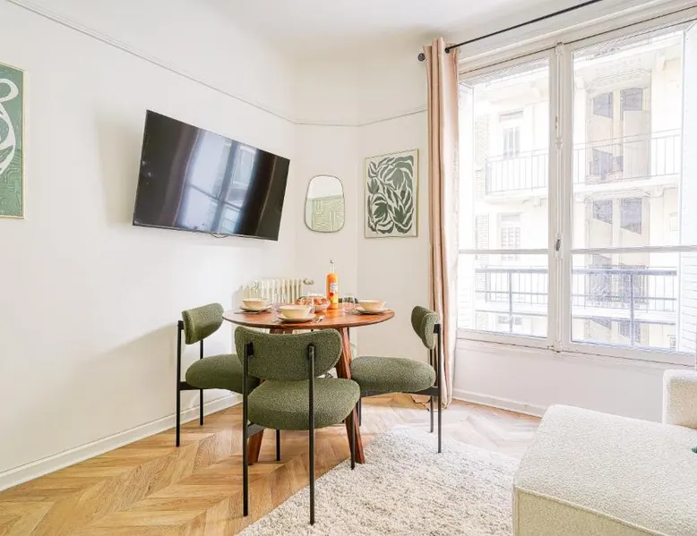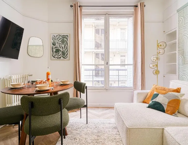 Comfortable Living Space: Apartment next to Palais des Congrès - Neuilly - II in Neuilly-sur-Seine offers a one-bedroom apartment with a living room. The space includes a kitchen, bathroom, dining area, and work desk. Modern Amenities: Guests enjoy free WiFi, a tea and coffee maker, hairdryer, coffee machine, refrigerator, oven, TV, and a sofa bed. The apartment is highly rated for its comfort and facilities. Prime Location: Located 14 mi from Paris Orly Airport, the apartment is a 17-minute walk from Palais des Congrès de Paris. Nearby attractions include Arc de Triomphe (1.2 mi), Eiffel Tower (2.5 mi), and an ice-skating rink. This apartment features 1 living room, 1 separate bedroom and 1 bathroom with a bath and a hairdryer. The apartment's kitchen, which has a refrigerator and an oven, is available for cooking and storing food. The apartment features a tea and coffee maker, a seating area, a dining area, a sofa and a TV. The unit has 2 beds.