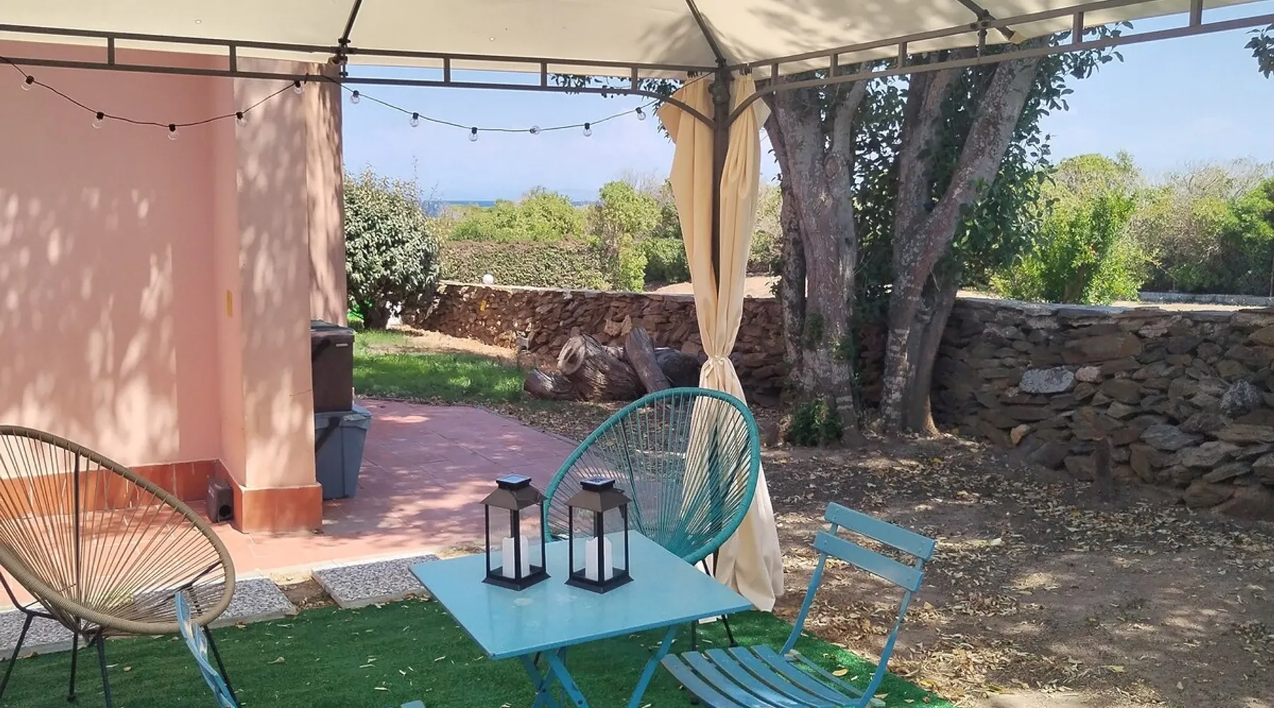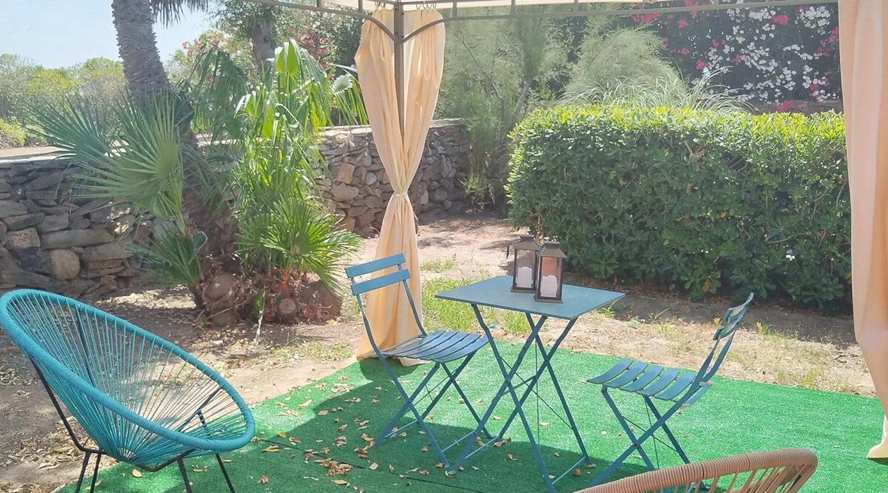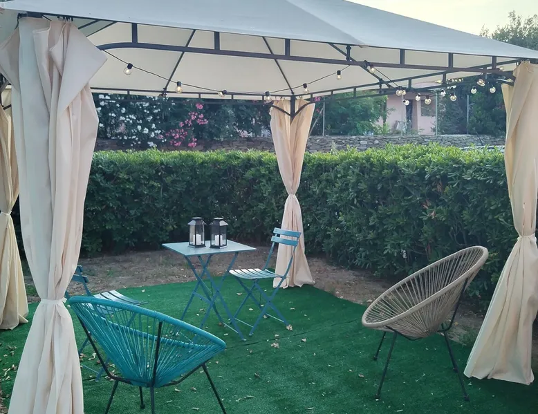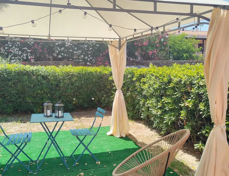 Casa Rais is a villa 50m from the sea very close to Le Tonnare beach, not far from Stintino and the famous Pelosa beach. The house, recently renovated, is air-conditioned and equipped with all amenities (coffee maker, dishwasher, washing machine, etc.) It consists of a living room with a kitchenette, a double bedroom, a single bedroom, and a one and a half bed on the mezzanine floor. With a large bathroom equipped with a shower. The space Large living room with dining table and kitchenette with dishwasher, coffee machine, kettle and microwave. Double bedroom, single room, and one-and-a-half-size bed on the mezzanine. Bathroom with super comfortable shower and washing machine. Patio and garden set up with table , chairs, and deck chairs. Gazebo in the back garden with comfortable armchairs where you can relax. NOTE - Casa Rais borders a tourist village. There is access to the village services, specifically the restaurant upon reservation, and the village bar. In the evening hours, between 9 pm and 11 pm, in the amphitheater below, shows are organized. This, of course, involves music and some noise. You can participate in animation and shows while places are sold out. Other things to note NOTE - Casa Rais borders a tourist village. There is access to the village services, specifically the restaurant upon reservation, and the village bar. In the evening hours, between 9 pm and 11 pm, in the amphitheater below, shows are organized. This, of course, involves music and some noise. You can participate in animation and shows while places are sold out. Registration Details IT090089C2000Q3049
