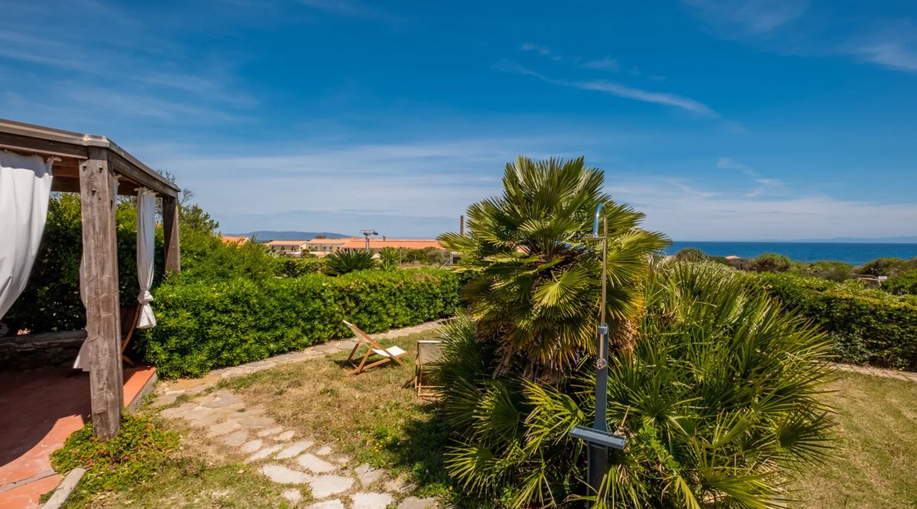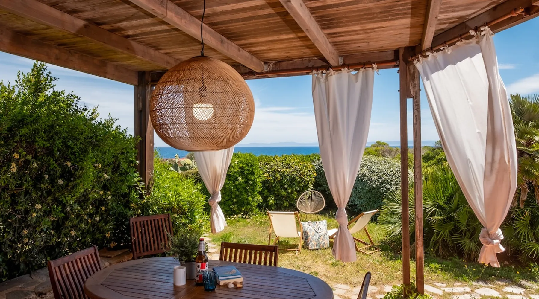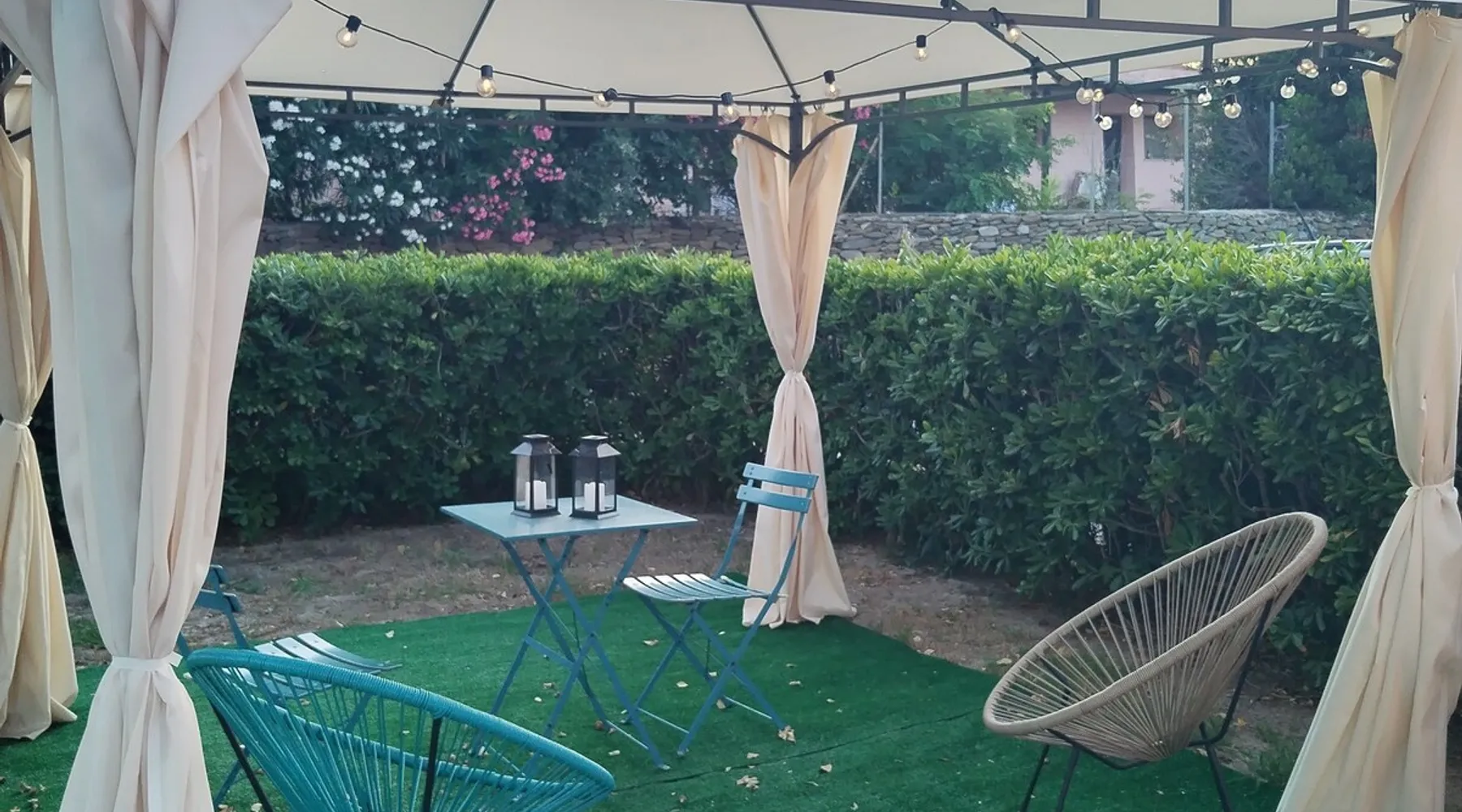 Casa Rais is a villa 50m from the sea very close to Le Tonnare beach, not far from Stintino and the famous Pelosa beach. The house, recently renovated, is air-conditioned and equipped with all amenities (coffee maker, dishwasher, washing machine, etc.) It consists of a living room with a kitchenette, a double bedroom, a single bedroom, and a one and a half bed on the mezzanine floor. With a large bathroom equipped with a shower. The space Large living room with dining table and kitchenette with dishwasher, coffee machine, kettle and microwave. Double bedroom, single room, and one-and-a-half-size bed on the mezzanine. Bathroom with super comfortable shower and washing machine. Patio and garden set up with table , chairs, and deck chairs. Gazebo in the back garden with comfortable armchairs where you can relax. NOTE - Casa Rais borders a tourist village. There is access to the village services, specifically the restaurant upon reservation, and the village bar. In the evening hours, between 9 pm and 11 pm, in the amphitheater below, shows are organized. This, of course, involves music and some noise. You can participate in animation and shows while places are sold out. Other things to note NOTE - Casa Rais borders a tourist village. There is access to the village services, specifically the restaurant upon reservation, and the village bar. In the evening hours, between 9 pm and 11 pm, in the amphitheater below, shows are organized. This, of course, involves music and some noise. You can participate in animation and shows while places are sold out. Registration Details IT090089C2000Q3049