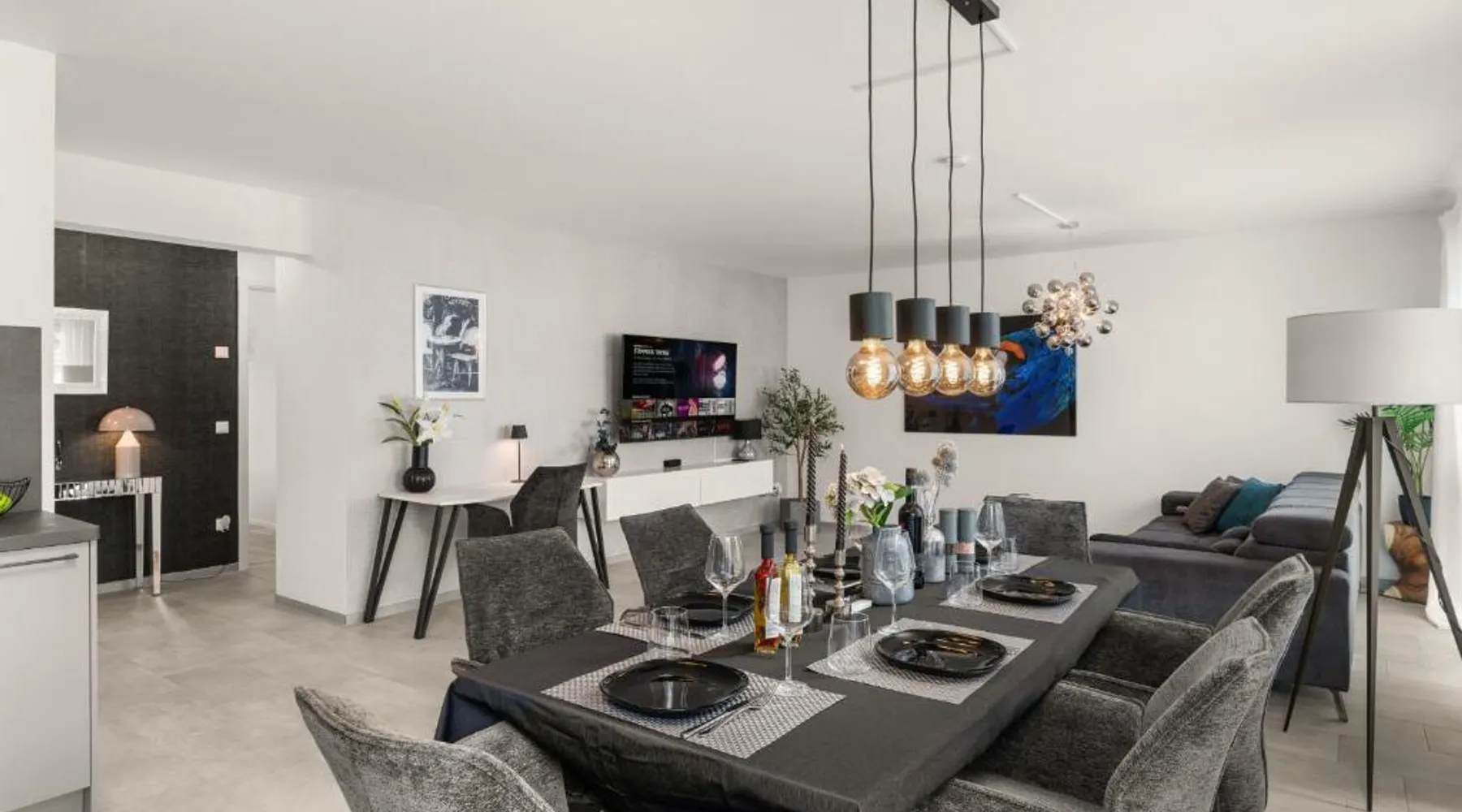 Spacious and Modern: Fairmieten I Moderne Suite I Parkplatz in Bielefeld offers a spacious, recently renovated apartment with two bedrooms and a living room. Guests enjoy free WiFi, private check-in and check-out services, and a private outdoor seating area. Comfortable Amenities: The apartment features a balcony with garden views, a fully equipped kitchen, washing machine, and a work desk. Additional amenities include streaming services, a dining area, and a sofa bed. Convenient Location: Located 39 mi from Paderborn-Lippstadt Airport, the property is near attractions such as Bielefeld History Museum (5.6 mi) and Stadttheater Bielefeld (6.2 mi). Free on-site private parking is available. Highly rated by guests. This spacious apartment comes with 1 living room, 2 separate bedrooms and 1 bathroom with a walk-in shower and free toiletries. In the kitchen, guests will find a stovetop, a refrigerator, a dishwasher and kitchenware. This apartment has a washing machine, flat-screen TV with streaming services, garden views, as well as wine/champagne for guests. The unit has 3 beds.