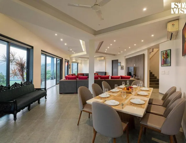 Spacious Accommodations: Aarna House by StayVista in Pune offers a spacious villa with four bedrooms and four bathrooms. The property features a living room, dining area, and family rooms, ensuring comfort for all guests. Modern Amenities: Guests enjoy free WiFi, air-conditioning, and a terrace with garden and mountain views. The villa includes a balcony, patio, and outdoor seating area, perfect for relaxation. Convenient Facilities: The property provides a lounge, indoor and outdoor play areas, and a picnic area. Free on-site private parking is available, and the Pune International Airport is 22 mi away. Highly rated by guests. Featuring a private entrance, this air-conditioned villa consists of 1 living room, 4 separate bedrooms and 4 bathrooms with a bath and a shower. The spacious villa provides a seating area, a dining area, a wardrobe as well as a terrace with garden views. The unit offers 4 beds.