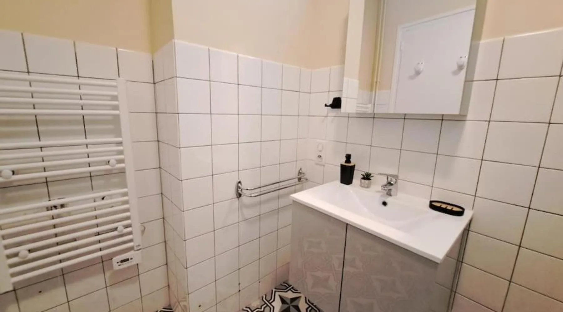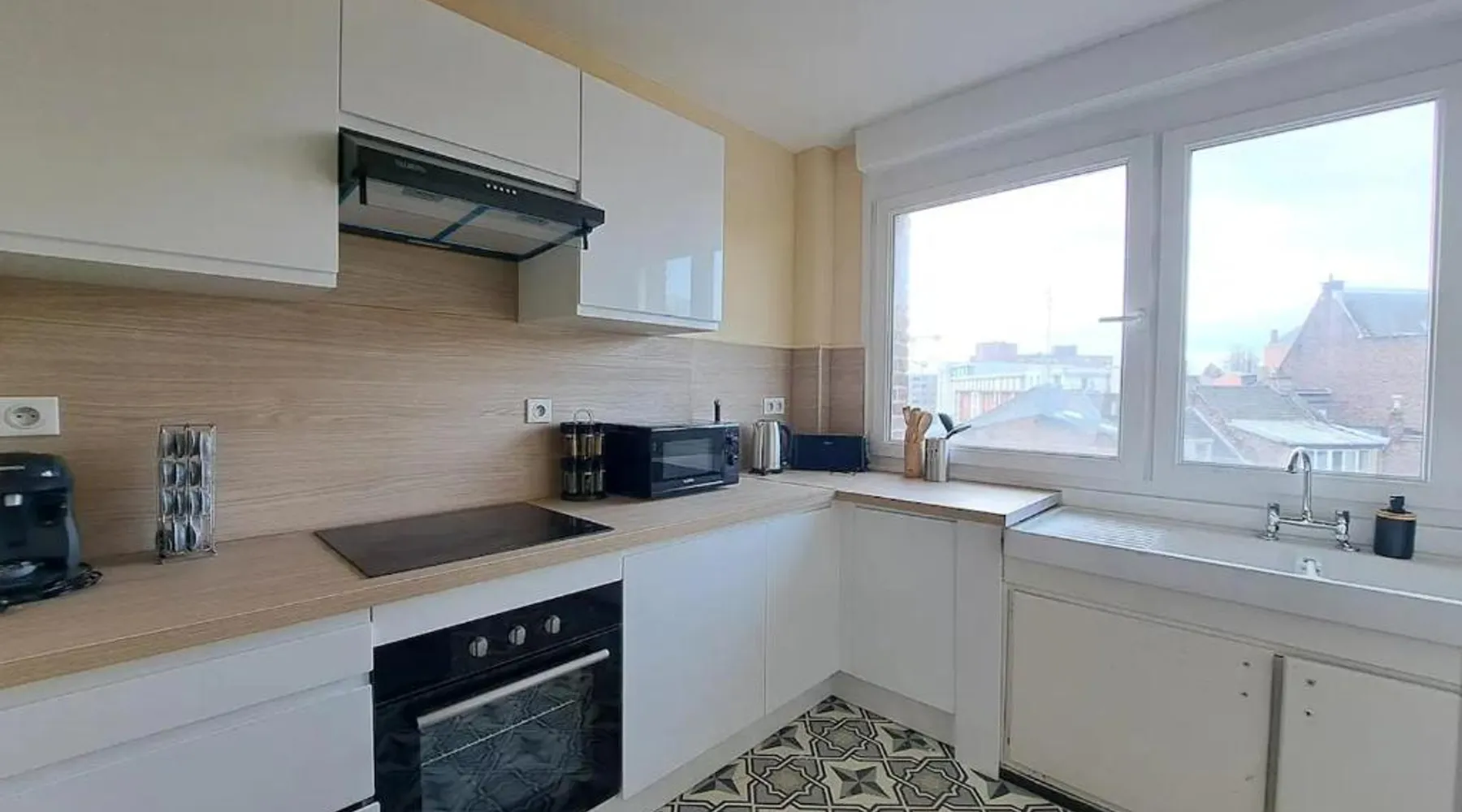 Spacious Accommodations: T3 en hyper-center métro à 2 pas in Tourcoing offers a spacious, recently renovated apartment with two bedrooms and a living room. Guests enjoy a balcony with city views and a fully equipped kitchen. Dining and Amenities: The property features a traditional restaurant serving lunch, dinner, and high tea, offering halal and vegetarian options. Free WiFi is available throughout the apartment. Additional facilities include a elevator, minimarket, hairdresser, family rooms, and full-day security. Convenient Location: Located 12 mi from Lille Airport, the apartment is a short walk from Tourcoing Center Metro Station. Nearby attractions include Colbert Metro Station (656 feet) and Phalempins Metro Station (13-minute walk). Guests appreciate the convenient location, spacious rooms, and comfortable accommodations. This spacious apartment consists of 1 living room, 2 separate bedrooms and 1 bathroom with a bath or a shower and free toiletries. In the well-fitted kitchen, guests will find a stovetop, a refrigerator, kitchenware and an oven. Featuring a balcony with city views, this apartment also provides a washing machine and a flat-screen TV with streaming services. The unit offers 3 beds.