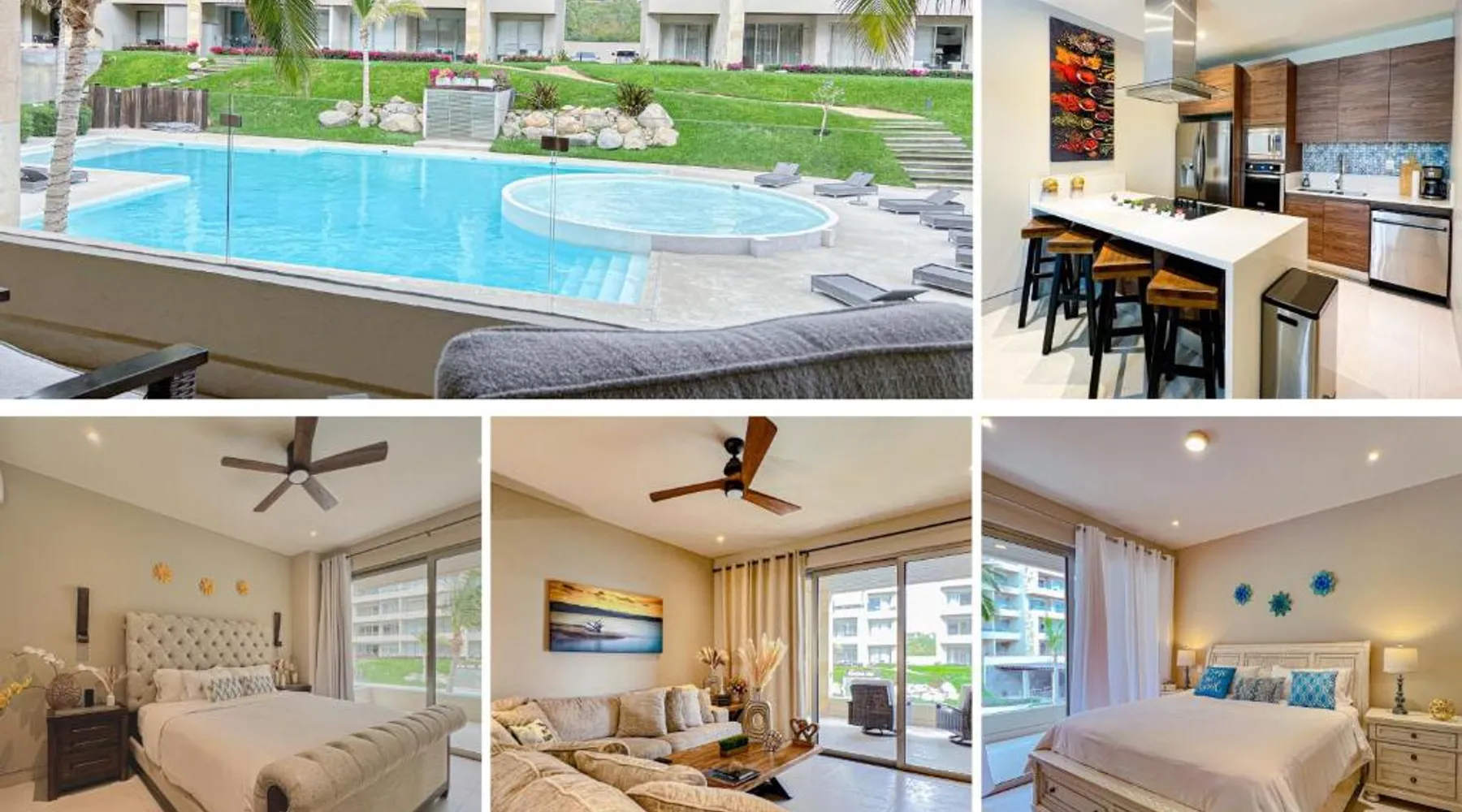 Elegant Accommodations: New Condo! Vista Velas III in El Tezal offers a spacious apartment with three bedrooms and three bathrooms. Guests enjoy a sun terrace, garden, outdoor swimming pool, and free WiFi. Comfortable Amenities: The property features air-conditioning, a terrace, balcony, washing machine, and a fully equipped kitchen. Additional amenities include a private pool, garden views, and a games room. Convenient Location: Located 25 mi from Los Cabos International Airport, the apartment is near Las Viudas Beach (1.2 mi), Cabo San Lucas Country Club (2.5 mi), and El Arco (4.3 mi). Highly rated by guests. The infinity pool is a top feature of this apartment. Boasting a private entrance, this air-conditioned apartment comes with 1 living room, 3 separate bedrooms and 3 bathrooms with a bath and a shower. In the well-fitted kitchen, guests will find a refrigerator, a dishwasher, kitchenware and an oven. Featuring a terrace with garden views, this apartment also features a washing machine and a flat-screen TV. The unit has 3 beds.
