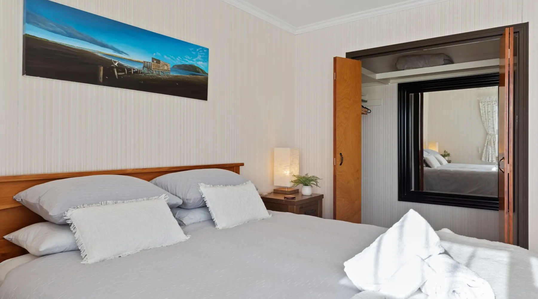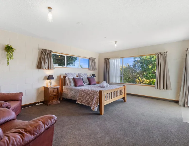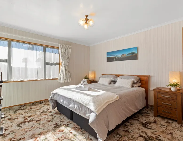 Marvel at magnificent sea views from the moment you step into Bay View Gardens, tucked away in the peaceful suburb of Maungatapu. The space This charming character home, in its original design, is perched in an elevated, north-facing position near the waterfront, where you'll enjoy exceptional views of Tauranga Harbour and CBD, right through to Mount Maunganui. Conveniently located, you're within easy walking distance to local amenities, with shops at the end of the street and easy access to main routes in and around Tauranga. The upstairs area, including a bathroom, toilet, and two bedrooms, is accessible via a ramp for guests requiring an alternative to stairs. Four bedrooms ensure a good night's rest in this family-friendly, spacious home with lovely gardens. A second bathroom services the remaining rooms, and a full laundry and separate toilet complete the comfortable setup. Parking is hassle-free, with space for a boat and car up to 7 meters. The convenient location is a standout feature, with two harbour access paths approximately 30 and 50 meters from the house via the public accessway. These spots are perfect for a picnic, surfcasting, or swimming. Whether you choose to run, walk, or cycle beside the harbour or prefer a casual stroll to the nearby cafes, Bay View Gardens ensures you're at the heart of Tauranga's vibrant scene—plus, you're just minutes by car from the heart of the Mount! Whether you're visiting for work or a leisurely adventure, the area is filled with scenic spots, delightful cafes, and eateries, as well as fantastic walking tracks waiting to be discovered. You simply can't visit Tauranga without heading up to the summit of Mount Maunganui for some 360-degree views of the Bay of Plenty! Embrace the perfect blend of convenience, prime location, and the quintessential Tauranga holiday experience at Bay View Gardens. Other things to note There is another property next door that can be booked together with Bay View Gardens via the Bachcare website, "Hill Top House" or ID 1158196. Please note a bond may be charged at certain times of the year. One of our team members will contact you if this is required for your booking.
