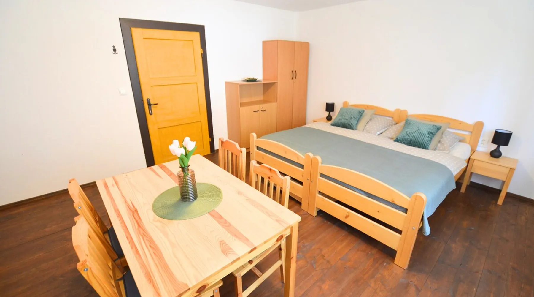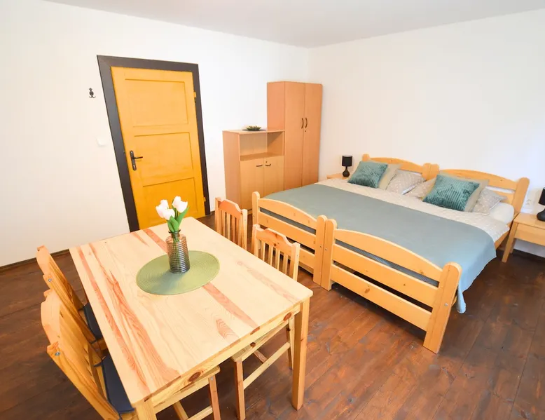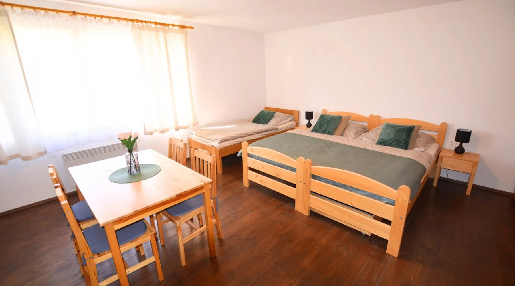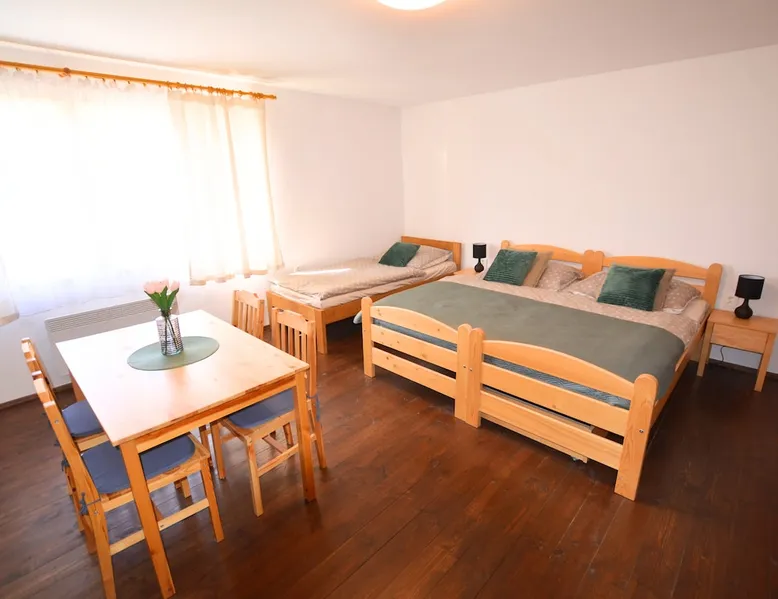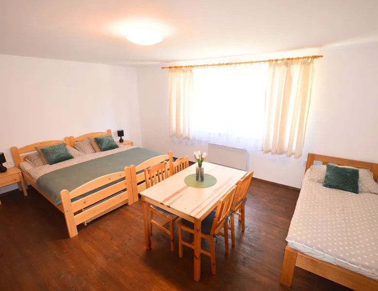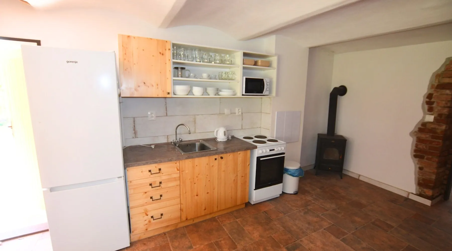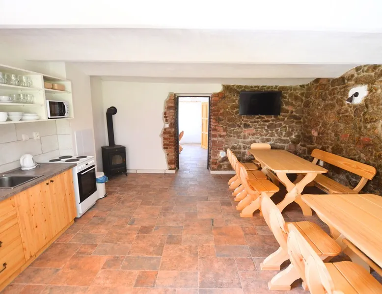 Chata Leštinka offers perfect relaxation right by the Sázava River near the Stvořidla nature reserve. It is located near the town of Světlá nad Sázavou in the village of Leštinka and offers enchanting nature, peace and quiet with a fabulous view of the setting sun over the river. The space Enjoy a quiet stay in a cottage with two triple rooms, two bathrooms, a shared kitchen and a terrace with seating, where there is also the possibility of making a fire. Towels and bed linen are available in each bedroom and all are equipped with their own TV. The kitchen offers complete equipment including a fridge with freezer, kettle and stove with oven. There is a spacious lounge in the basement, which guests can use, for example, in case of bad weather. There is a kitchenette, tables with benches, TV and toilet. Other things to note Guests will appreciate walks in nature, for example, you can walk to the Stvořidla nature reserve, which offers refreshments in the local campsite. But you can also get there comfortably by train, the train stop Smrčná is just a few steps from the cottage. The nearby bike path along the river guarantees beautiful trips and opportunities not only for cyclists. The surrounding area also offers a rich variety of historical and cultural monuments worth visiting. Visit the castle in Světlá nad Sázavou with a beautiful castle park or the town of Ledeč nad Sázavou with a dominant castle located on a limestone promontory directly above the Sázava River. Lipnice nad Sázavou is also worth a visit, where there is a memorial to Jaroslav Hašek, the National Memorial of Eavesdropping - flooded quarries known for carved reliefs in the rock and, last but not least, the equally famous castle Lipnice nad Sázavou.
