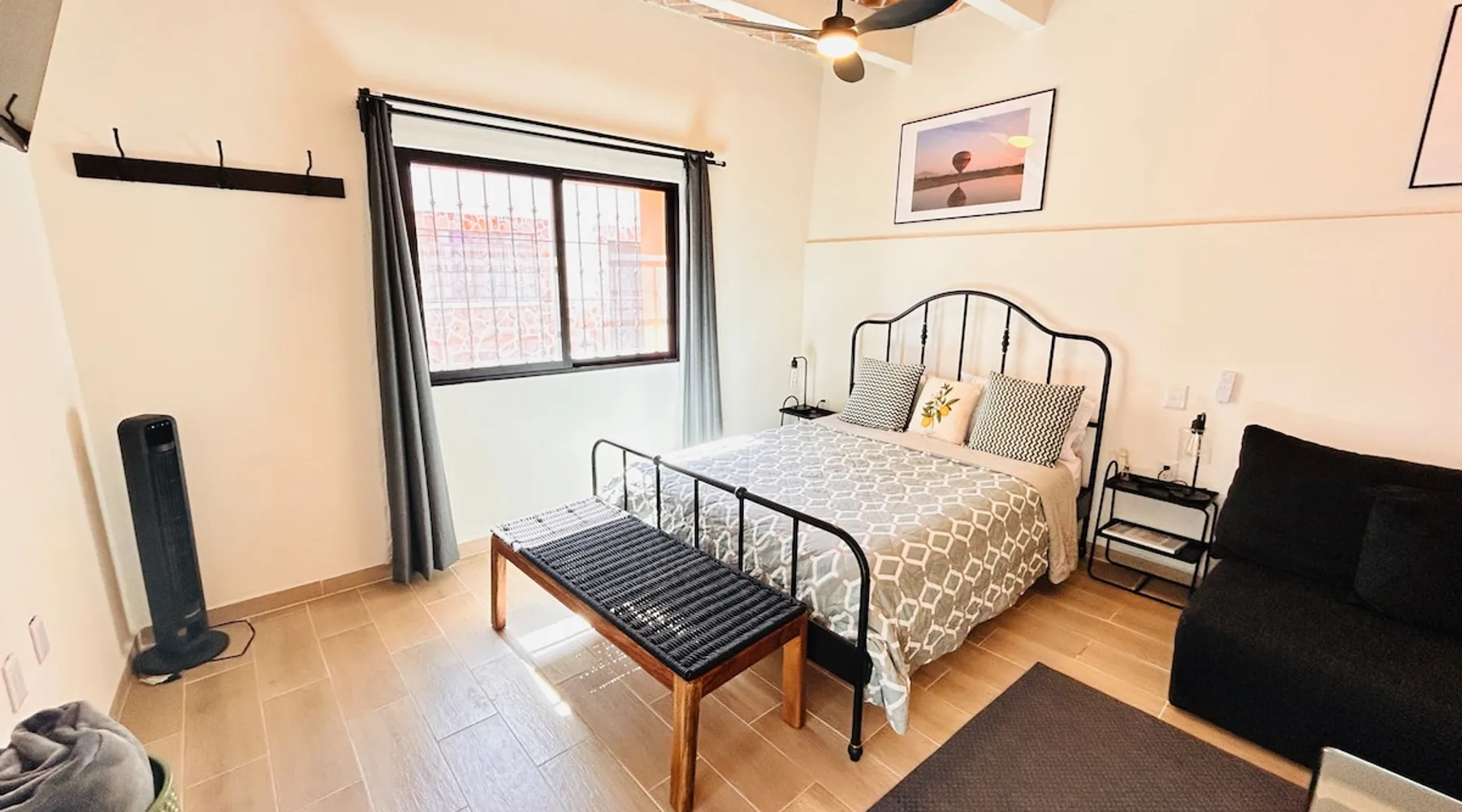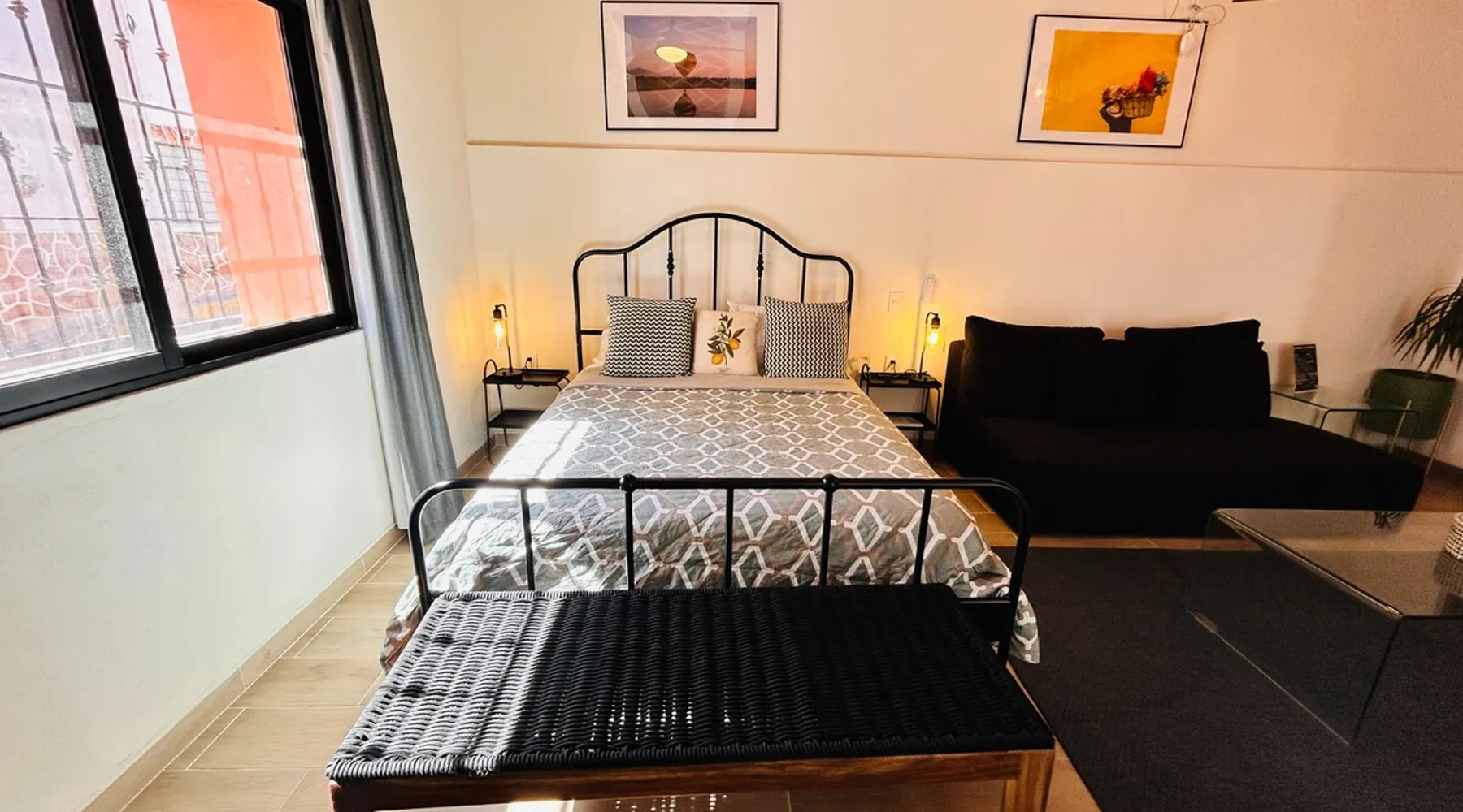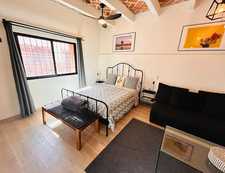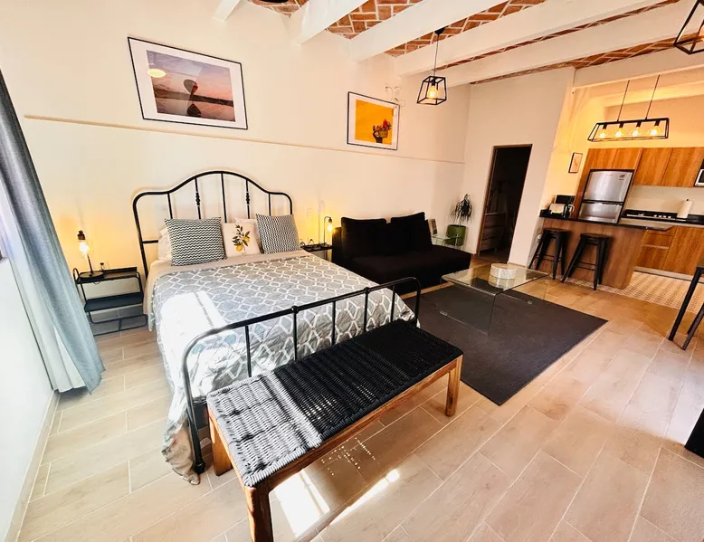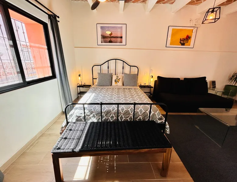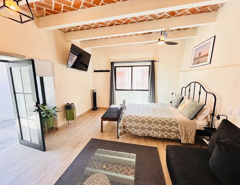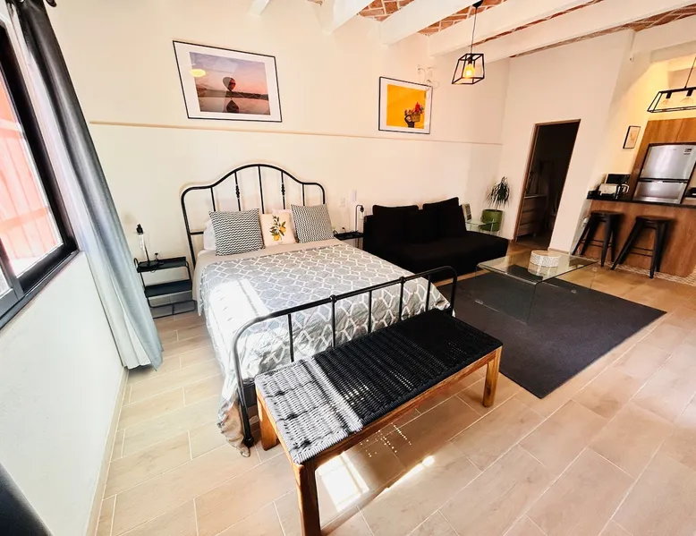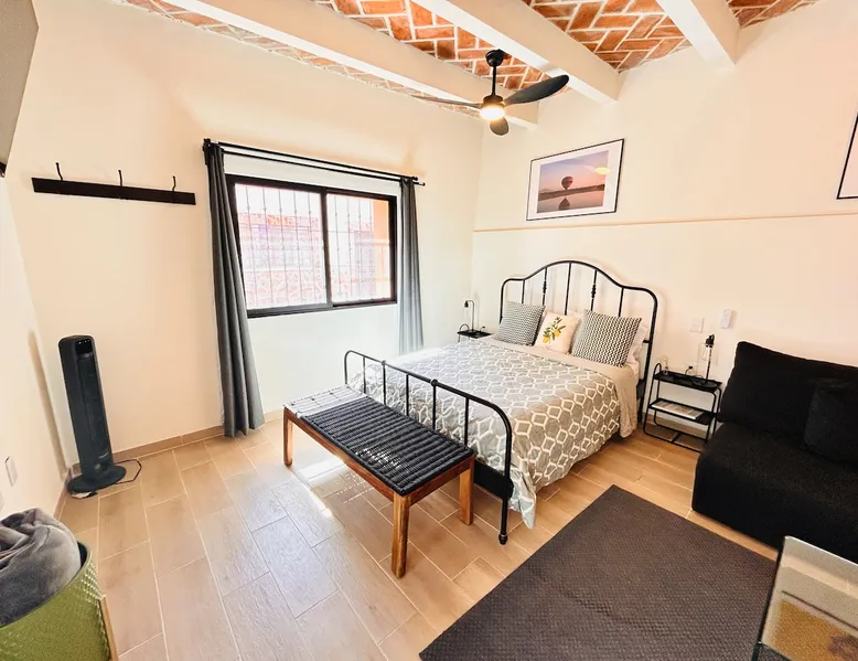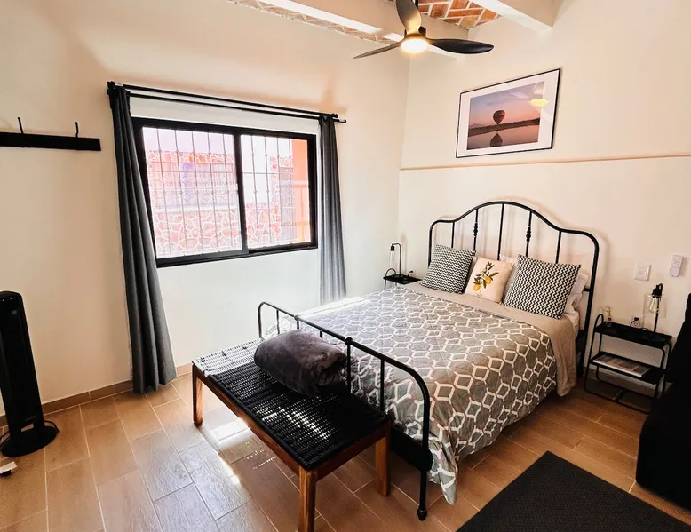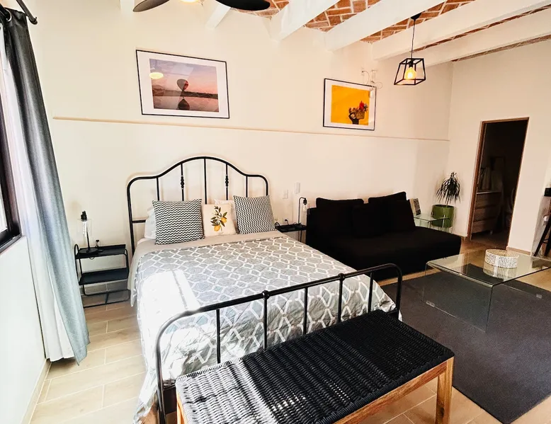 In the heart of the charming colonial city of Tequisquiapan, Casa Limones Loft A welcomes you with its warm design and amenities for an unforgettable stay. Located just one and a half blocks from downtown, our loft is fully equipped and independent, offering you the opportunity to explore everything that this magical town has for you. Ideal for discovering the Land of Cheese and Wine, our home is perfect for your getaway. We can issue an INVOICE! The space The house has the following spaces Loft A: -Dining room -Full kitchen with everything you need for a great stay -1 queen bed -Full bathroom -TV 60" NETFLIX - The loft has 1 parking space just 3 minutes (300 meters) walking from the house, TOTALLY FREE. -Large Spanish-style patio, with a table and chairs to enjoy the beautiful climate of the region -High speed WIFI The location is the best, just a block and a half walk from the center full of restaurants, bars and shops. A 15-minute drive away are the Del Valle de Bernal vineyards as well as cheese cellars and breweries. The house is Pet Friendly, however, we only accept up to 2 pets per reservation. Guest access Your safety and comfort are our priority in this beautiful corner of Tequisquiapan. Our property is located just a few steps from the center of town, which guarantees an extremely safe and quiet environment. To provide you with a smooth experience, we will provide you with access codes to the house. These codes will be sent 24 hours before your arrival, so you can enter your accommodation easily and without worries. We hope you enjoy your stay at our home and feel at home from the moment you arrive. We can't wait to welcome you and make sure you have an exceptional experience in Tequisquiapan! Other things to note This property ensures maximum security and privacy for you and your companions. But the best part is its location. Just a 2-minute walk away, you'll reach the vibrant center of Tequisquiapan, where you'll find a wide variety of restaurants, bars, and shops inviting you to explore the rich local culture. Additionally, if you wish to explore further, in just a 15-minute drive, you can visit the renowned vineyards of Valle de Bernal, as well as cheese cellars and breweries in the region. - Cleaning is done before and after your stay. In case you require cleaning during your stay, it has a cost of $300 per day. - For stays of 20 days or more, an additional cleaning is required with a cost of $600 MXN, which will be coordinated with the host, establishing a day and time. - In the case of stays that exceed one month (30 days), it will be necessary to perform cleaning every 15 days, with an additional charge of $600 MXN. The house is Pet-Friendly; however, we have established some rules for accommodating all pets: 1) Pets are not allowed on beds or sofas. 2) Pets should not be left loose in the common areas at any time, and if taken for a walk, they must be on a leash, and their waste should be picked up. 3) It is necessary to supervise at all times to ensure that they do not damage or destroy the property's belongings. 4) We accept a maximum of 2 pets per reservation. 5) A fee of $300 pesos per stay will be charged for accepted pets. We hope you choose our house for your next adventure in Tequisquiapan. We assure you a comfortable, safe, and fun stay in this magical destination!