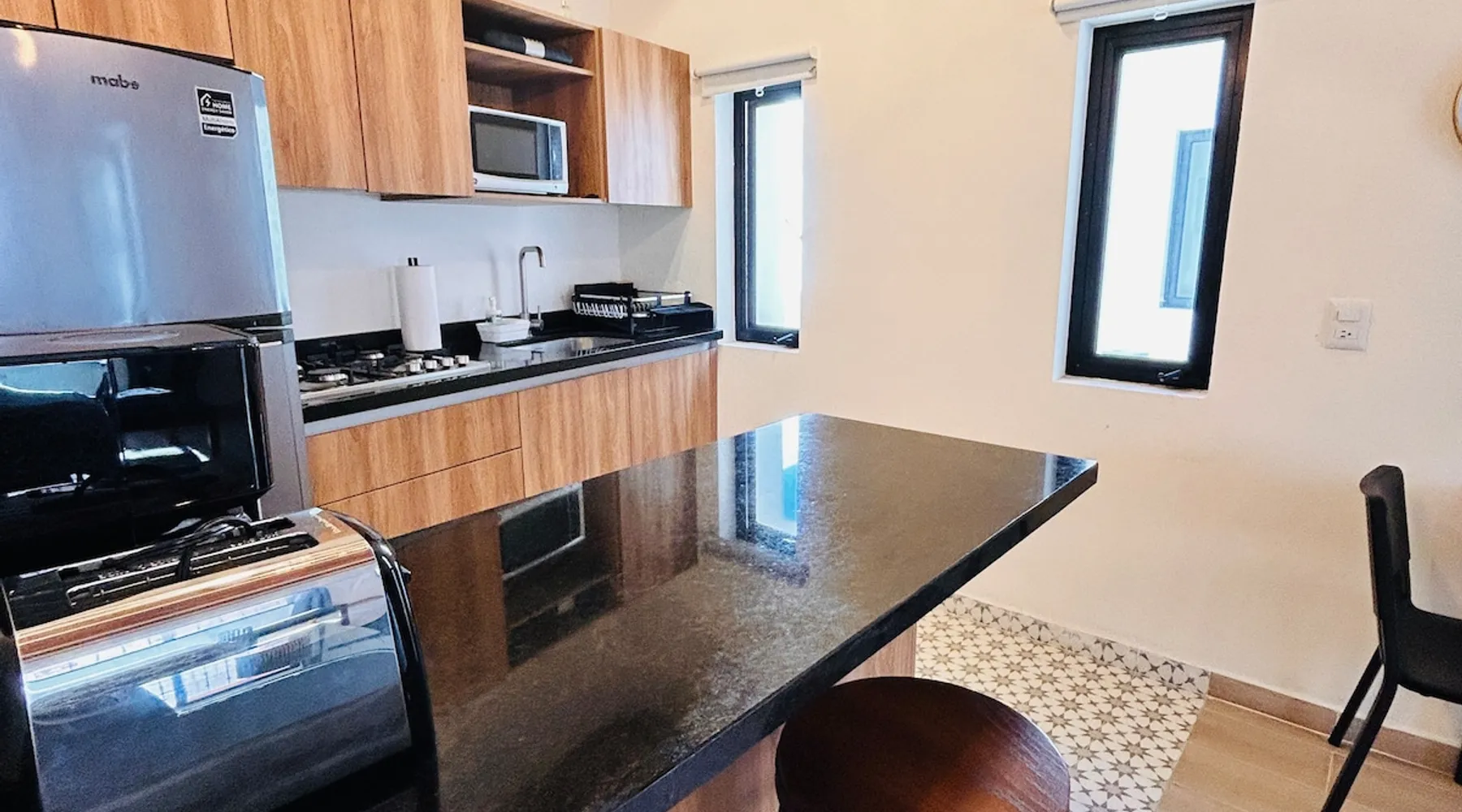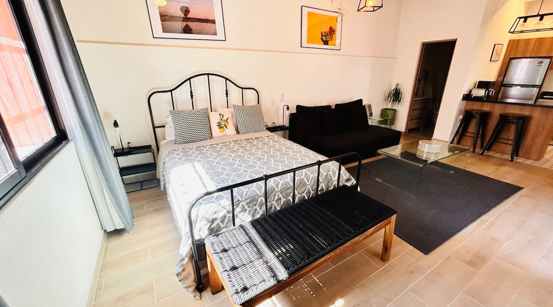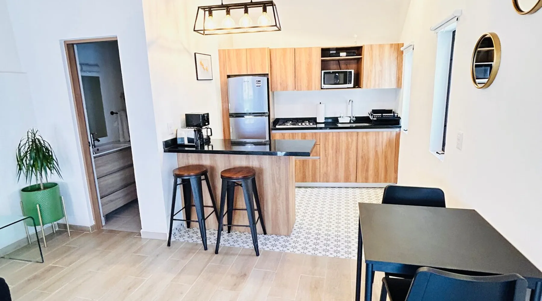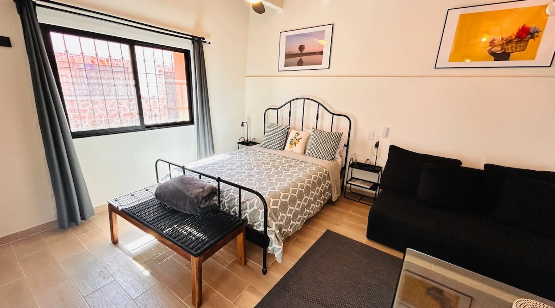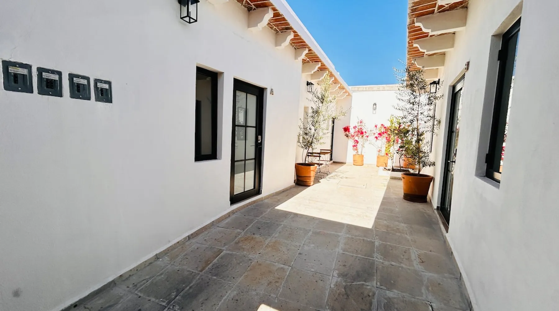 In the heart of the charming colonial city of Tequisquiapan, Casa Limones Loft A welcomes you with its warm design and amenities for an unforgettable stay. Located just one and a half blocks from downtown, our loft is fully equipped and independent, offering you the opportunity to explore everything that this magical town has for you. Ideal for discovering the Land of Cheese and Wine, our home is perfect for your getaway. We can issue an INVOICE! The space The house has the following spaces Loft A: -Dining room -Full kitchen with everything you need for a great stay -1 queen bed -Full bathroom -TV 60" NETFLIX - The loft has 1 parking space just 3 minutes (300 meters) walking from the house, TOTALLY FREE. -Large Spanish-style patio, with a table and chairs to enjoy the beautiful climate of the region -High speed WIFI The location is the best, just a block and a half walk from the center full of restaurants, bars and shops. A 15-minute drive away are the Del Valle de Bernal vineyards as well as cheese cellars and breweries. The house is Pet Friendly, however, we only accept up to 2 pets per reservation. Guest access Your safety and comfort are our priority in this beautiful corner of Tequisquiapan. Our property is located just a few steps from the center of town, which guarantees an extremely safe and quiet environment. To provide you with a smooth experience, we will provide you with access codes to the house. These codes will be sent 24 hours before your arrival, so you can enter your accommodation easily and without worries. We hope you enjoy your stay at our home and feel at home from the moment you arrive. We can't wait to welcome you and make sure you have an exceptional experience in Tequisquiapan! Other things to note This property ensures maximum security and privacy for you and your companions. But the best part is its location. Just a 2-minute walk away, you'll reach the vibrant center of Tequisquiapan, where you'll find a wide variety of restaurants, bars, and shops inviting you to explore the rich local culture. Additionally, if you wish to explore further, in just a 15-minute drive, you can visit the renowned vineyards of Valle de Bernal, as well as cheese cellars and breweries in the region. - Cleaning is done before and after your stay. In case you require cleaning during your stay, it has a cost of $300 per day. - For stays of 20 days or more, an additional cleaning is required with a cost of $600 MXN, which will be coordinated with the host, establishing a day and time. - In the case of stays that exceed one month (30 days), it will be necessary to perform cleaning every 15 days, with an additional charge of $600 MXN. The house is Pet-Friendly; however, we have established some rules for accommodating all pets: 1) Pets are not allowed on beds or sofas. 2) Pets should not be left loose in the common areas at any time, and if taken for a walk, they must be on a leash, and their waste should be picked up. 3) It is necessary to supervise at all times to ensure that they do not damage or destroy the property's belongings. 4) We accept a maximum of 2 pets per reservation. 5) A fee of $300 pesos per stay will be charged for accepted pets. We hope you choose our house for your next adventure in Tequisquiapan. We assure you a comfortable, safe, and fun stay in this magical destination!