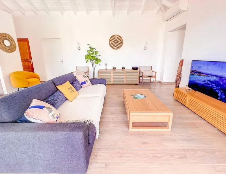 Elegant Accommodations: Villa Azur in Saint Martin offers a three-bedroom, three-bathroom layout with a living room. The property features a swimming pool with stunning sea views, a sun terrace, and a lush garden. Free WiFi is available throughout the villa. Modern Amenities: Guests can enjoy air-conditioning, a fully equipped kitchen, washing machine, and a work desk. The villa includes a dining area, outdoor seating, and a barbecue for relaxed outdoor dining. Free on-site private parking is provided. Prime Location: Located 1.9 mi from Grand Case-Espérance Airport, Villa Azur is a 17-minute walk from Orient Bay Beach. Boating opportunities are available in the surrounding area. This villa provides a pool with a view. Boasting a private entrance, this air-conditioned villa includes 1 living room, 3 separate bedrooms and 3 bathrooms with a shower and a hairdryer. Guests will find a stovetop, a refrigerator, a dishwasher and kitchenware in the kitchen. The villa also features a barbecue. Featuring a terrace with sea views, this villa also offers a washing machine and a flat-screen TV with cable channels. The unit has 3 beds.