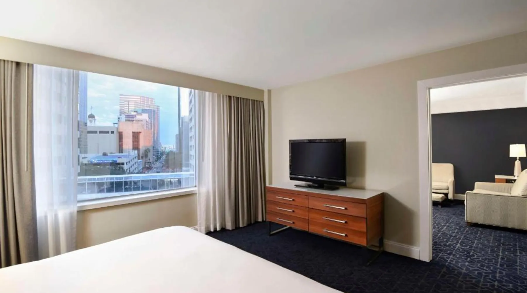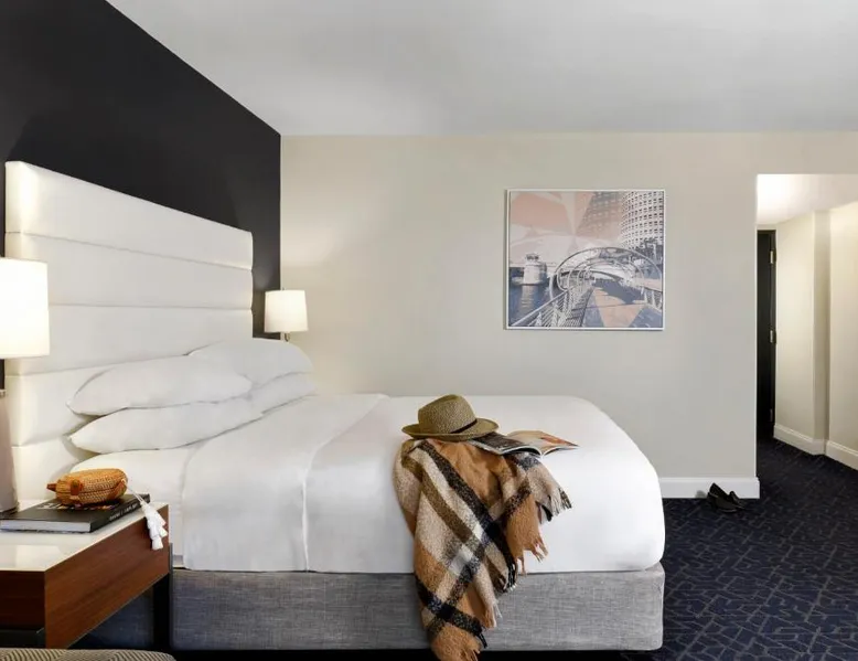 Prime Location: Hotel Tampa Riverwalk in Tampa offers a convenient location with a view. Guests enjoy easy access to attractions such as Amalie Arena, a 12-minute walk away, and Raymond James Stadium, 5 mi from the property. Exceptional Facilities: The hotel features a fitness center, sun terrace, year-round outdoor swimming pool, and free WiFi in public areas. Additional amenities include a restaurant, bar, and outdoor seating area. Comfortable Accommodations: Rooms offer air-conditioning, tea and coffee makers, hairdryers, refrigerators, work desks, free toiletries, and TVs. Balconies and interconnected rooms enhance the stay. Dining Experience: The modern restaurant serves American cuisine for lunch and dinner, providing a comfortable dining ambiance. The spacious double room offers air conditioning, a tea and coffee maker, a safe deposit box, heating, as well as a flat-screen TV with cable channels. The unit has 1 bed.