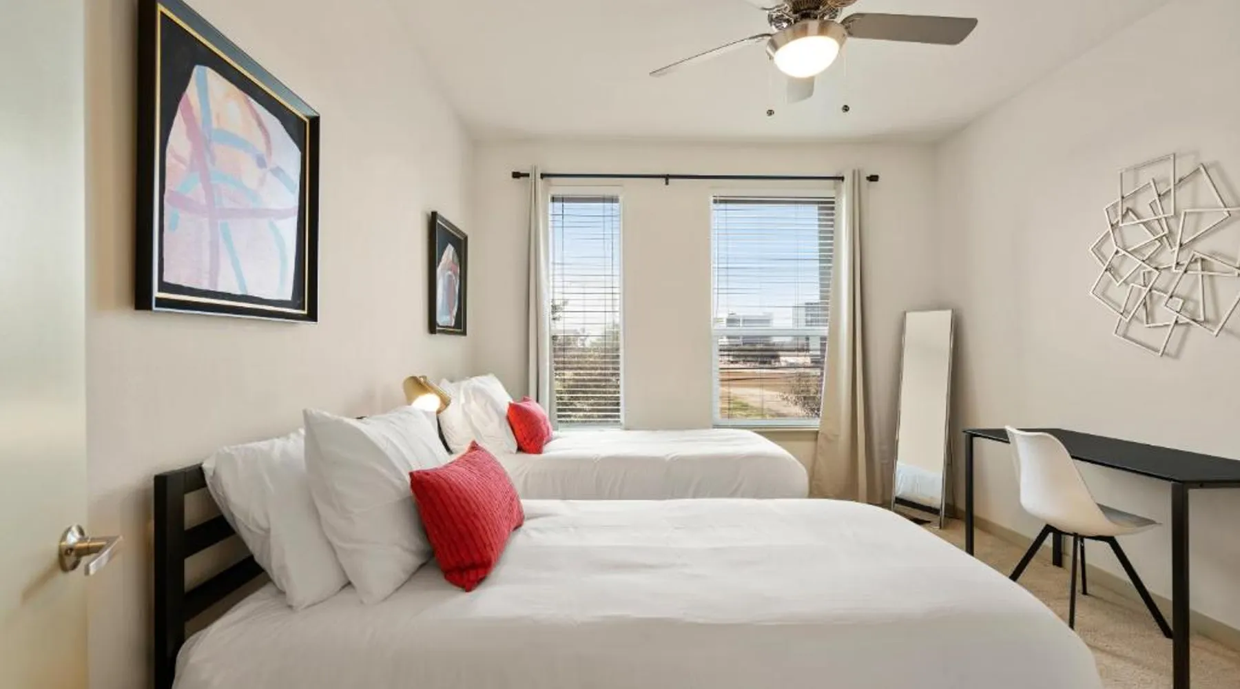 Comfortable Accommodations: Kasa Love Field-Medical District Dallas in Dallas offers 4-star aparthotel rooms with air-conditioning, balconies, and private bathrooms. Each room includes a kitchen, washing machine, and free WiFi. Exceptional Facilities: Guests can enjoy a fitness center, sun terrace, garden, seasonal outdoor swimming pool, and free on-site private parking. Additional amenities include a lounge, business area, outdoor seating, and picnic area. Prime Location: Located 0.6 mi from Dallas Love Field Airport, the aparthotel is near attractions such as Dallas World Trade Center (2.3 mi), Highland Park Village (2.7 mi), and American Airlines Center (3.7 mi). Guests appreciate the room cleanliness, convenient location, and comfort. This spacious apartment is consisted of of 1 living room, 2 separate bedrooms and 2 bathrooms with a bath or a shower and free toiletries. Guests will find a stovetop, a refrigerator, a dishwasher and kitchenware in the well-fitted kitchen. The apartment also has a barbecue. This apartment is air-conditioned and features a seating area with a flat-screen TV, a washing machine, a private entrance, a coffee machine, as well as a dining area. The unit offers 3 beds.