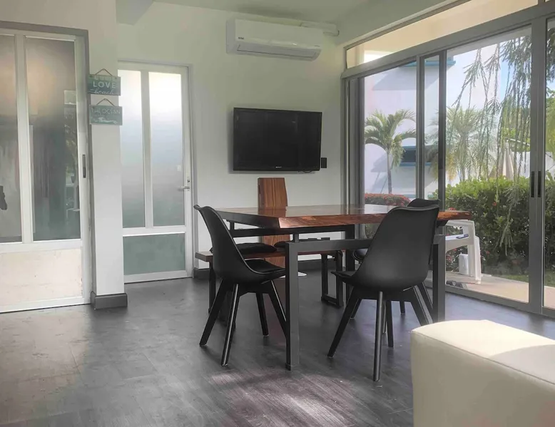 CALETAS IT IS AN APARTMENT LOCATED IN PLAYA ESTERILLOS OESTE, WITH CAPACITY TO ACCOMMODATE 2 PEOPLE, IT IS ONLY 30 STEPS FROM THE BEACH, 20 MINUTES FROM PLAYA JACO AND ONE HOUR FROM PLAYA MANUEL ANTONIO. CONTEMPORARY STYLE WITH LARGE WINDOWS. IF YOU LIKE SURFING, THIS IS YOUR PLACE. The space The location of Villa Azul is unbeatable, 30 steps from the Pacific Ocean Guest access The internal areas, of course. Two rooms, two full bathrooms. Living room/dining room/kitchen. Pool Gardens Other things to note They'll always be met on-site They will be welcomed by a trusted person who will give them the key.
