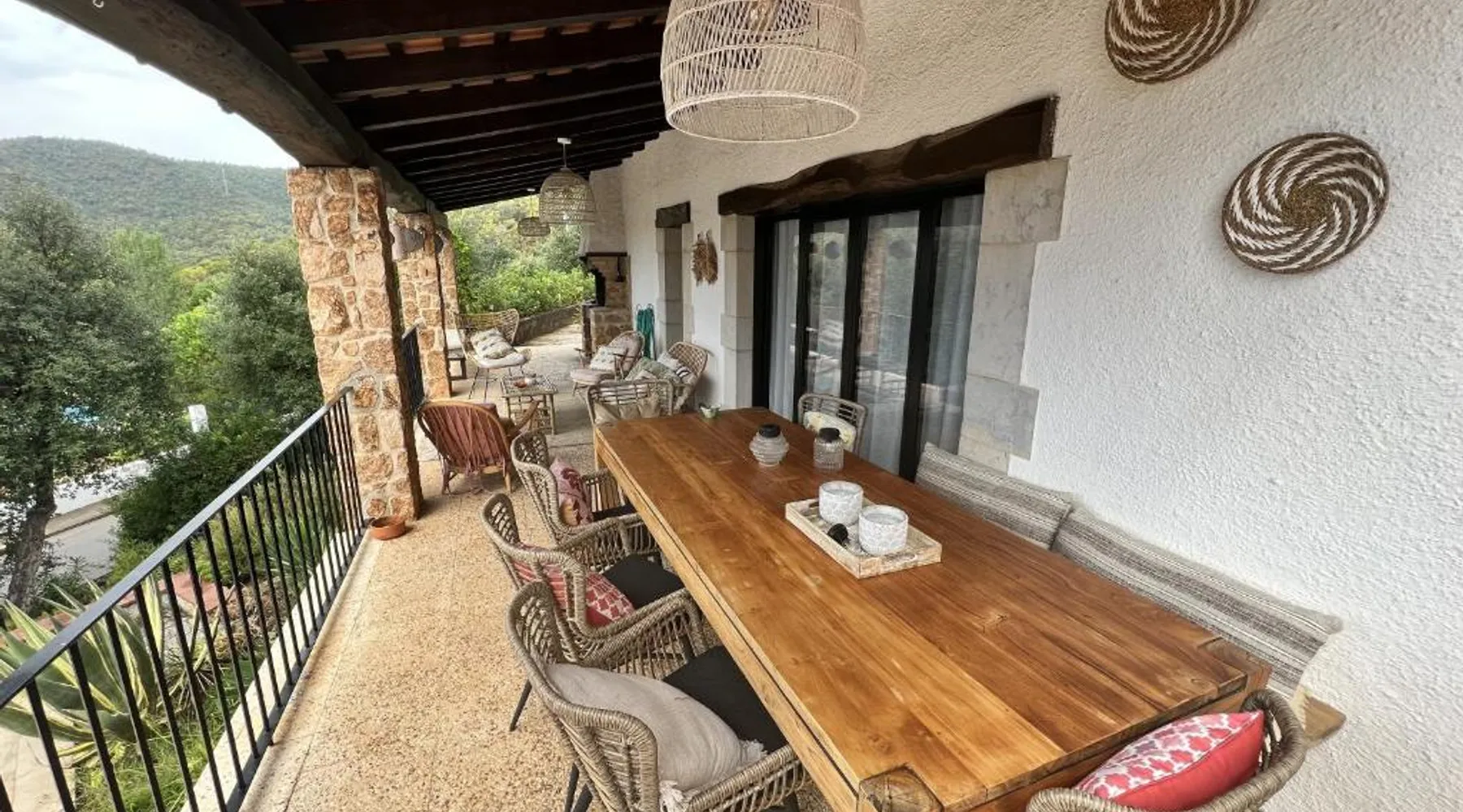 Spacious Accommodations: Villa Torre Cal Sada in Vall Llobrega offers five bedrooms and three bathrooms. The property features a terrace, patio, and private pool, ensuring ample space for relaxation. Modern Amenities: Guests enjoy free WiFi, air-conditioning, and a fully equipped kitchen with a dishwasher and microwave. Additional amenities include a washing machine, TV, and outdoor furniture. Outdoor Facilities: The villa provides an outdoor seating area and barbecue facilities, ideal for alfresco dining. Free parking is available on-site. Nearby Attractions: Located 29 mi from Girona-Costa Brava Airport, the property is close to Medes Islands Marine Reserve (19 mi) and Golf Playa de Pals (13 mi). Girona Train station is 30 mi away. The private pool is the standout feature of this villa. Boasting a private entrance, this spacious villa also features 5 separate bedrooms and 3 bathrooms with a bath and a shower. Guests will find a stovetop, a refrigerator, a dishwasher and kitchenware in the well-equipped kitchen. The villa also comes with a barbecue. The villa features air conditioning, a washing machine, a coffee machine as well as a terrace with mountain views. The unit has 5 beds.