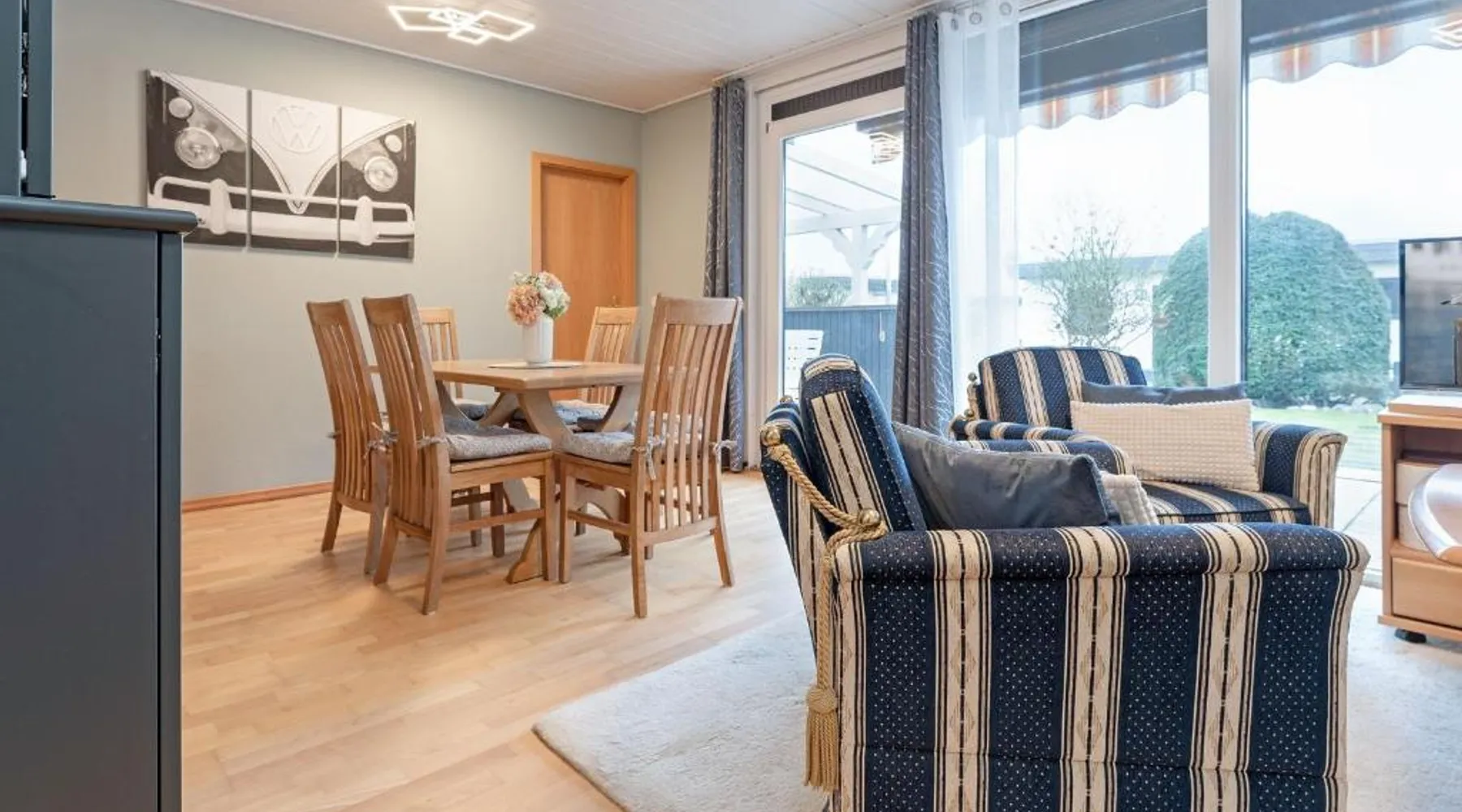 Beachfront Location: Nicölchens Ferienbude in Staberdorf offers direct beachfront access with stunning sea views. Guests can relax on the terrace or in the garden, enjoying the serene seaside setting. Comfortable Accommodations: The holiday home features two bedrooms and a living room with a sofa bed. A fully equipped kitchen includes a kitchenette, oven, microwave, dishwasher, and coffee machine. Free WiFi is available in public areas. Outdoor Amenities: An outdoor seating area provides a perfect spot for alfresco dining. The terrace and garden offer ample space for relaxation and leisure. Nearby Attractions: Meeschendorfer Beach is just a few steps away, while High Rope Garden Fehmarn lies 1.1 mi from the property. Lübeck Airport is 63 mi distant. Scuba diving opportunities enhance the surrounding area. This holiday home's standout feature is the fireplace. Boasting a private entrance, this holiday home includes 1 living room, 2 separate bedrooms and 1 bathroom with a shower and a hairdryer. Guests will find a stovetop, a refrigerator, a dishwasher and an oven in the well-equipped kitchen. The holiday home also features a barbecue. Featuring a terrace with sea views, this holiday home also offers a tea and coffee maker and a TV. The unit has 4 beds.