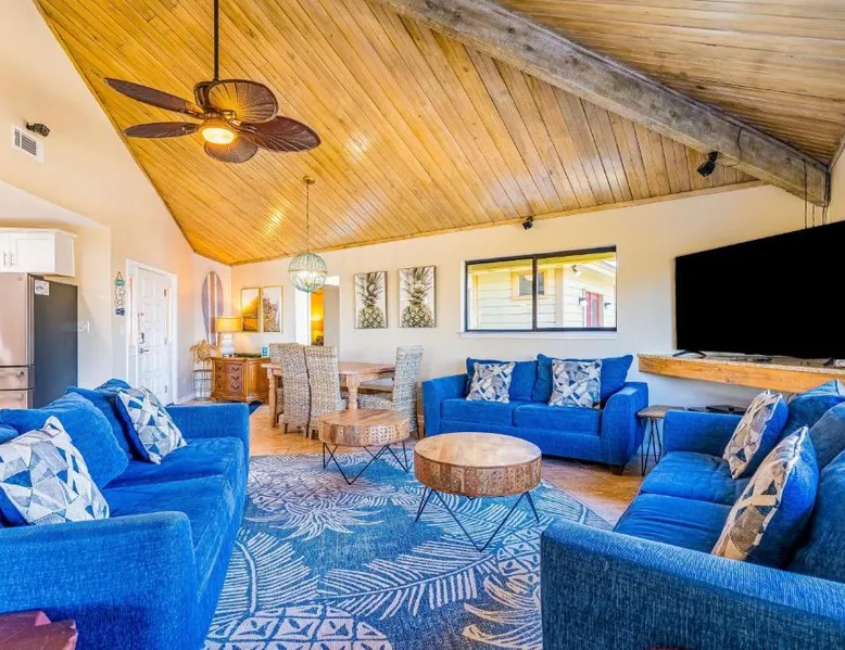 Spacious Accommodations: Polynesian Paradise in Gulf Shores offers a spacious holiday home with five bedrooms and four bathrooms. The property features a private pool with a view, a hot tub, and an outdoor seating area. Leisure Facilities: Guests can enjoy a swimming pool, a games room, and an outdoor dining area. The home includes air-conditioning, a terrace, balcony, and streaming services. Additional amenities include a washing machine, patio, kitchen, and barbecue. Prime Location: Located a 4-minute walk from Gulf Shores Public Beach, the property is 37 mi from Pensacola International Airport. Nearby attractions include Alabama Gulf Coast Zoo (2.1 mi) and Waterville USA (1.8 mi). This holiday home's special features are the private pool and the hot tub. Featuring a private entrance, this air-conditioned holiday home consists of 5 bedrooms, 4 bathrooms and a kitchen. The well-equipped kitchen features a stovetop, a refrigerator, a dishwasher and kitchenware. The spacious holiday home provides a washing machine, a tea and coffee maker, tumble dryer, a barbecue, as well as a TV with streaming services. The unit offers 9 beds.
