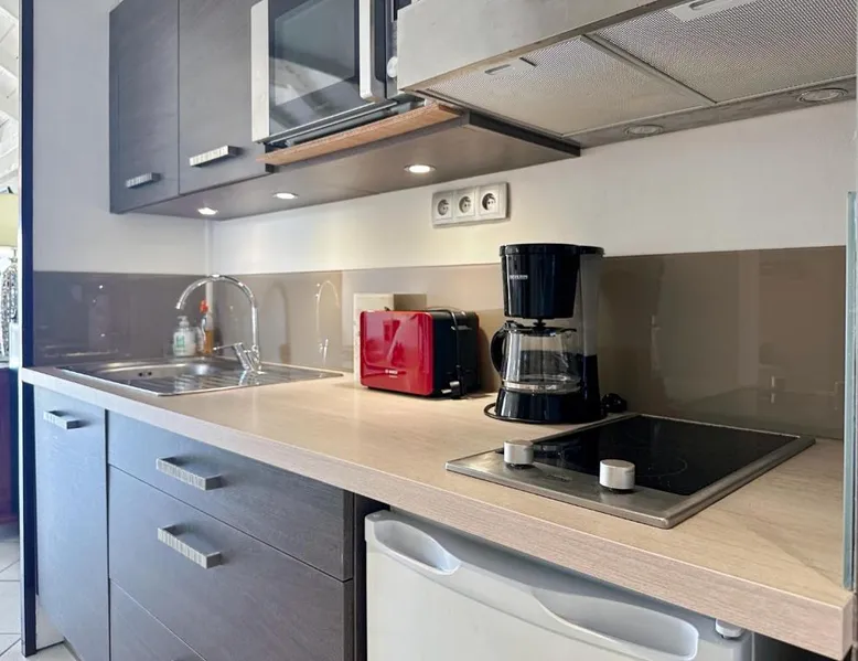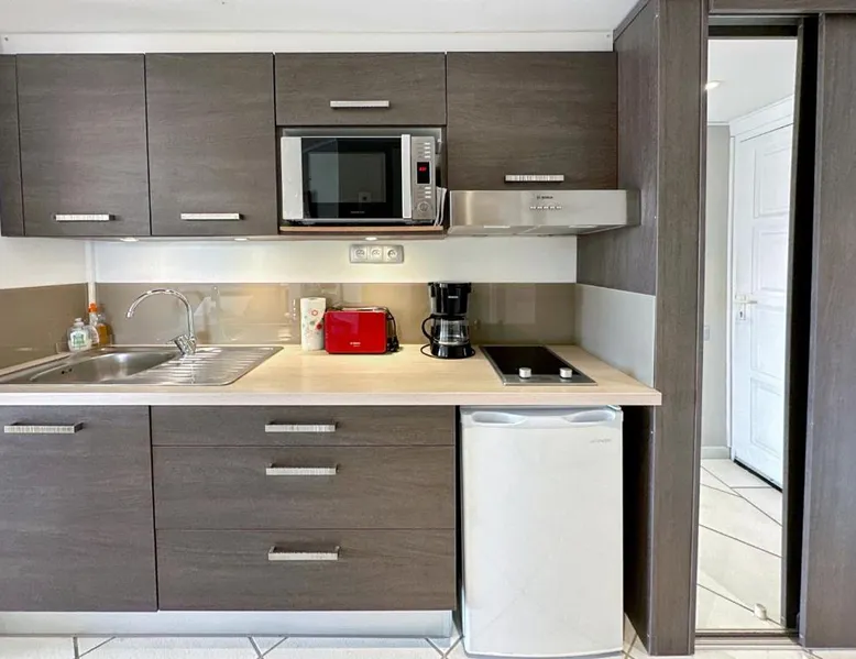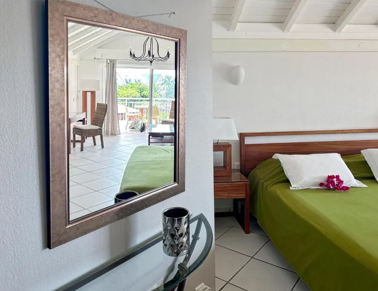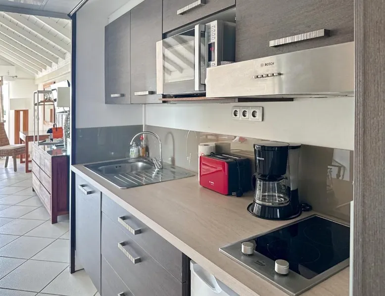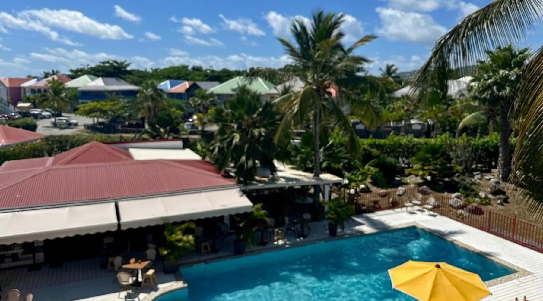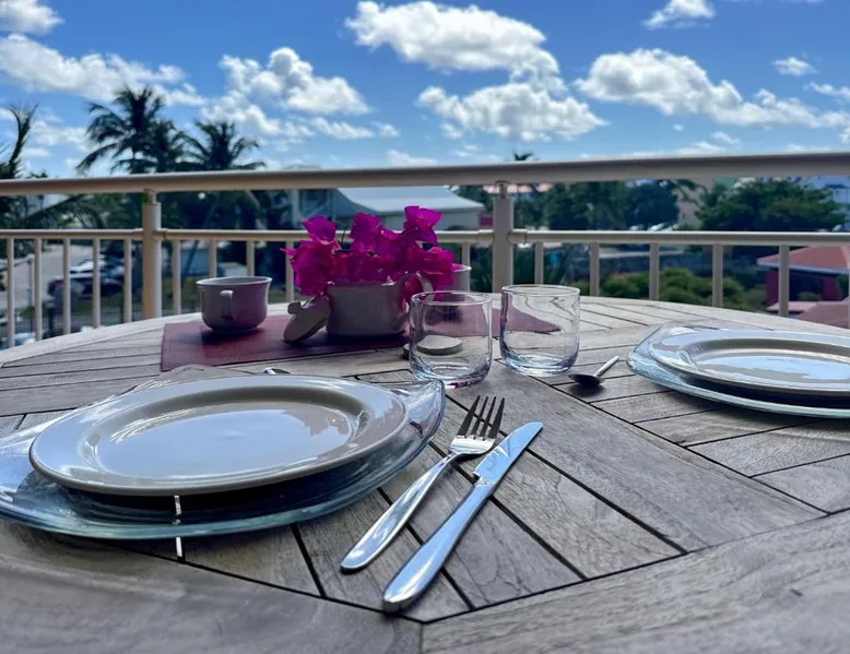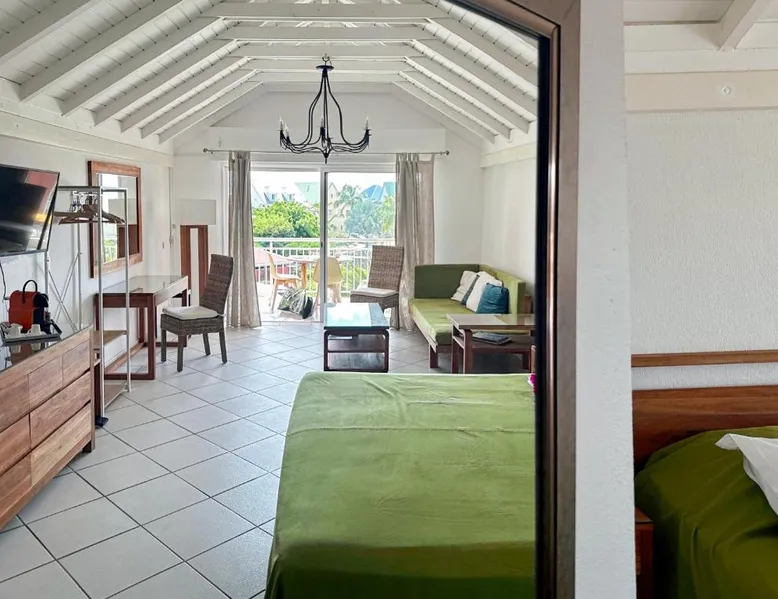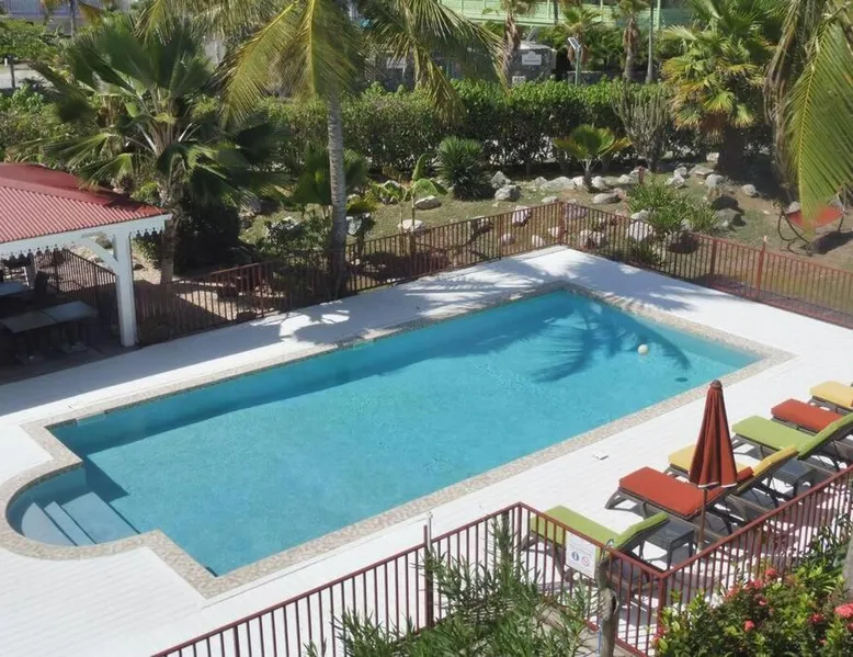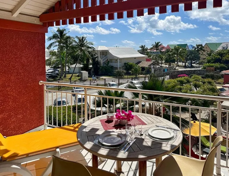 Comfortable Living Space: Studio Palm Court in Orient Bay offers a one-bedroom apartment with a terrace and free WiFi. The property includes air-conditioning, a kitchenette, balcony, washing machine, and a sofa. Modern Amenities: Guests can enjoy a fully equipped kitchen, TV, and a wardrobe. Additional features include a hairdryer, shower, and garden and pool views. Convenient Location: Located 1.9 mi from Grand Case-Espérance Airport, the apartment is a 4-minute walk from Orient Bay Beach. Boating opportunities are available in the surrounding area. The apartment's kitchen is available for cooking and storing food. The air-conditioned apartment provides a flat-screen TV, a washing machine, a private entrance, a wardrobe as well as garden views. The unit offers 1 bed.