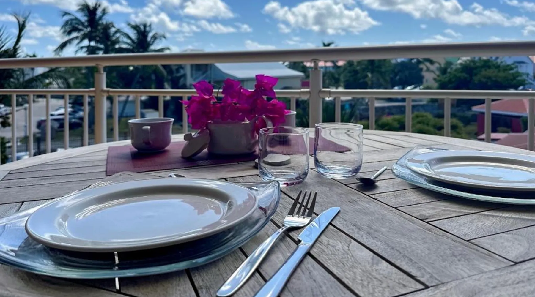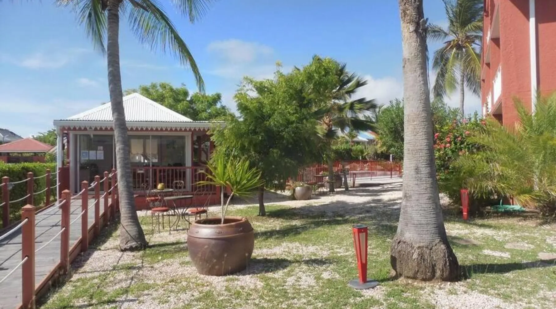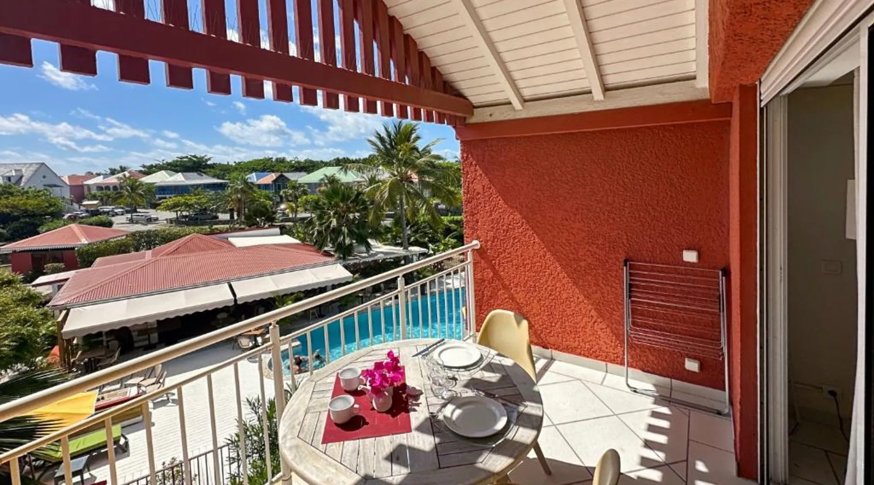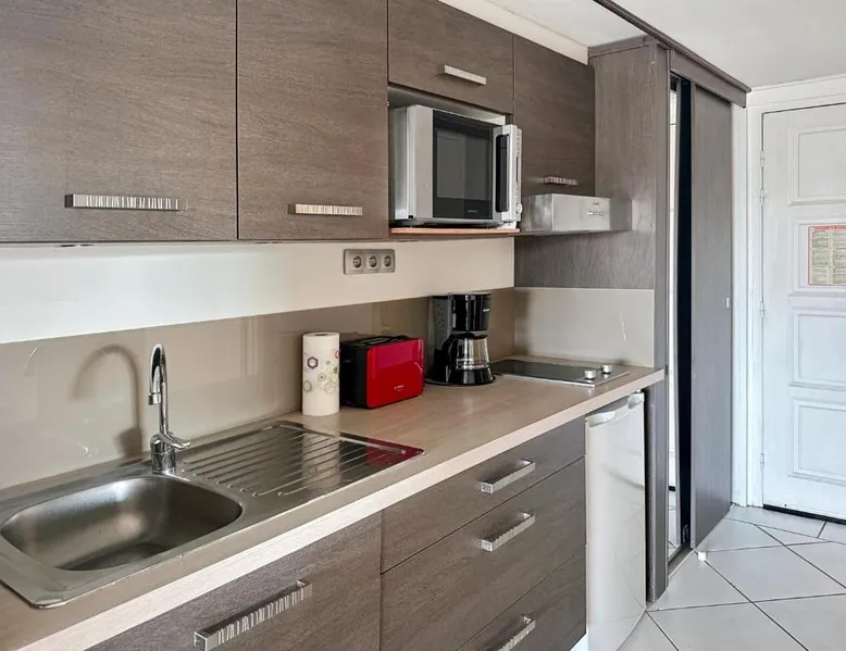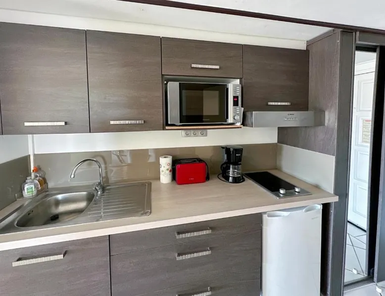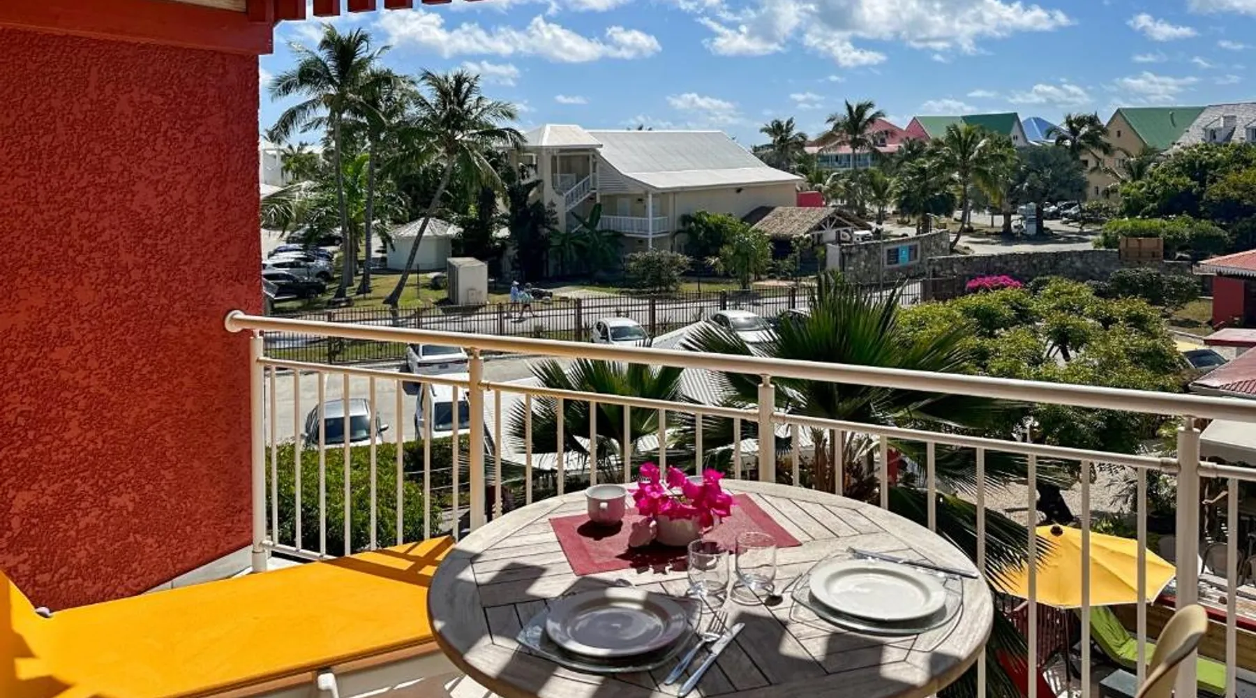 Comfortable Living Space: Studio Palm Court in Orient Bay offers a one-bedroom apartment with a terrace and free WiFi. The property includes air-conditioning, a kitchenette, balcony, washing machine, and a sofa. Modern Amenities: Guests can enjoy a fully equipped kitchen, TV, and a wardrobe. Additional features include a hairdryer, shower, and garden and pool views. Convenient Location: Located 1.9 mi from Grand Case-Espérance Airport, the apartment is a 4-minute walk from Orient Bay Beach. Boating opportunities are available in the surrounding area. The apartment's kitchen is available for cooking and storing food. The air-conditioned apartment provides a flat-screen TV, a washing machine, a private entrance, a wardrobe as well as garden views. The unit offers 1 bed.