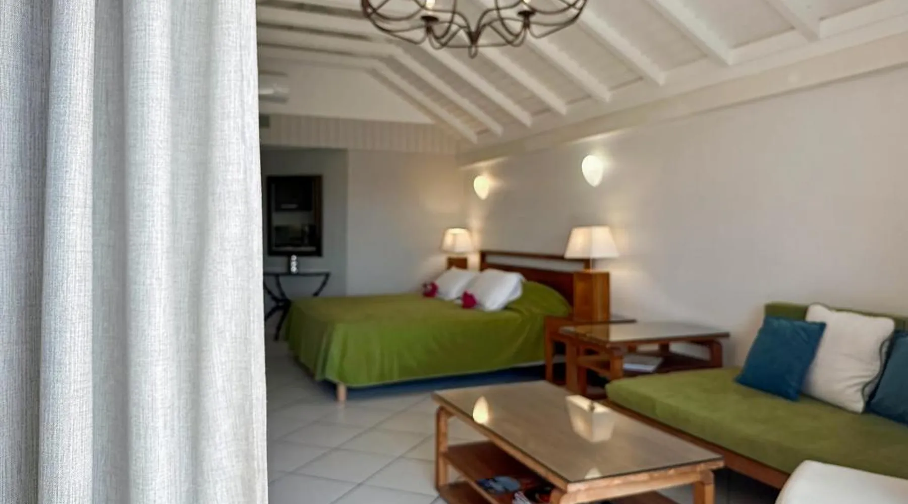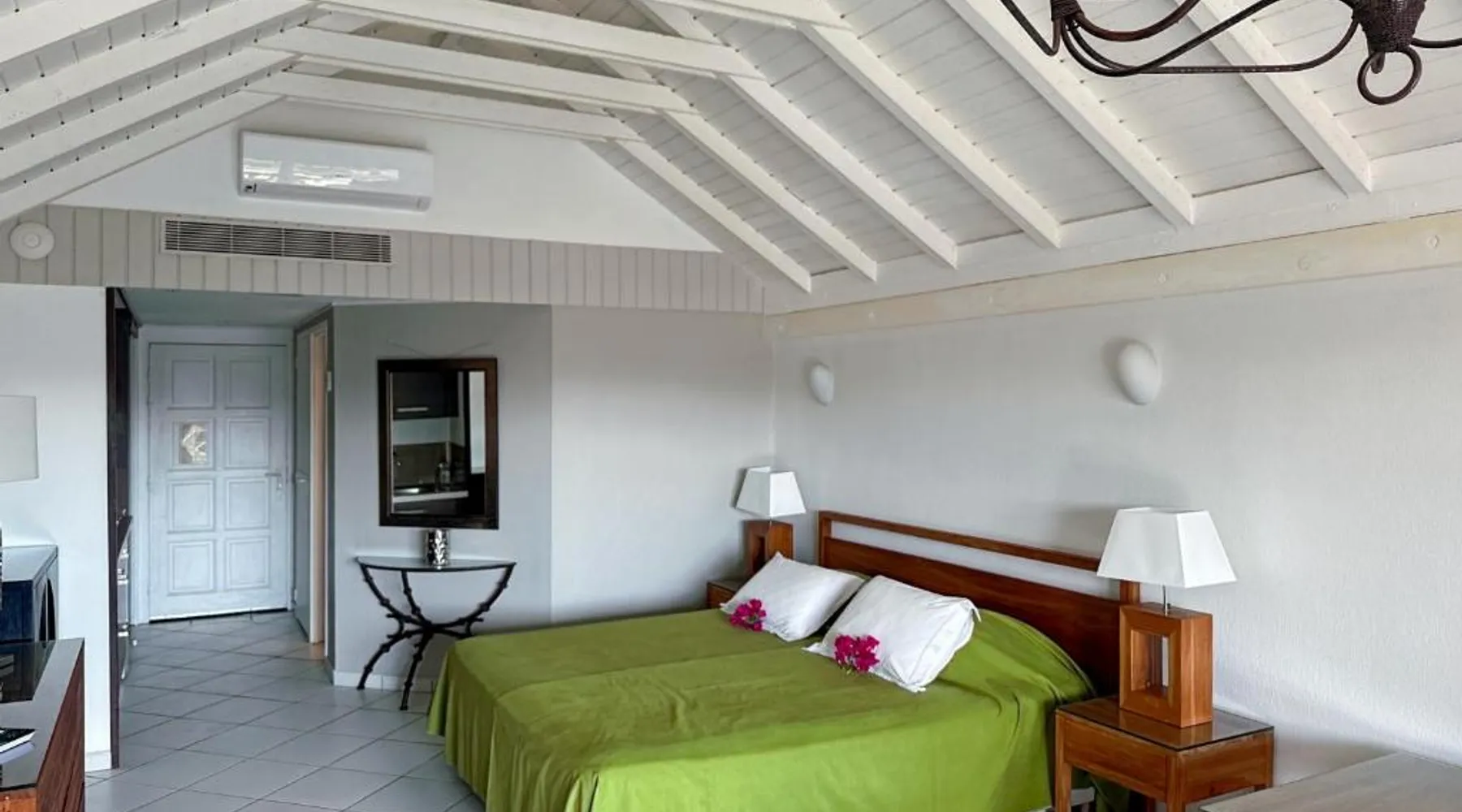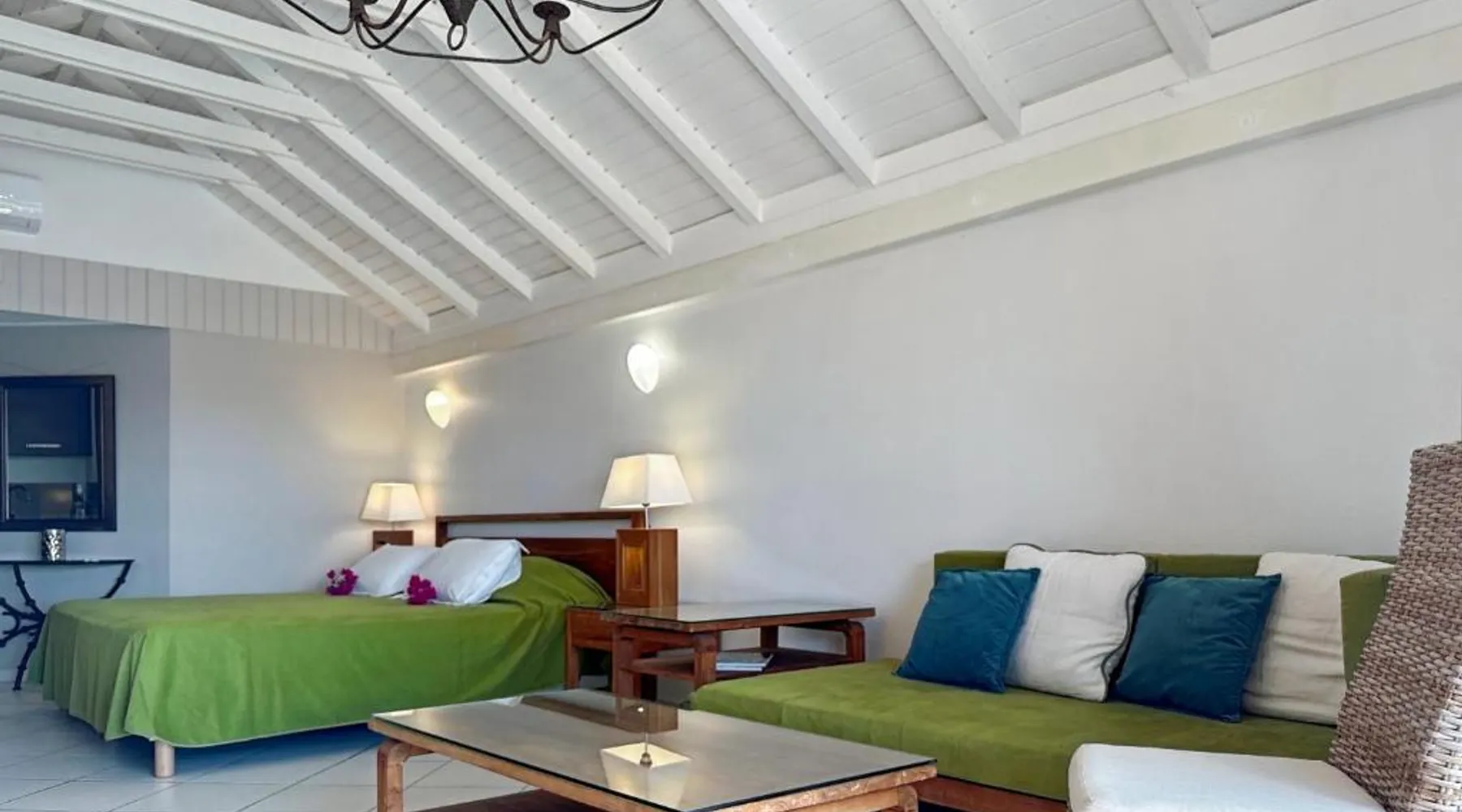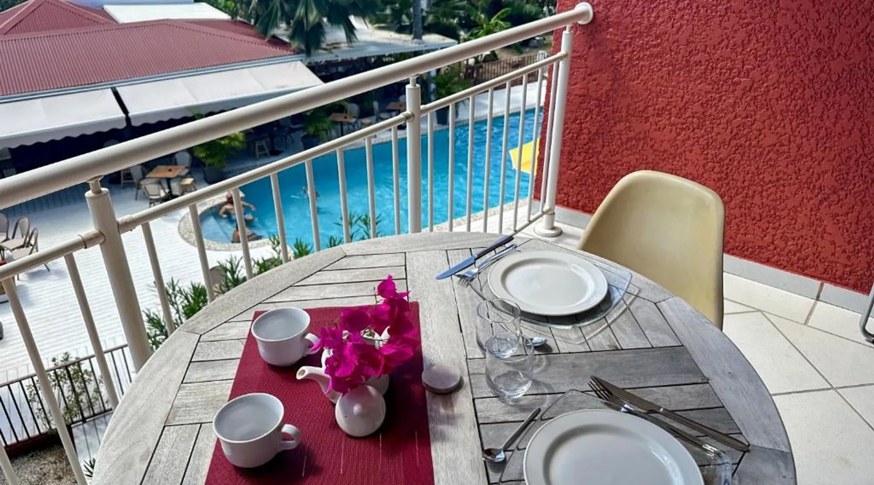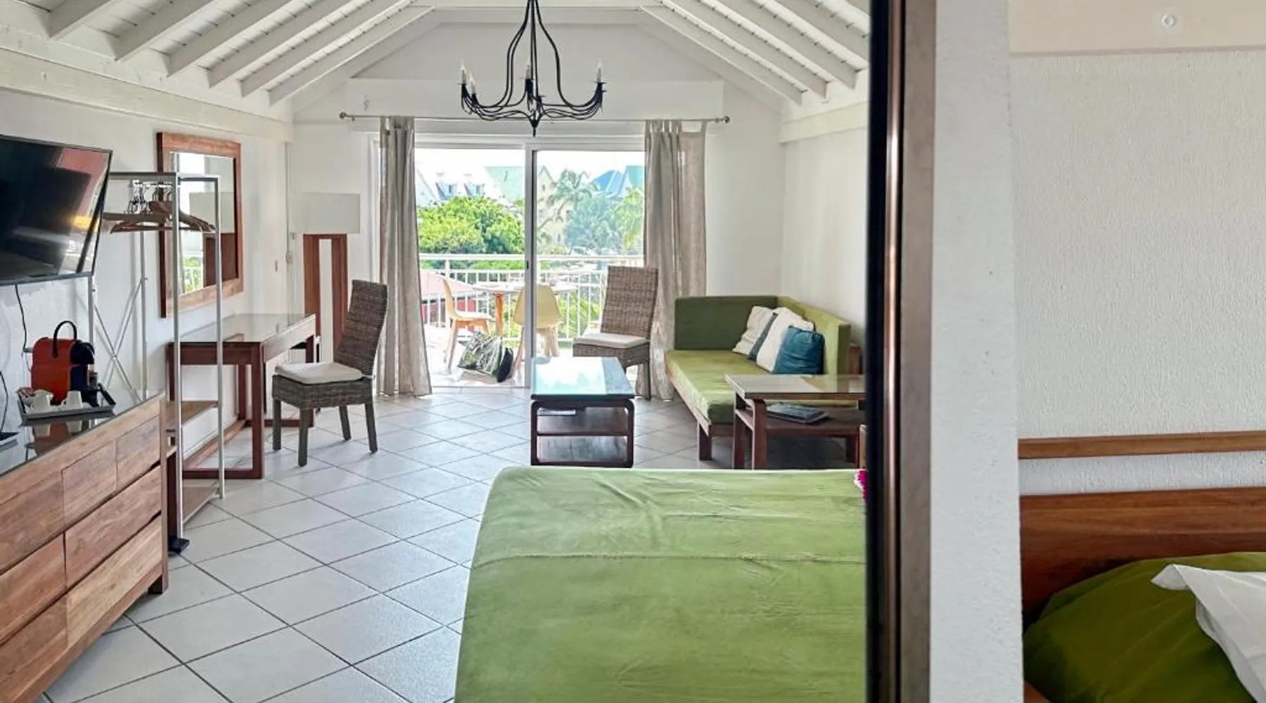 Comfortable Living Space: Studio Palm Court in Orient Bay offers a one-bedroom apartment with a terrace and free WiFi. The property includes air-conditioning, a kitchenette, balcony, washing machine, and a sofa. Modern Amenities: Guests can enjoy a fully equipped kitchen, TV, and a wardrobe. Additional features include a hairdryer, shower, and garden and pool views. Convenient Location: Located 1.9 mi from Grand Case-Espérance Airport, the apartment is a 4-minute walk from Orient Bay Beach. Boating opportunities are available in the surrounding area. The apartment's kitchen is available for cooking and storing food. The air-conditioned apartment provides a flat-screen TV, a washing machine, a private entrance, a wardrobe as well as garden views. The unit offers 1 bed.