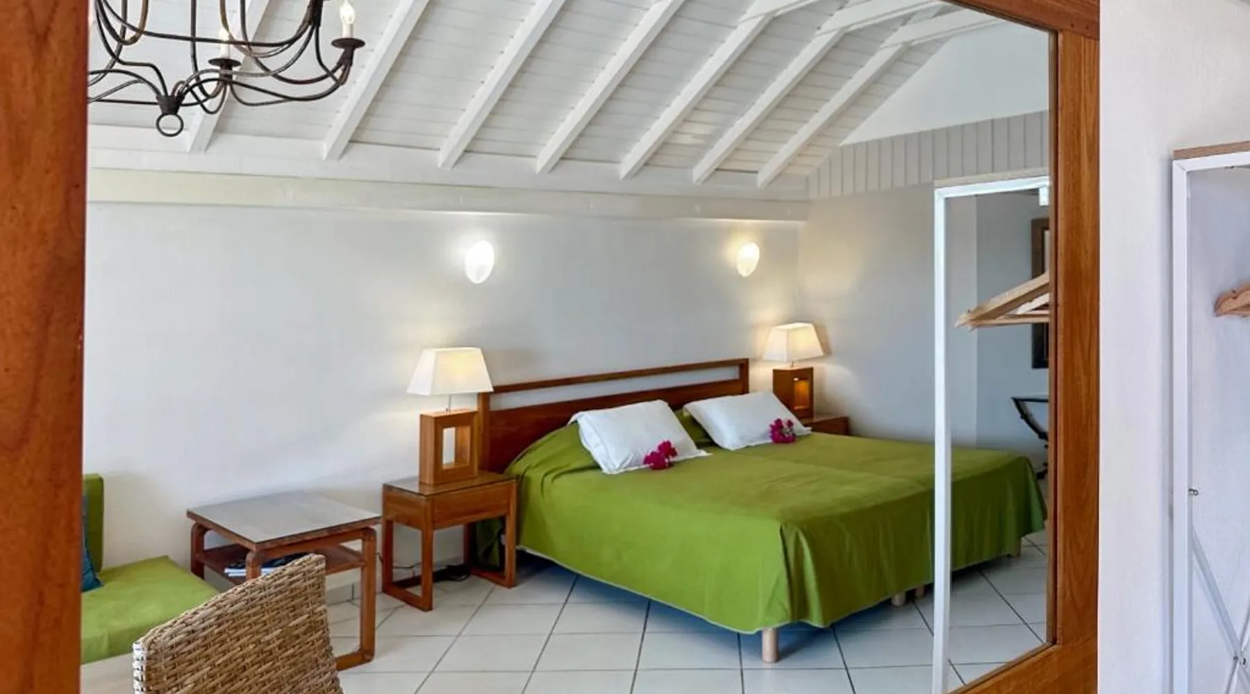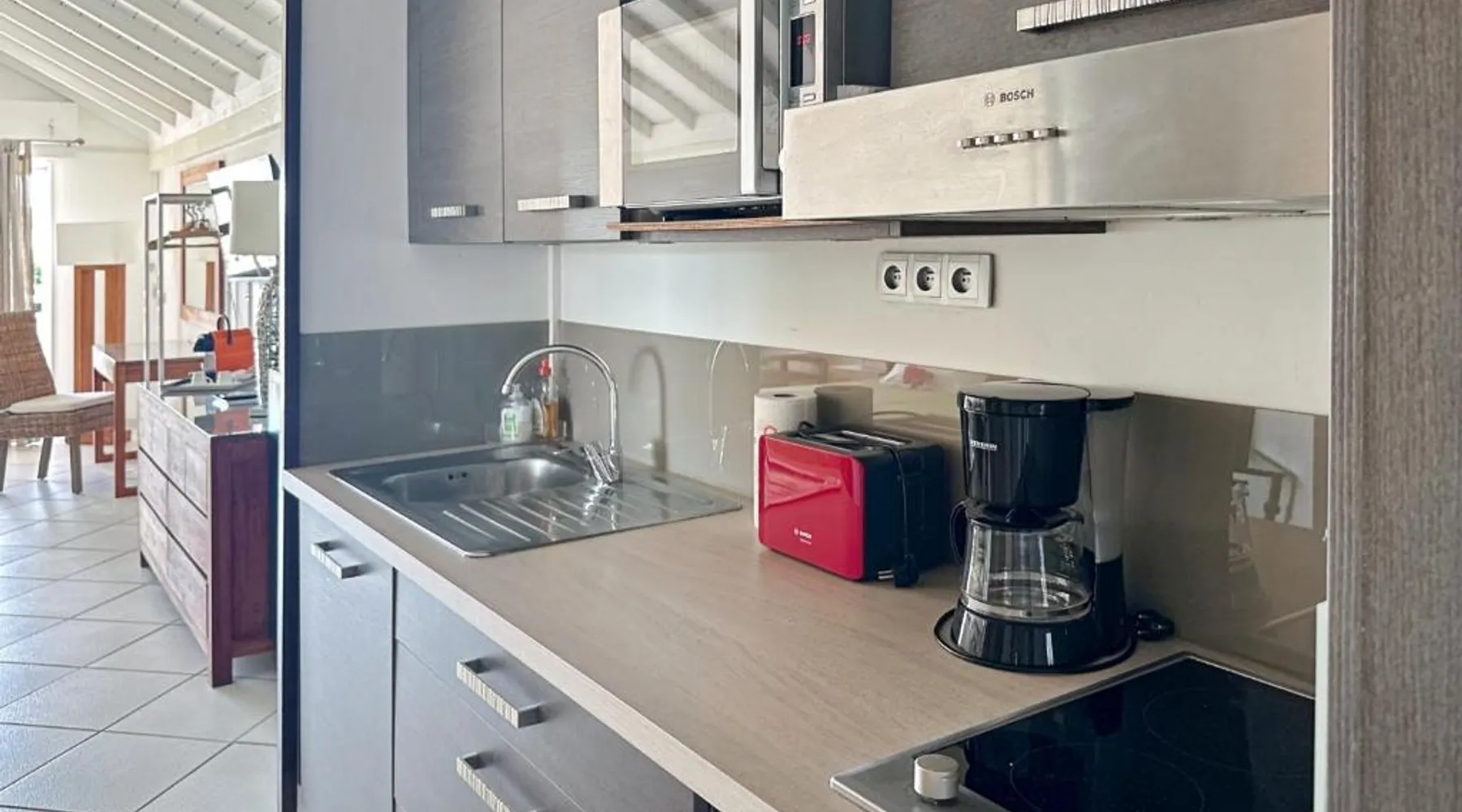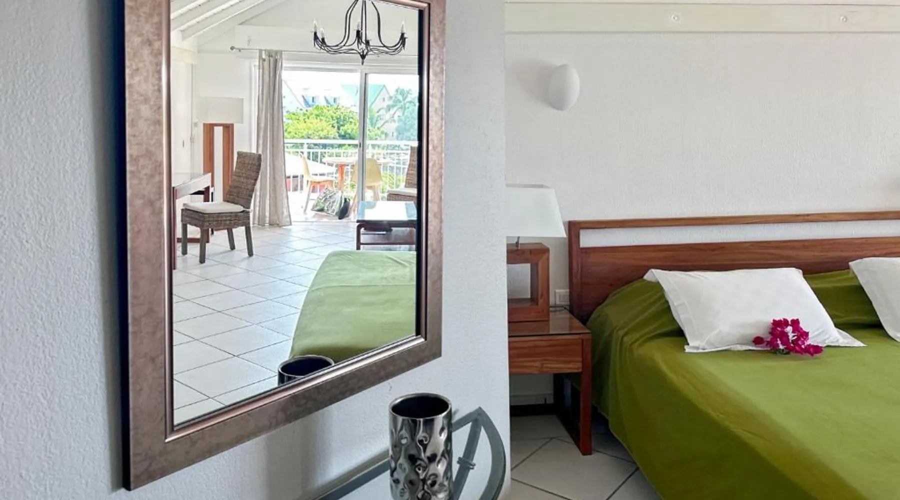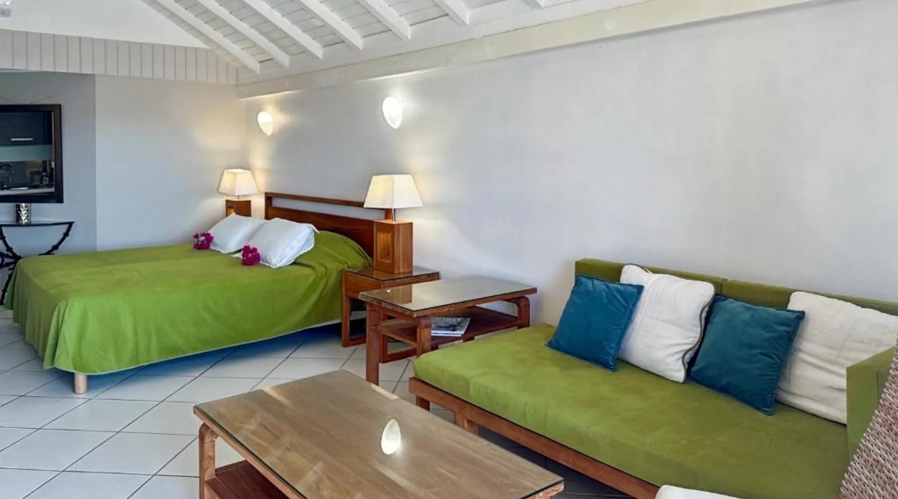 Comfortable Living Space: Studio Palm Court in Orient Bay offers a one-bedroom apartment with a terrace and free WiFi. The property includes air-conditioning, a kitchenette, balcony, washing machine, and a sofa. Modern Amenities: Guests can enjoy a fully equipped kitchen, TV, and a wardrobe. Additional features include a hairdryer, shower, and garden and pool views. Convenient Location: Located 1.9 mi from Grand Case-Espérance Airport, the apartment is a 4-minute walk from Orient Bay Beach. Boating opportunities are available in the surrounding area. The apartment's kitchen is available for cooking and storing food. The air-conditioned apartment provides a flat-screen TV, a washing machine, a private entrance, a wardrobe as well as garden views. The unit offers 1 bed.